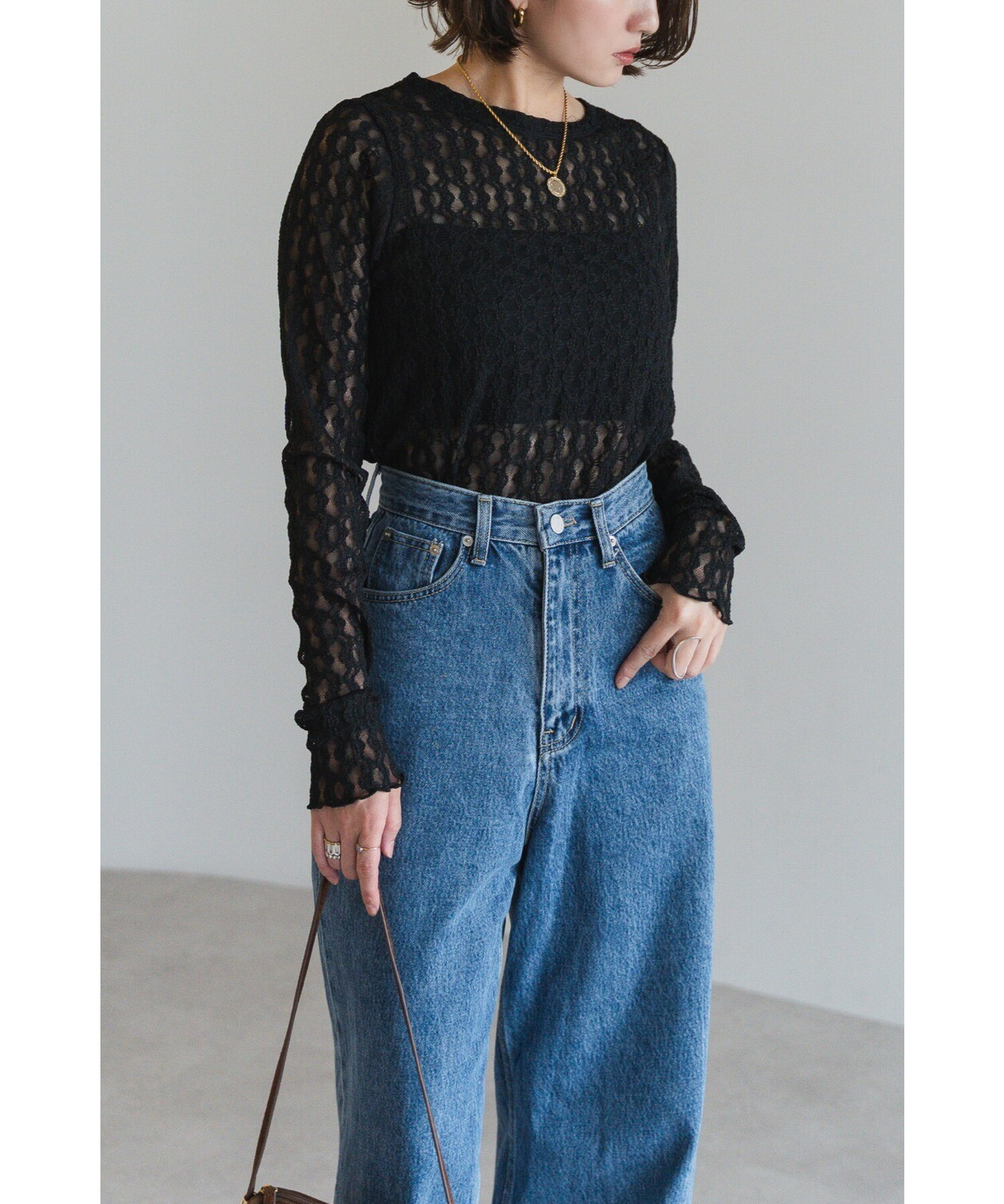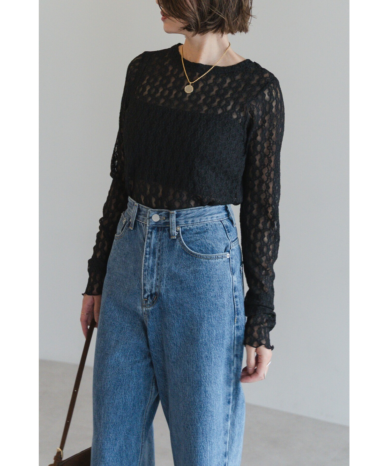 繊細なレースの透け感が女性らしさを引き立てるプルオーバー。