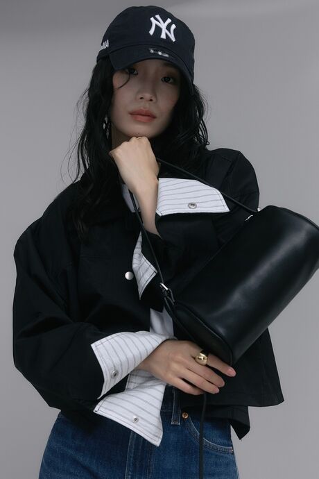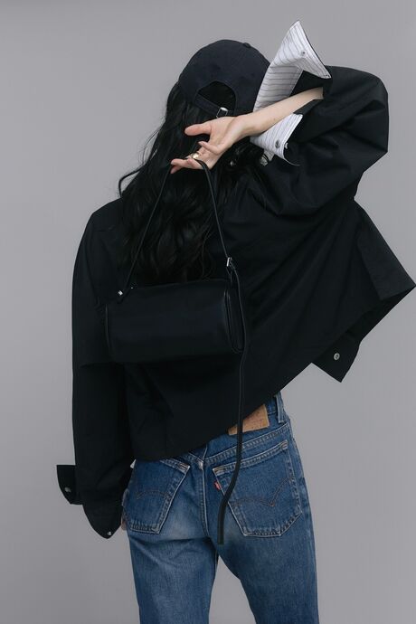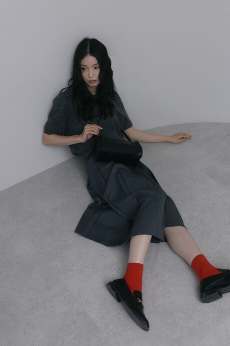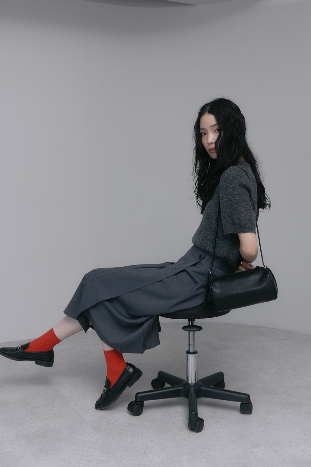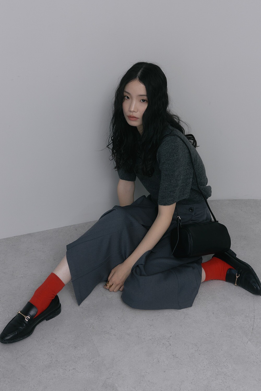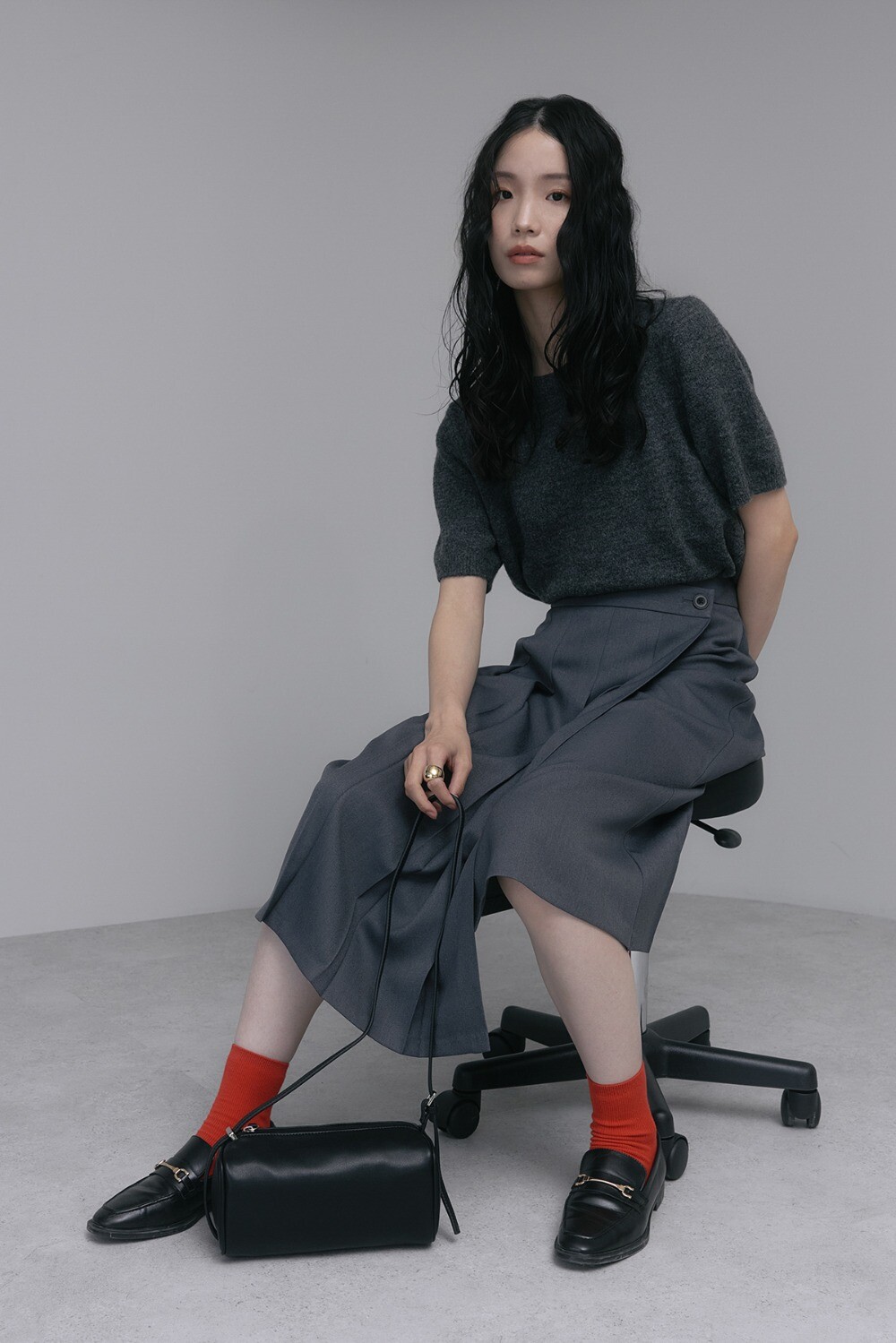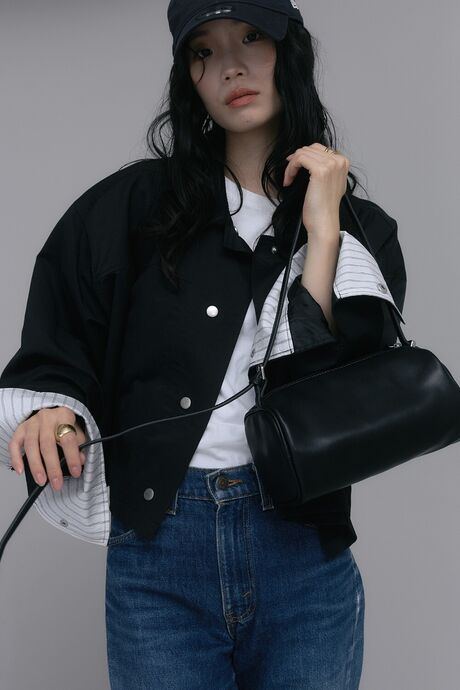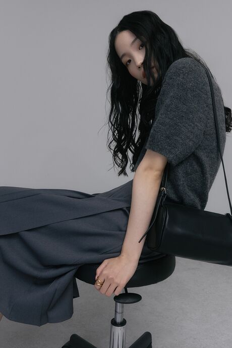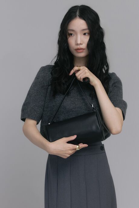 華奢な細めのショルダーは縦、横お好みでスタイルチェンジ。