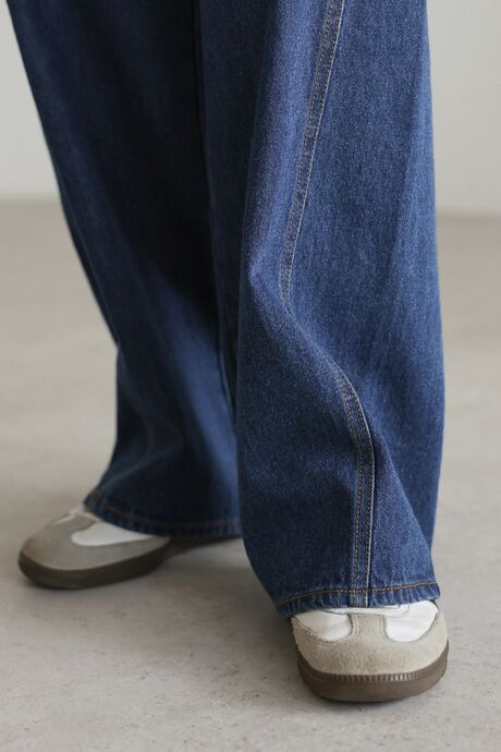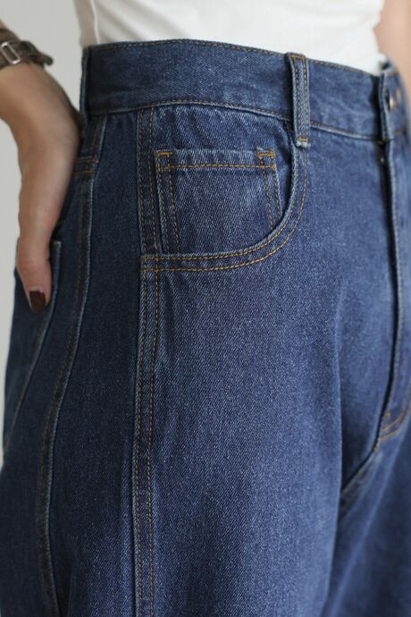 ヒップから裾にかけてゆるやかに広がるワイドシルエットで、抜け感のあるスタイルに仕上がります。