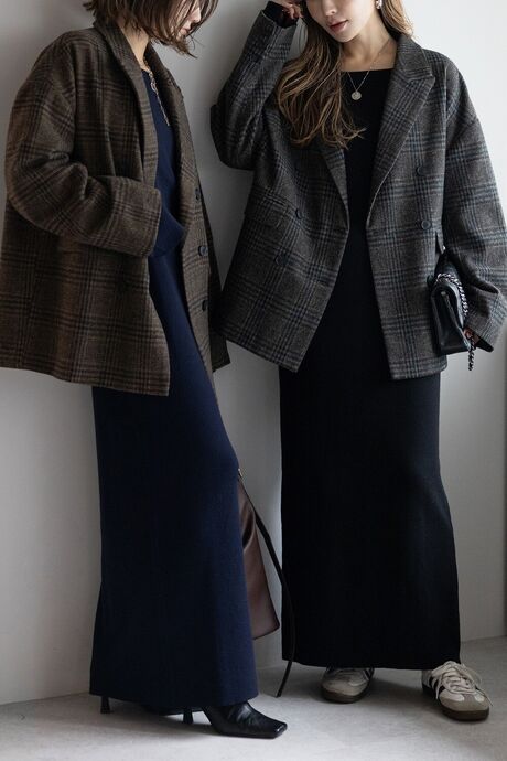 身体に沿いすぎないストレートラインが、すっきりとした縦のシルエットを際立たせます。