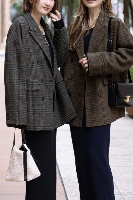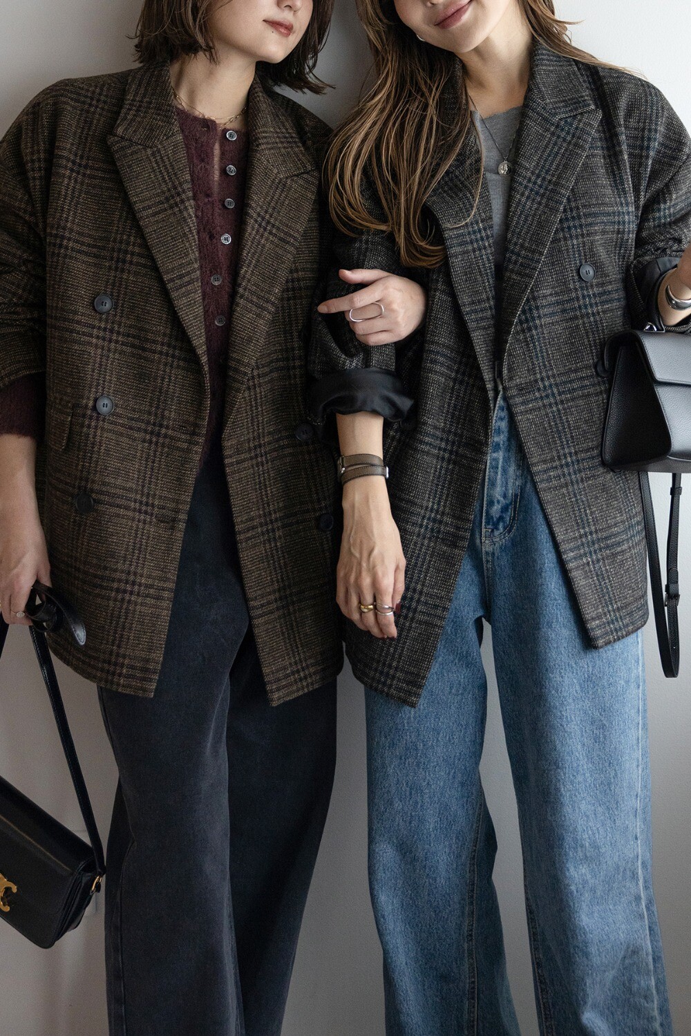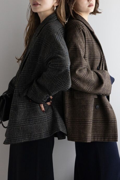 深みのあるチェック柄が表情を生むダブルボタンのトラッドジャケット。