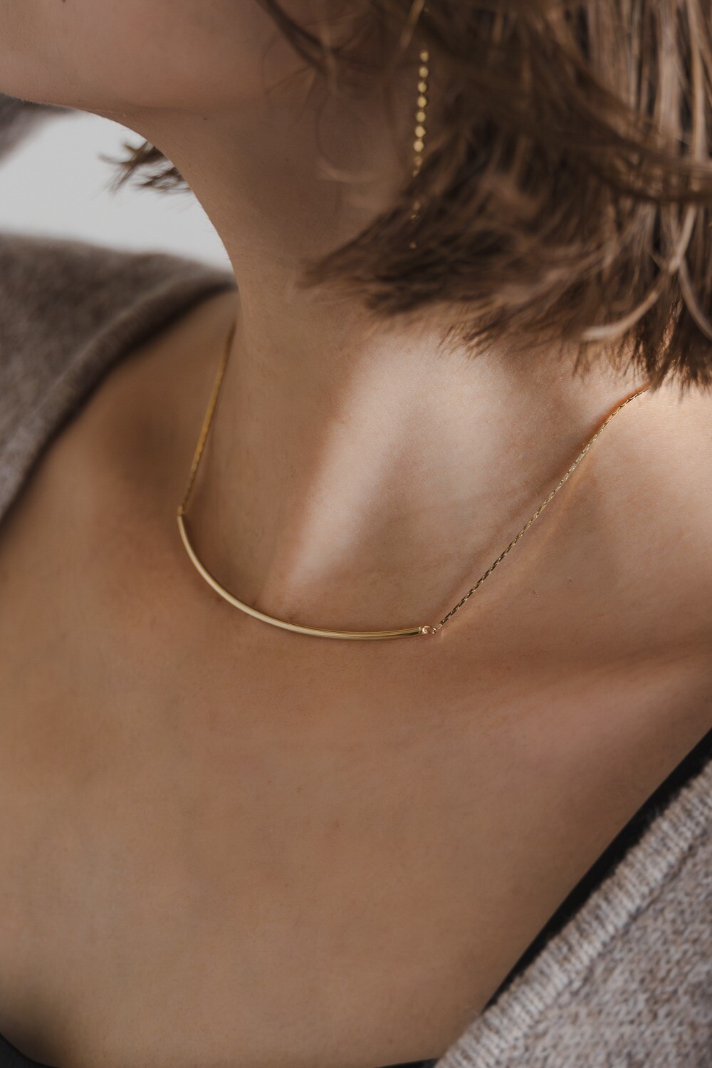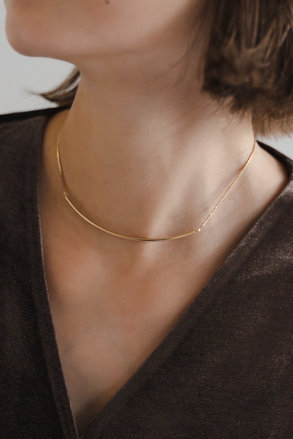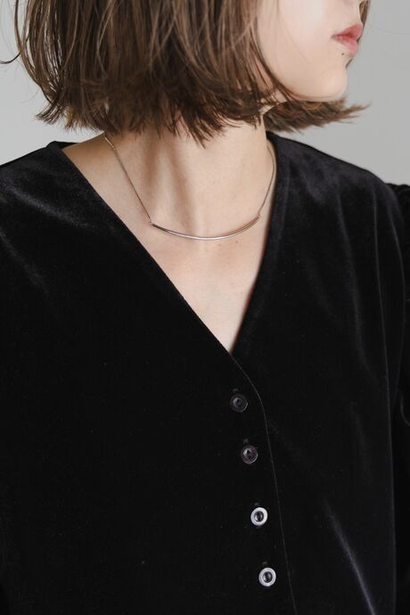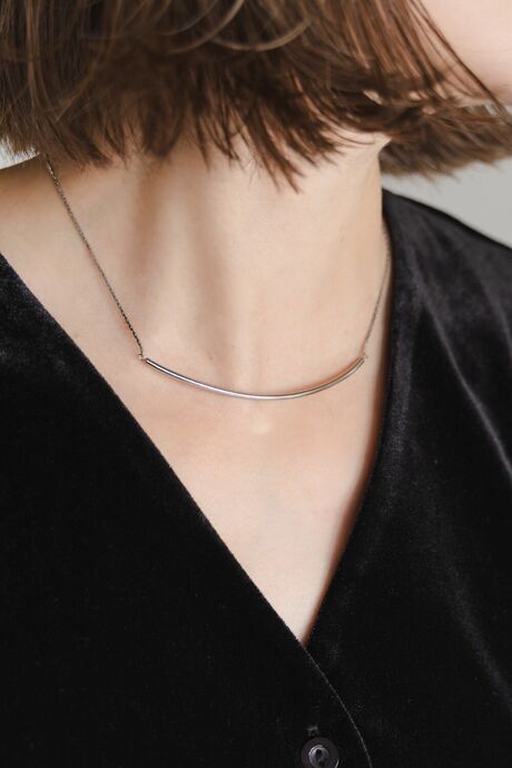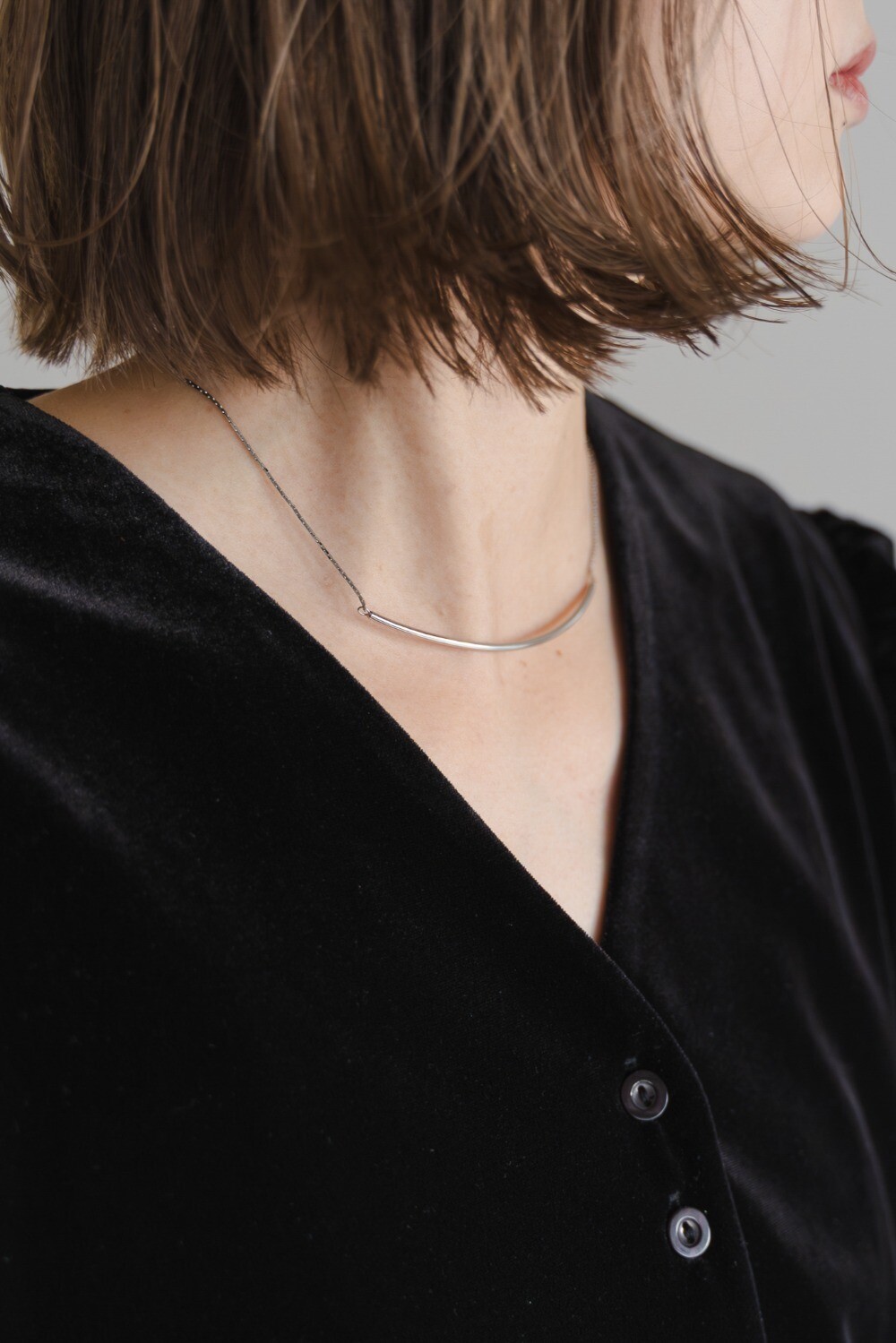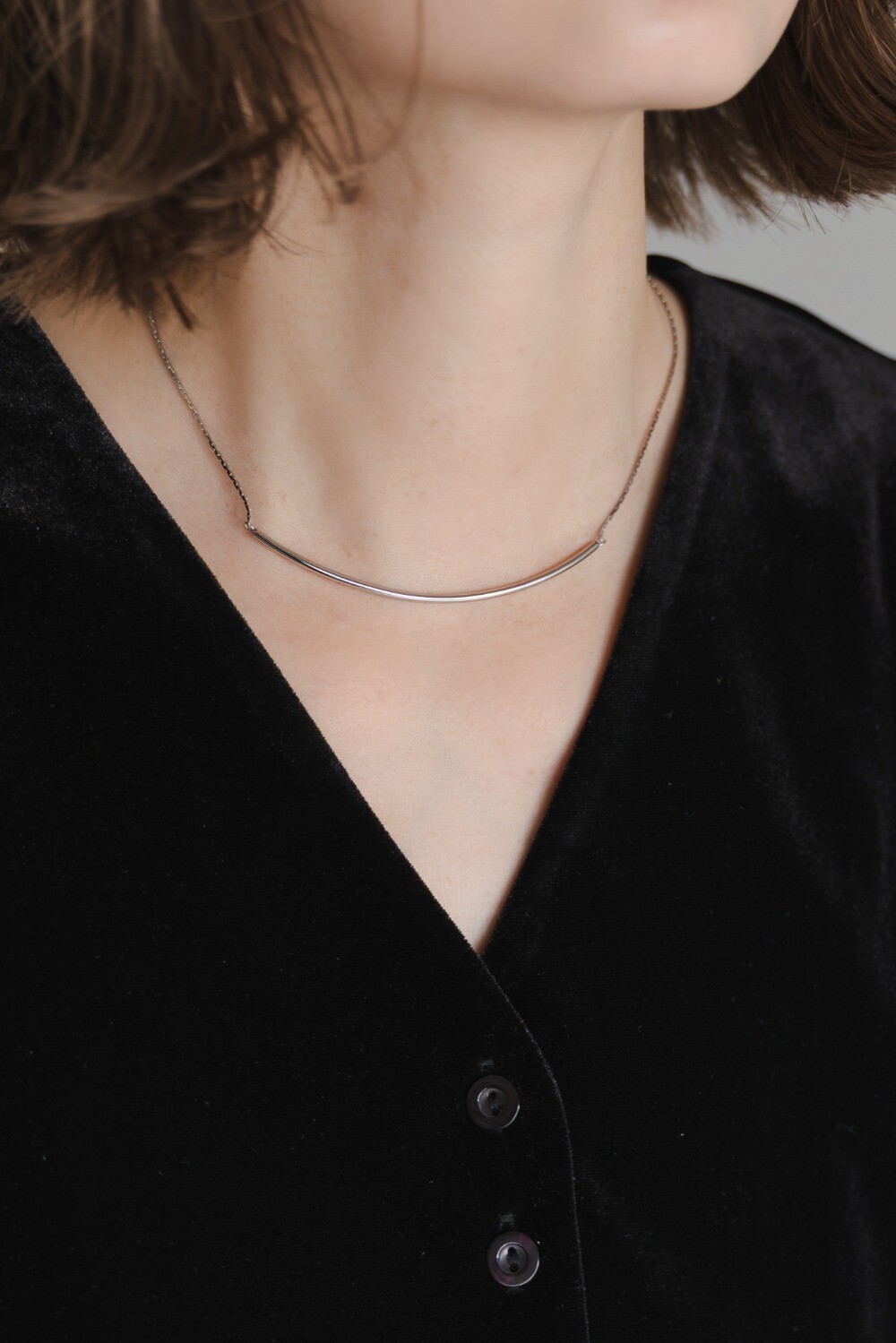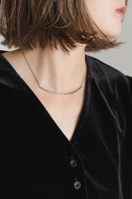 緩やかな曲線を描くメタルバーが首元にフィットするデザイン。