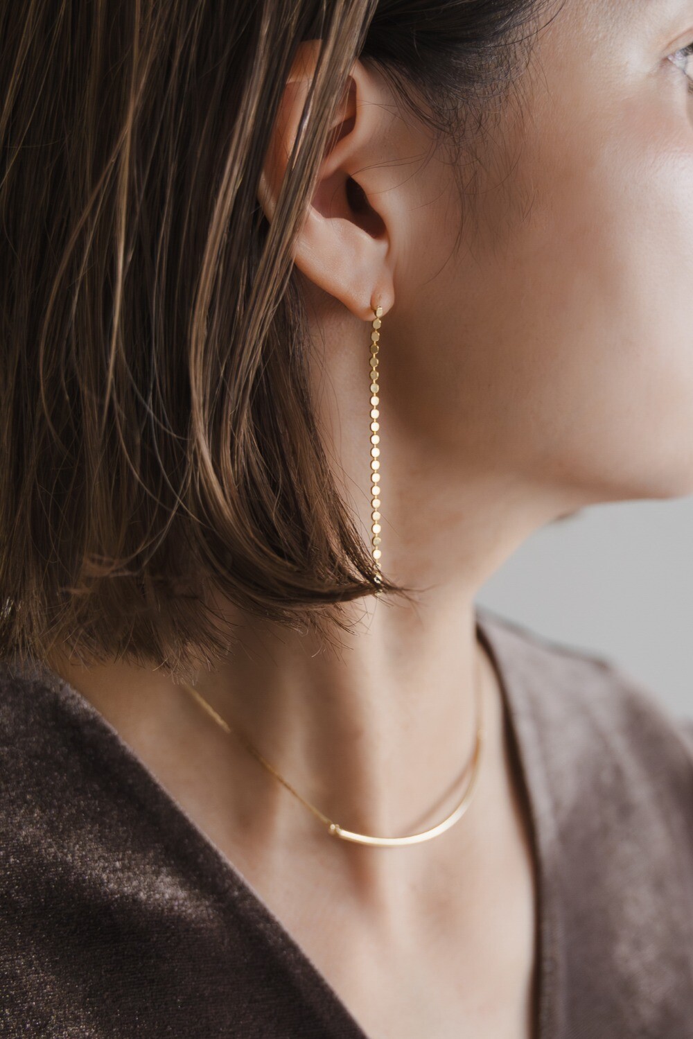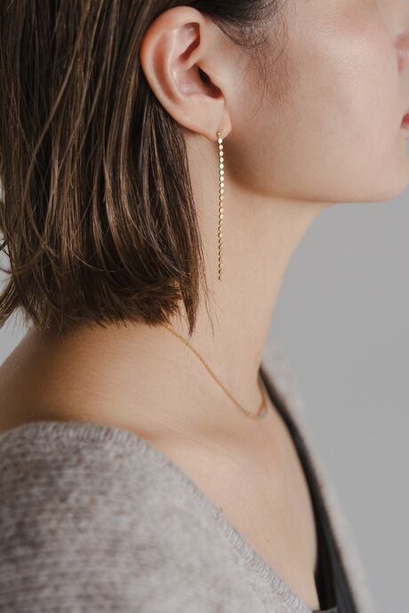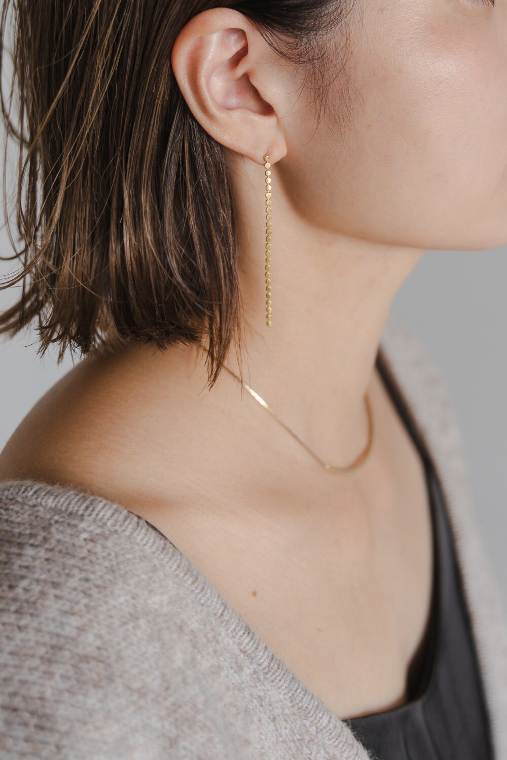 縦長効果のある華奢アイテムで、デイリーに活躍する一品です。