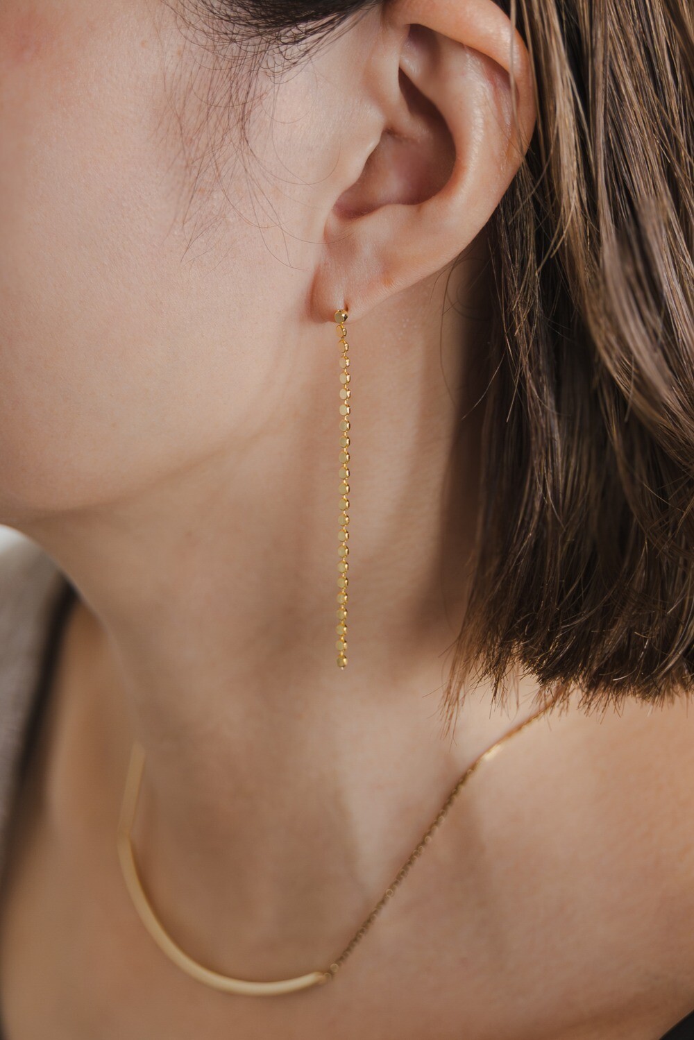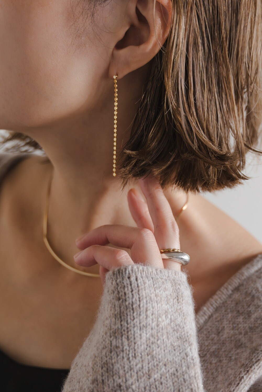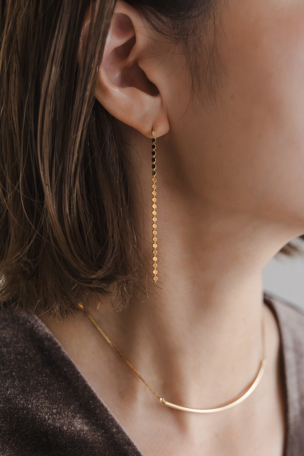 縦長効果のある華奢アイテムで、デイリーに活躍する一品です。