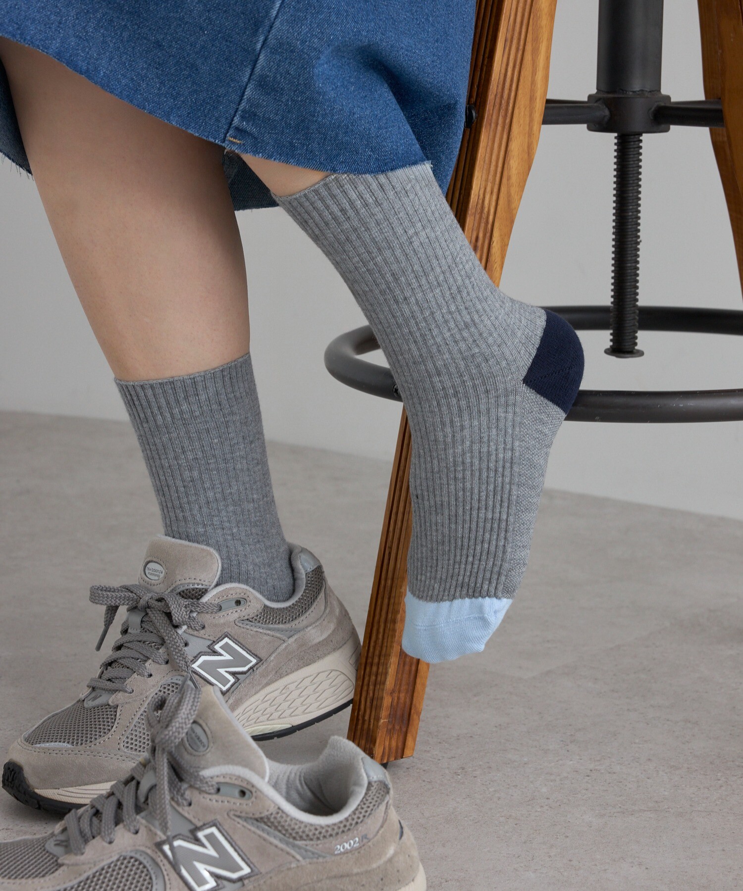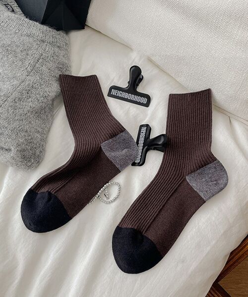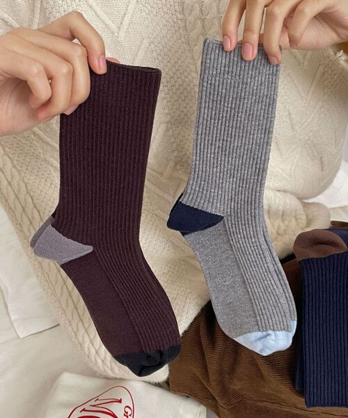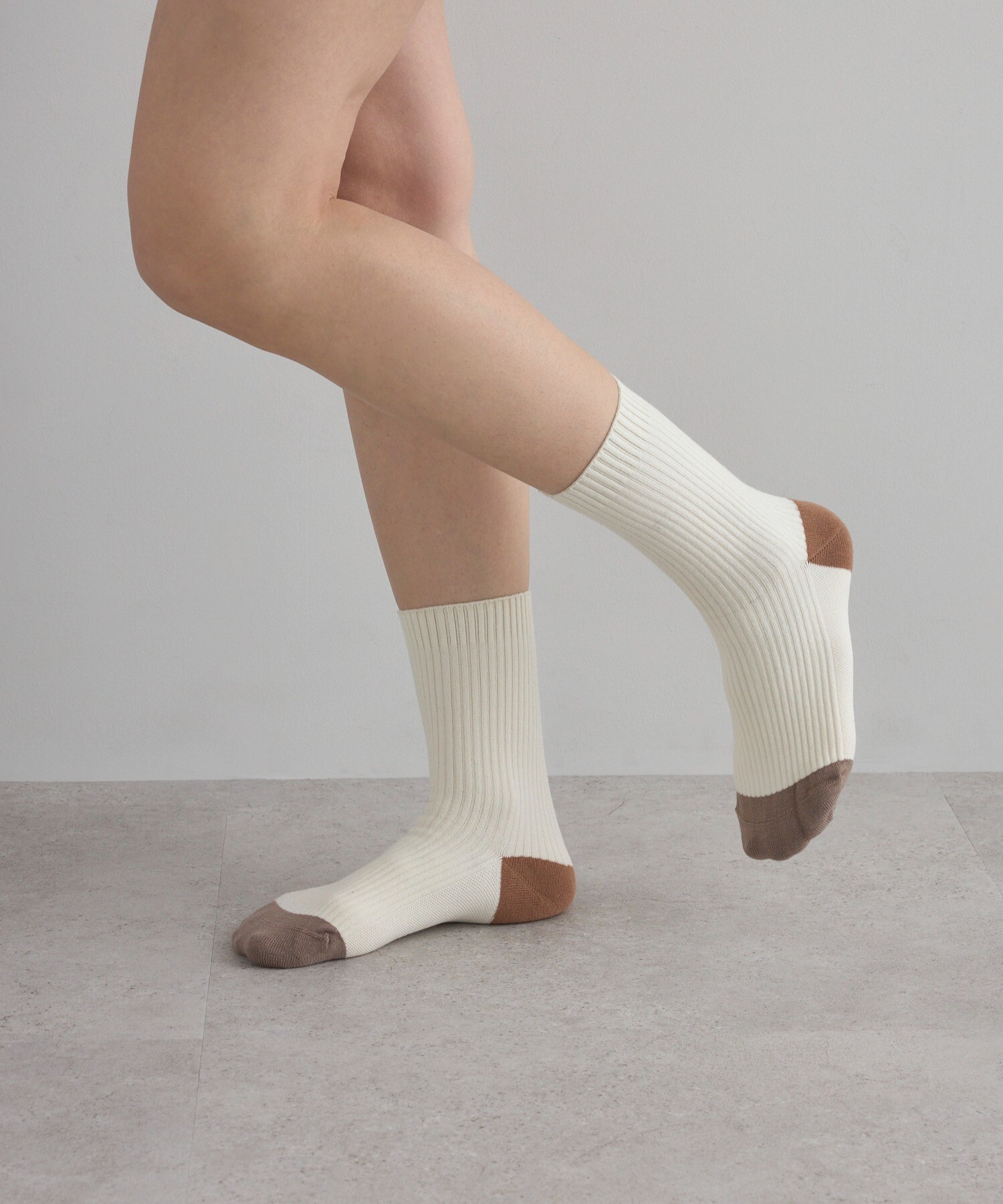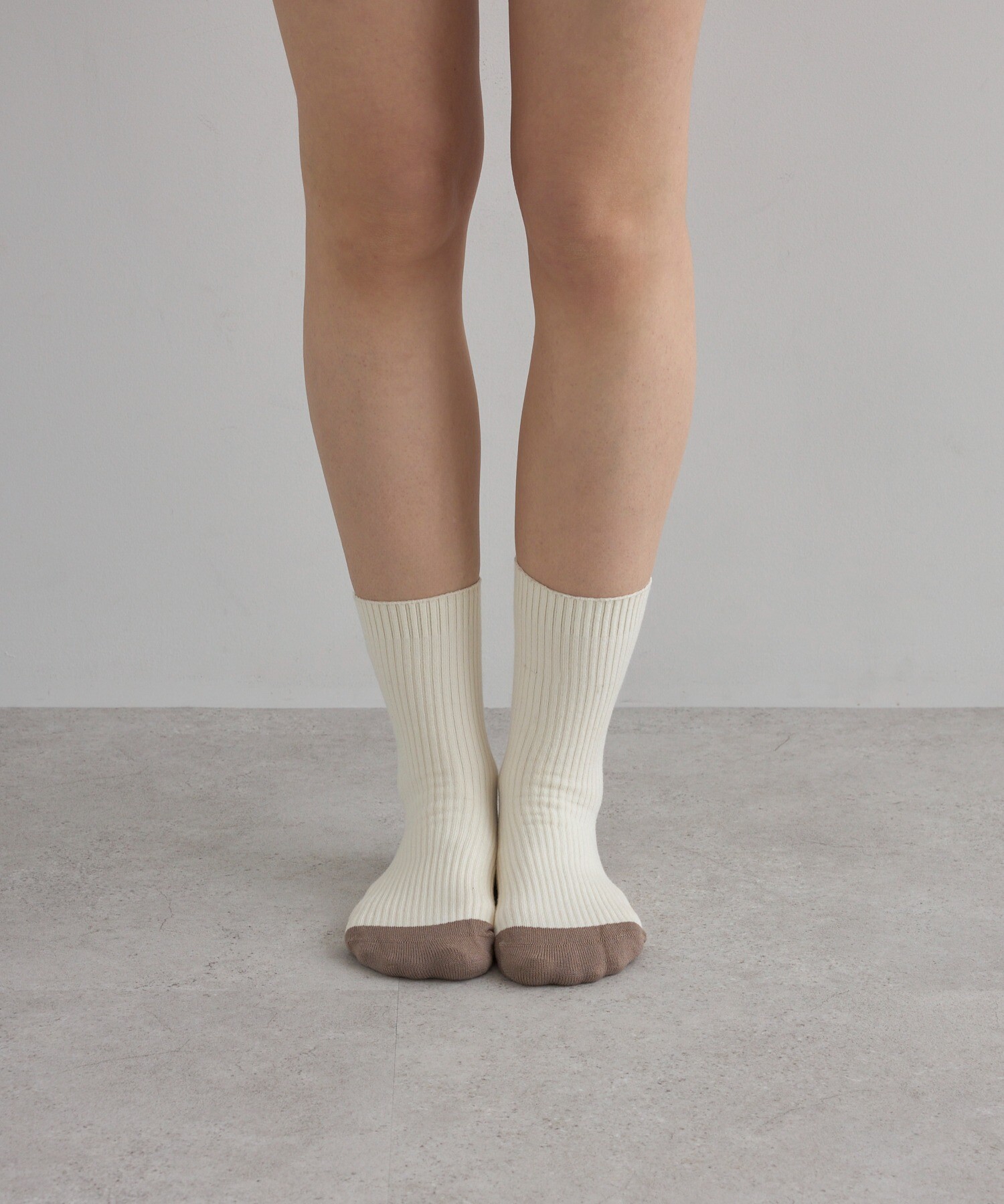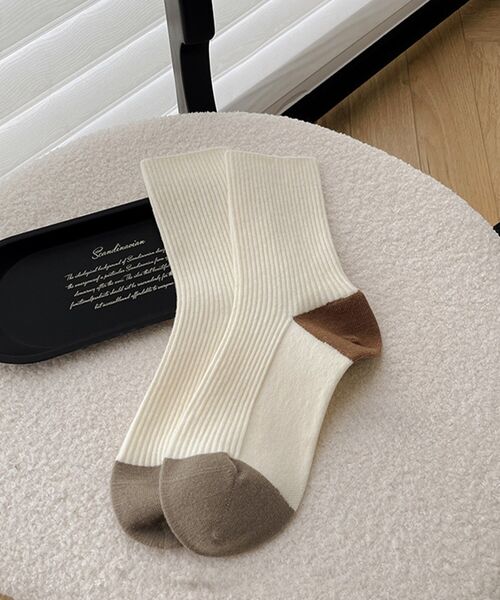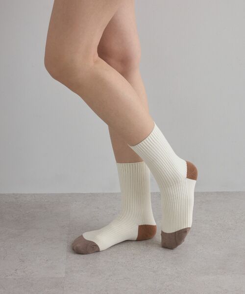 アイボリー・グレー・ブラウンの柔らかいカラーがセットになったリブソックス。