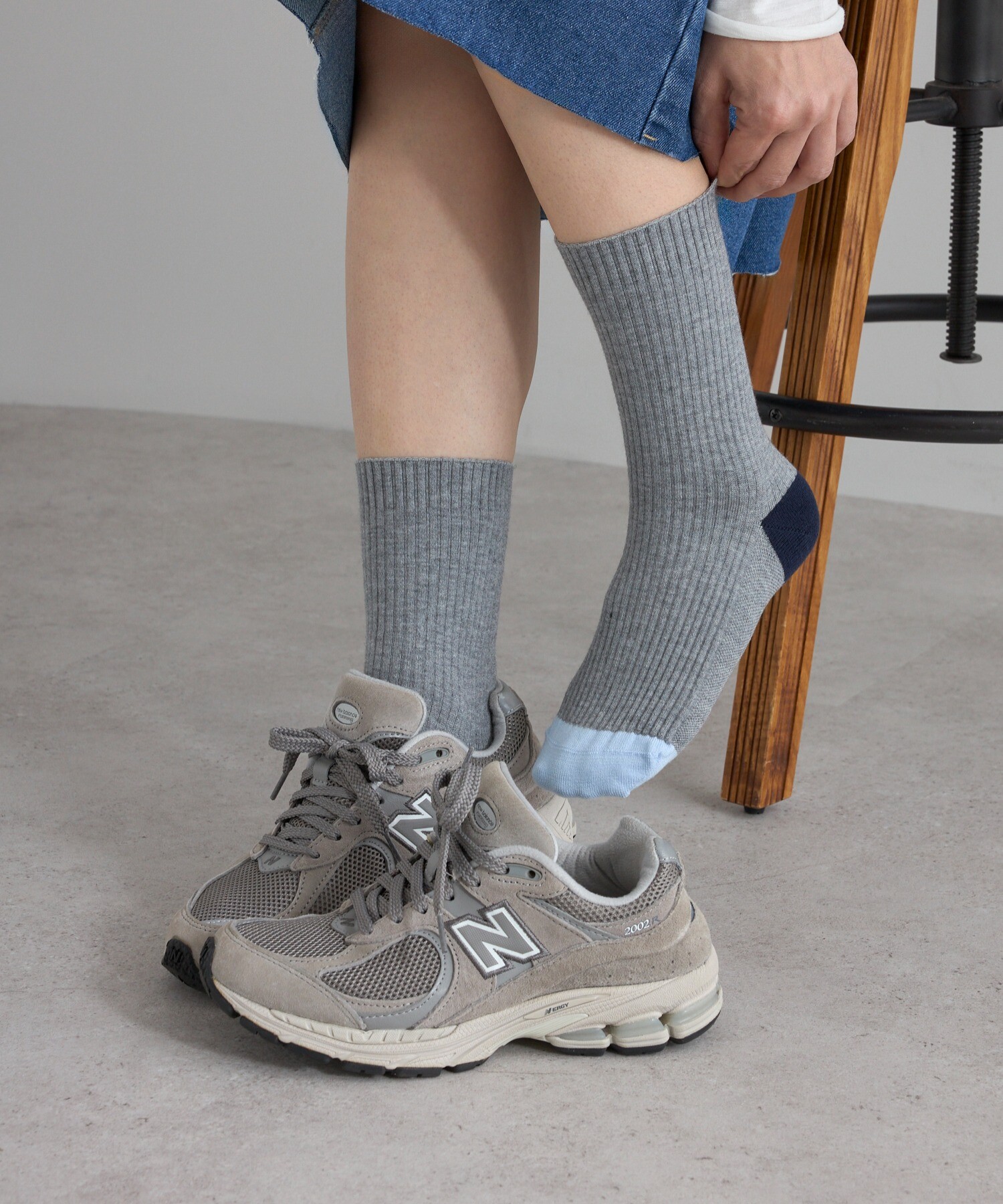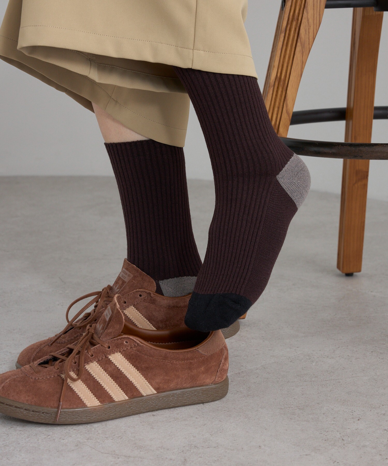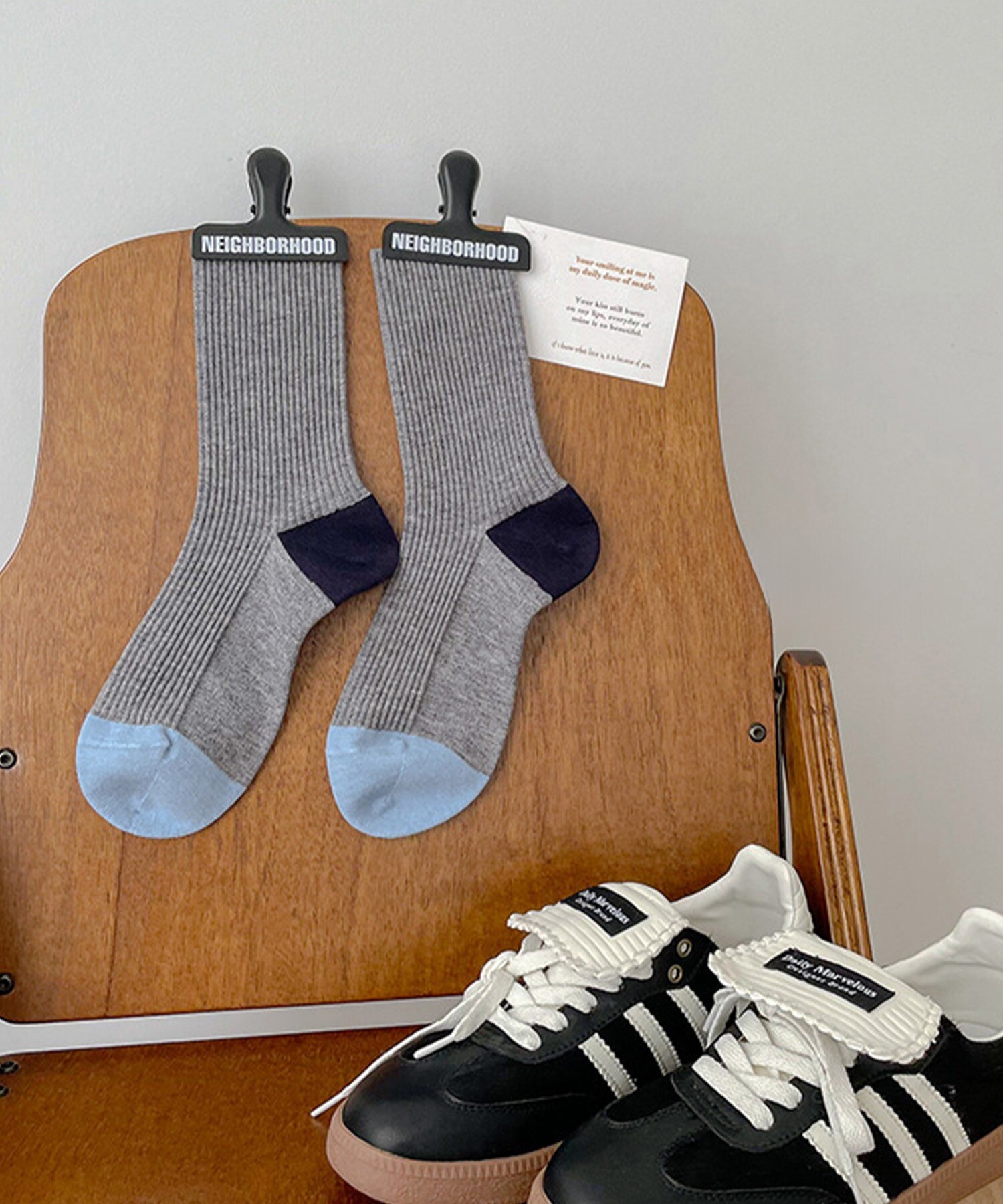 アイボリー・グレー・ブラウンの柔らかいカラーがセットになったリブソックス。