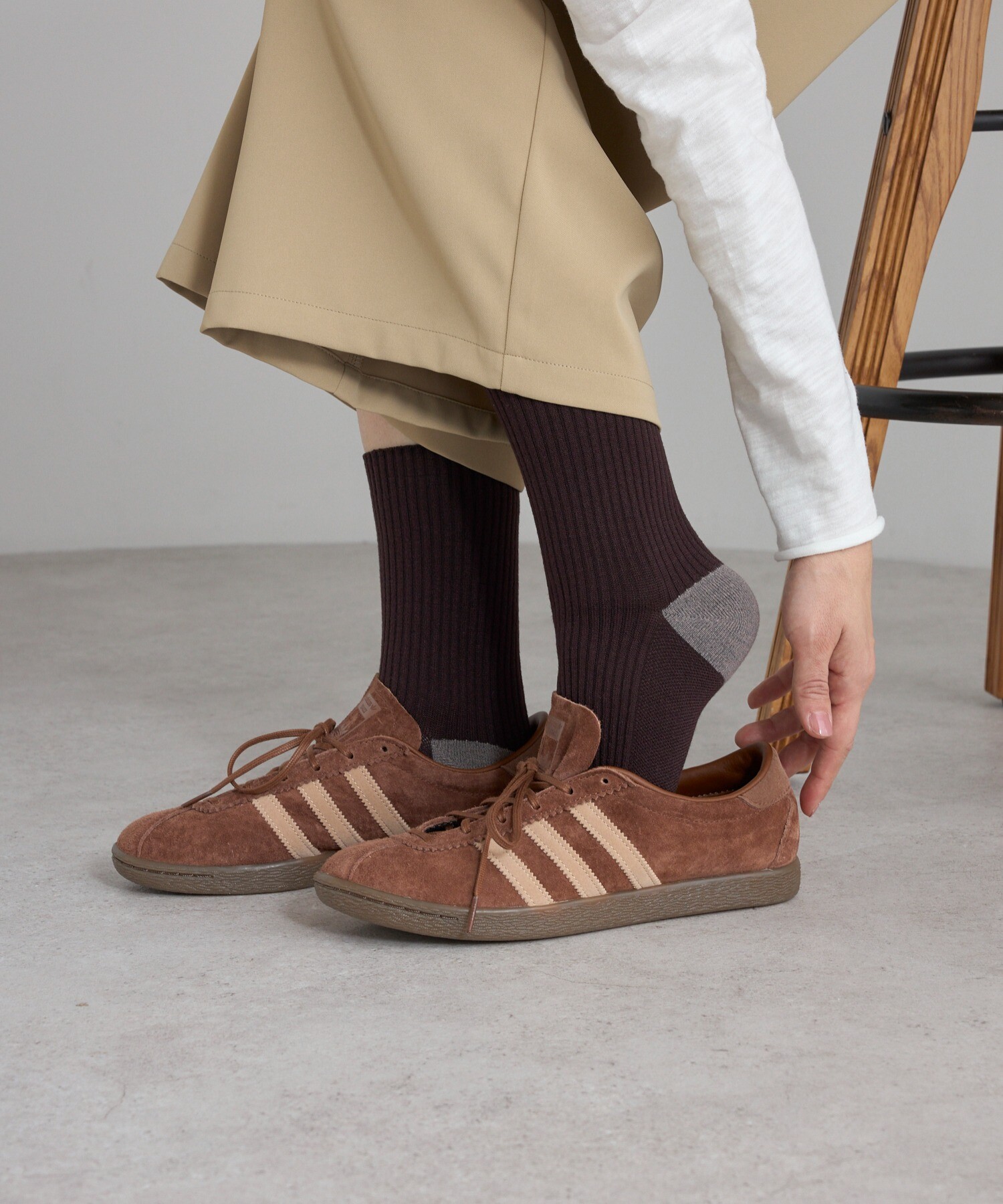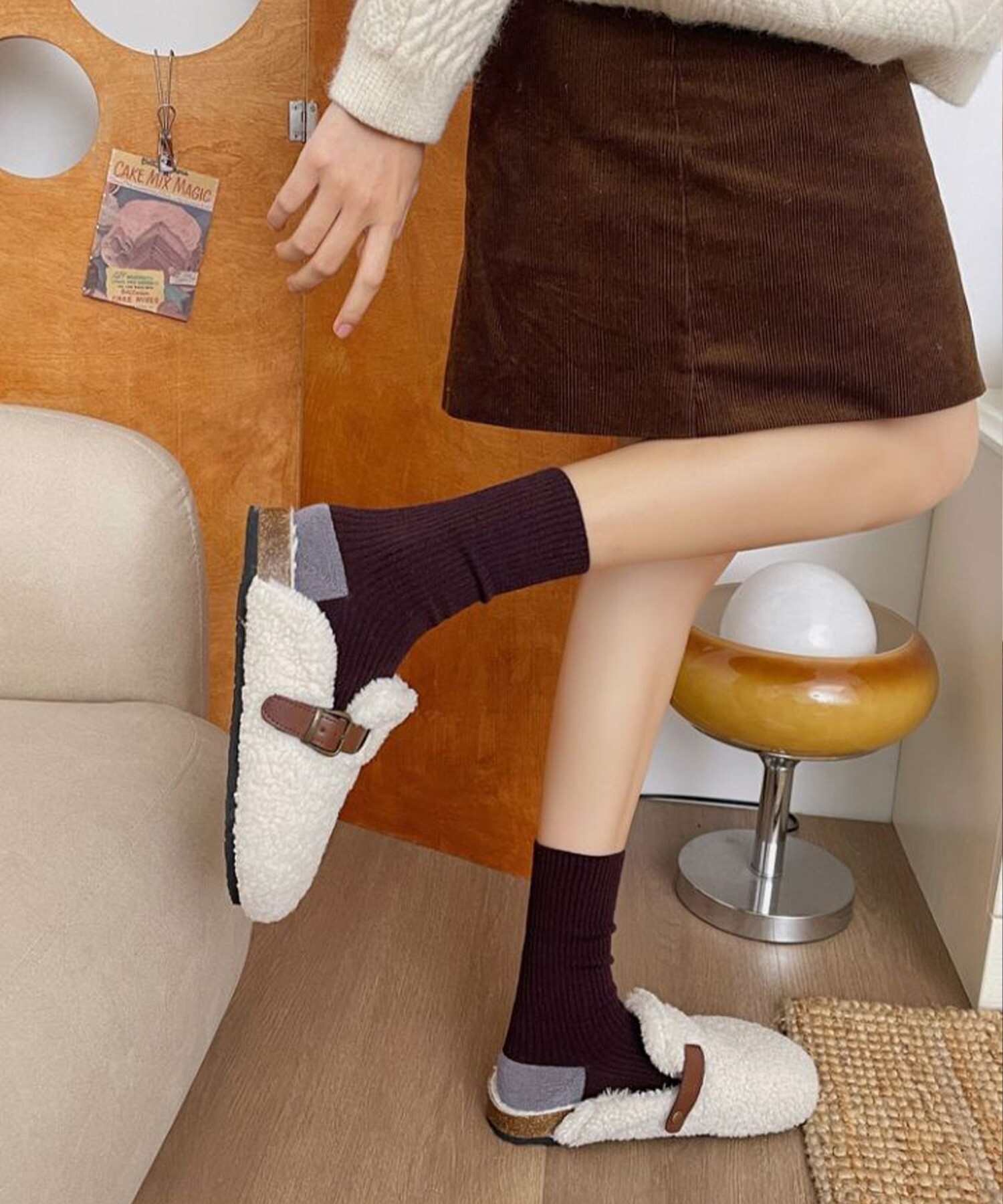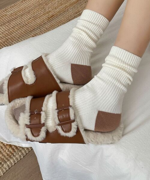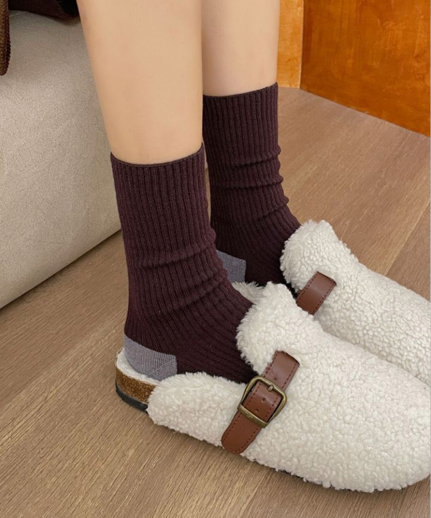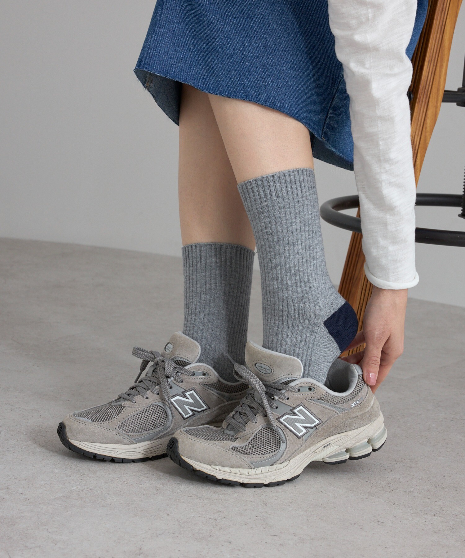 アイボリー・グレー・ブラウンの柔らかいカラーがセットになったリブソックス。