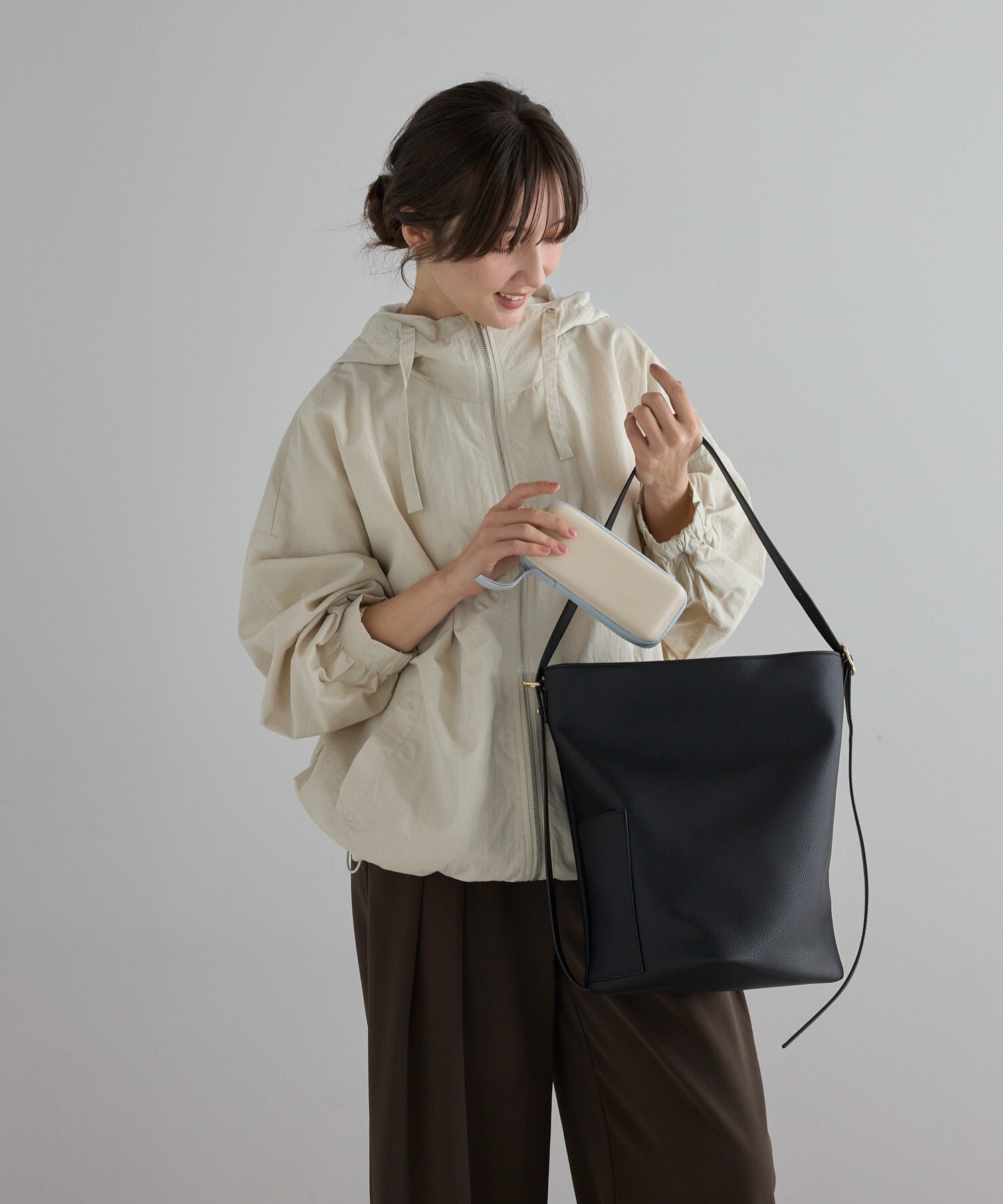 バッグの中でもかさばりにくい、薄型でコンパクトに持ち運べる設計。