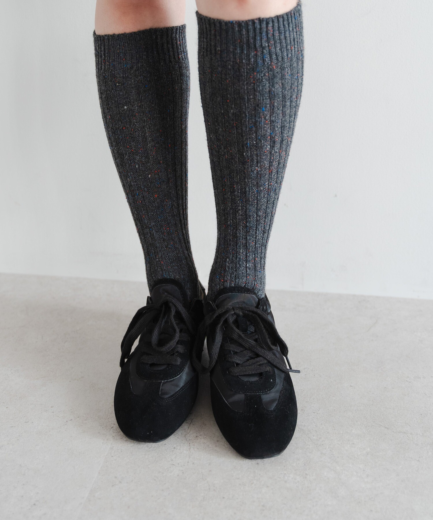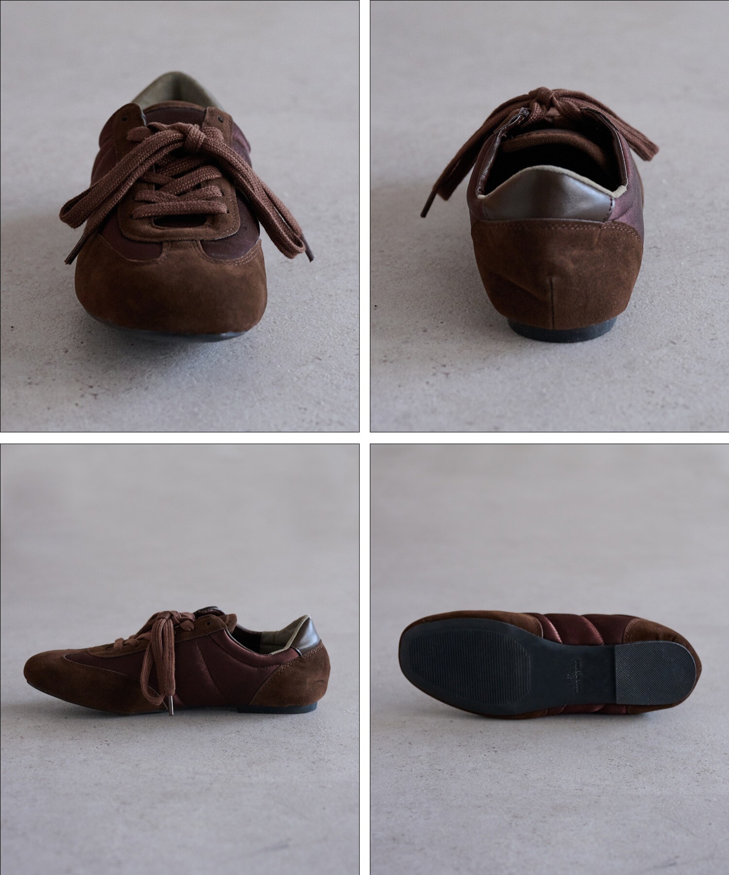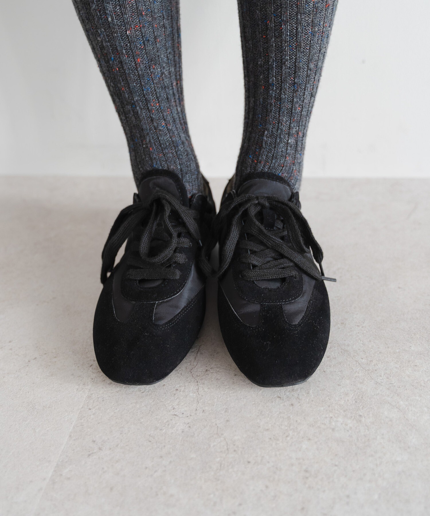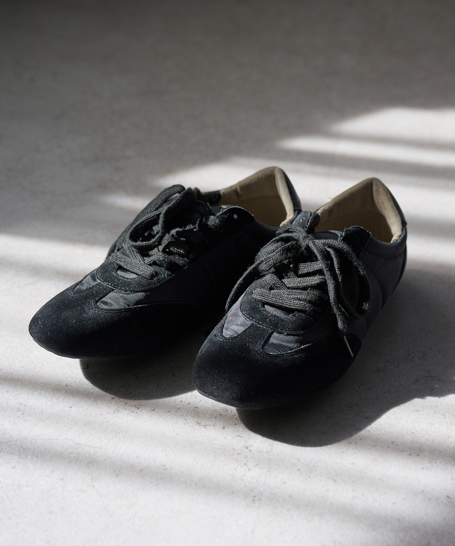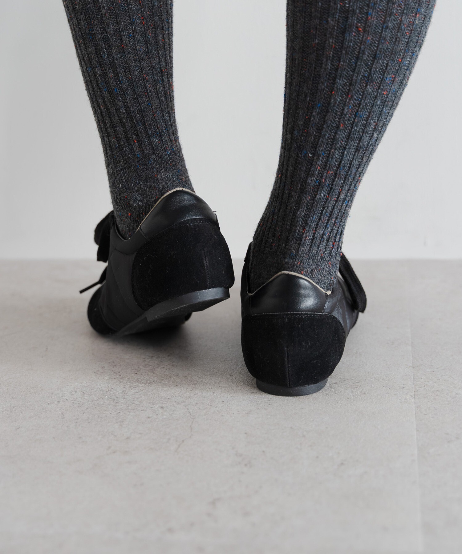薄底ソールが軽やかなバランスを生み、旬のシルエットに。