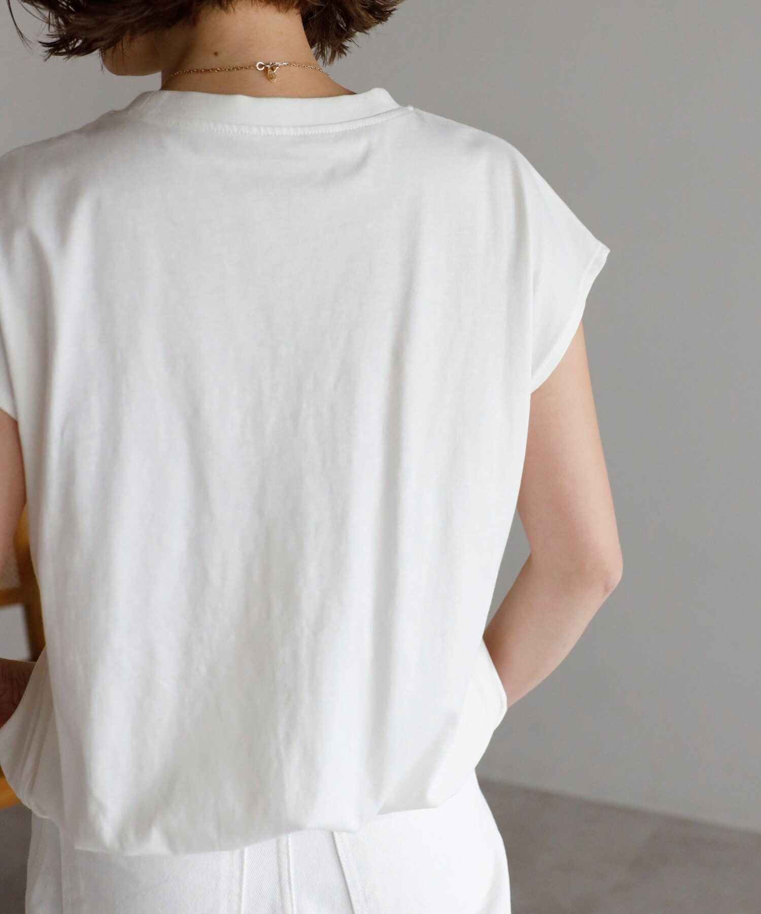 フレンチスリーブが肩まわりをすっきり見せ。