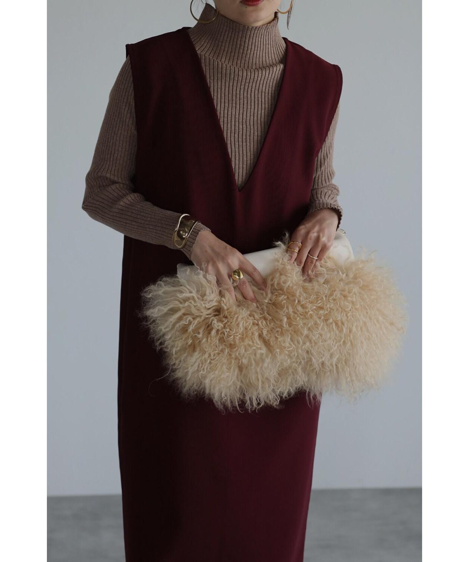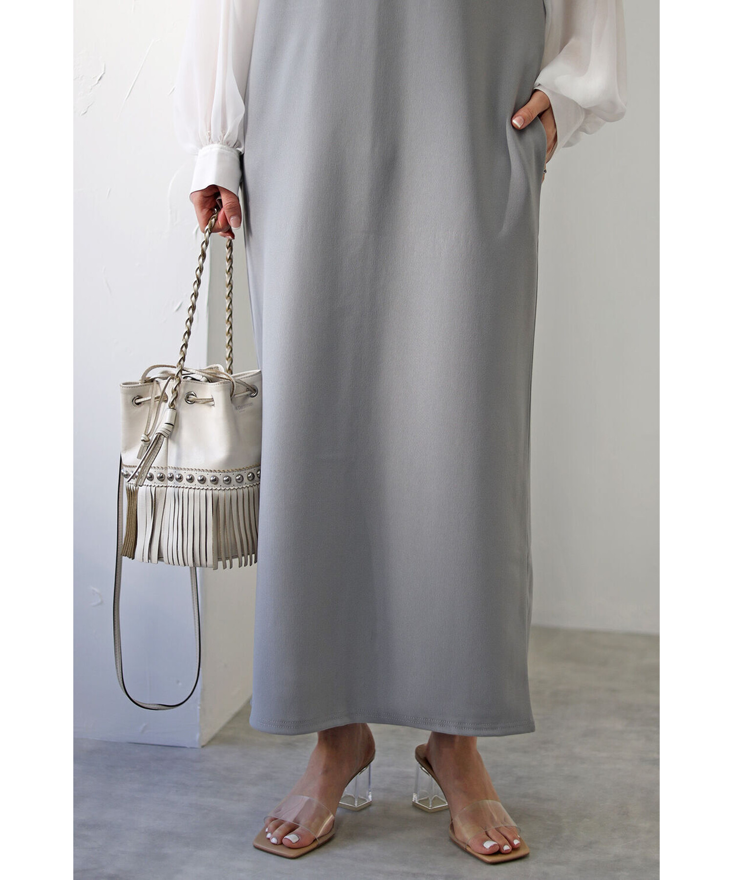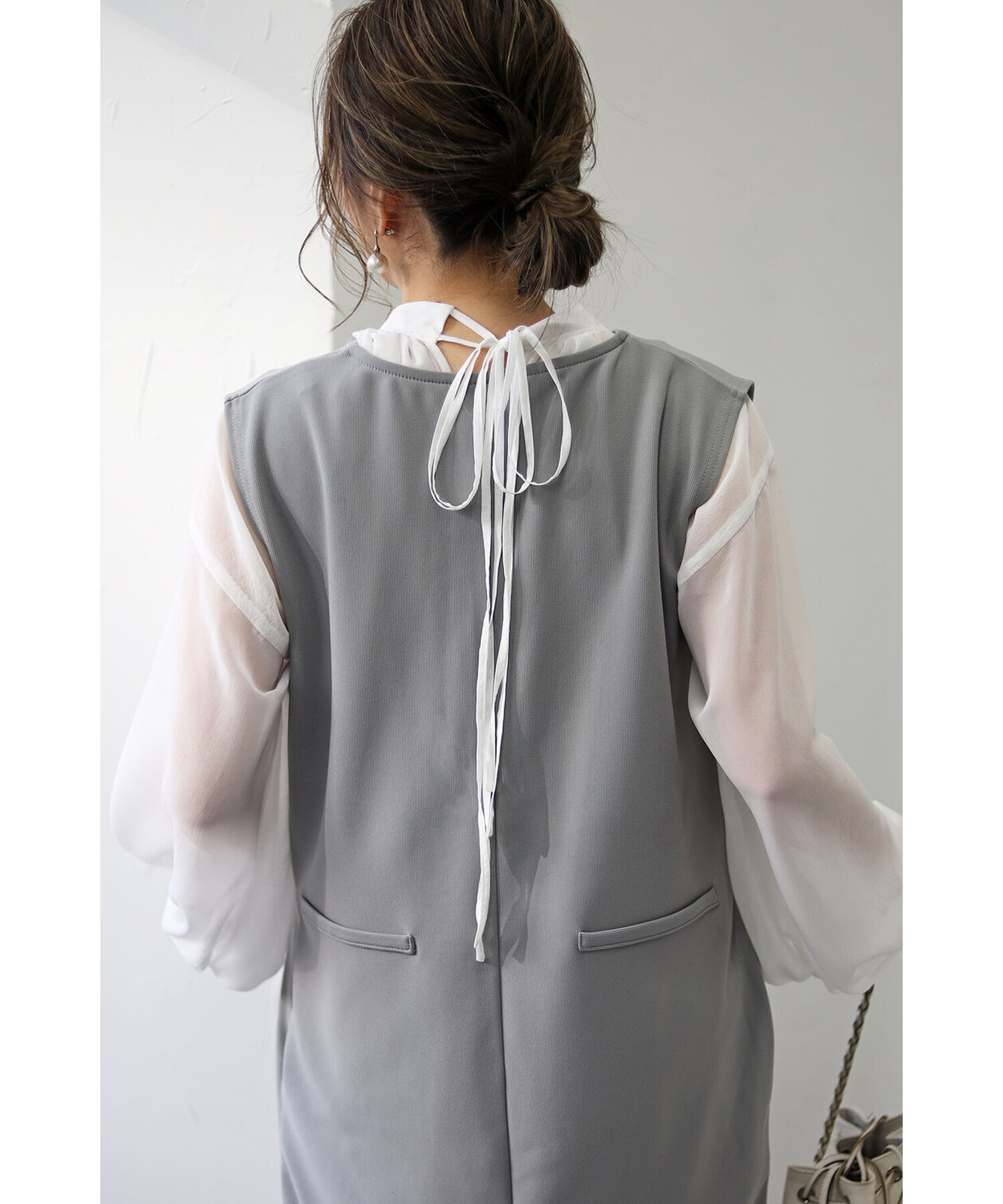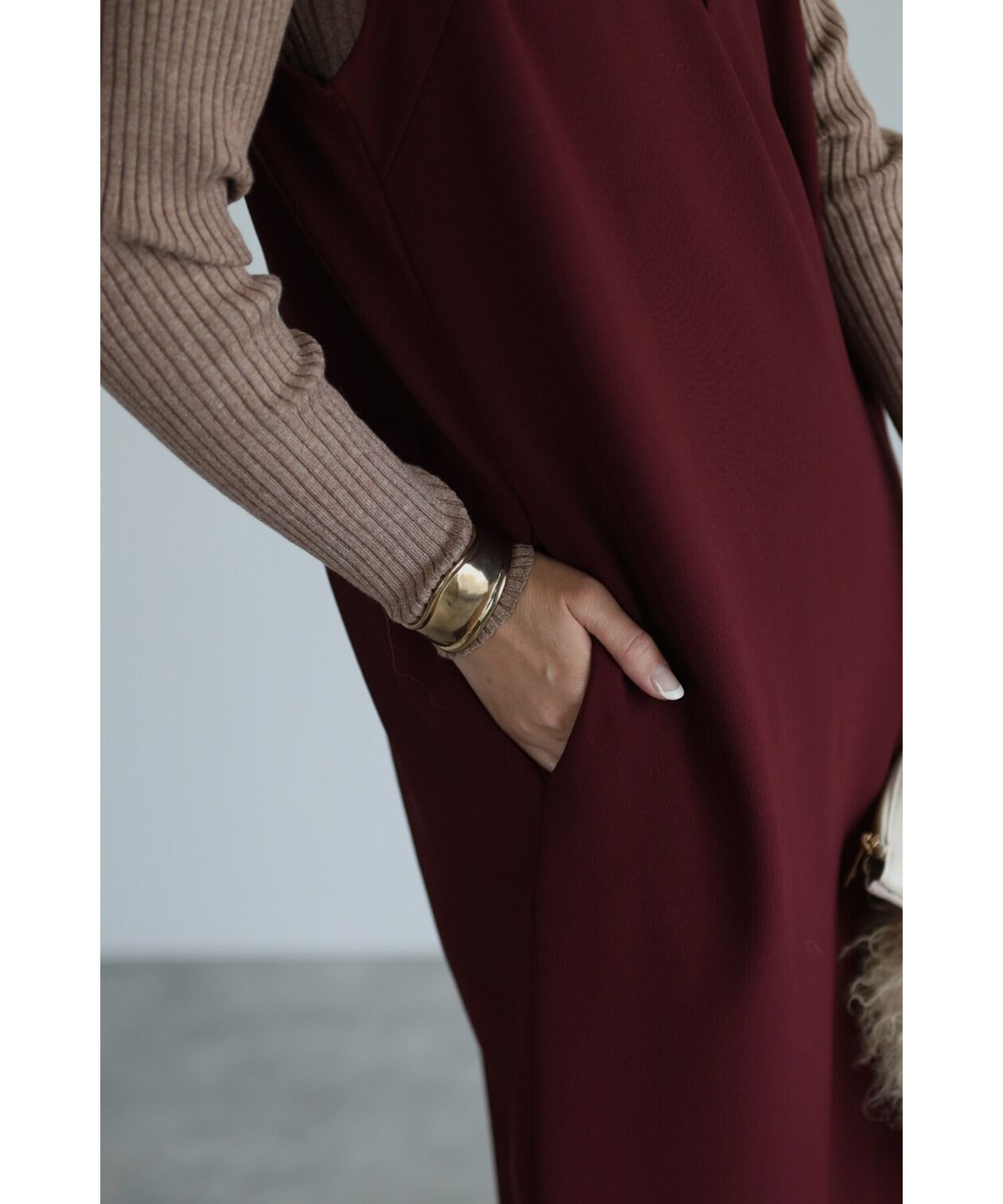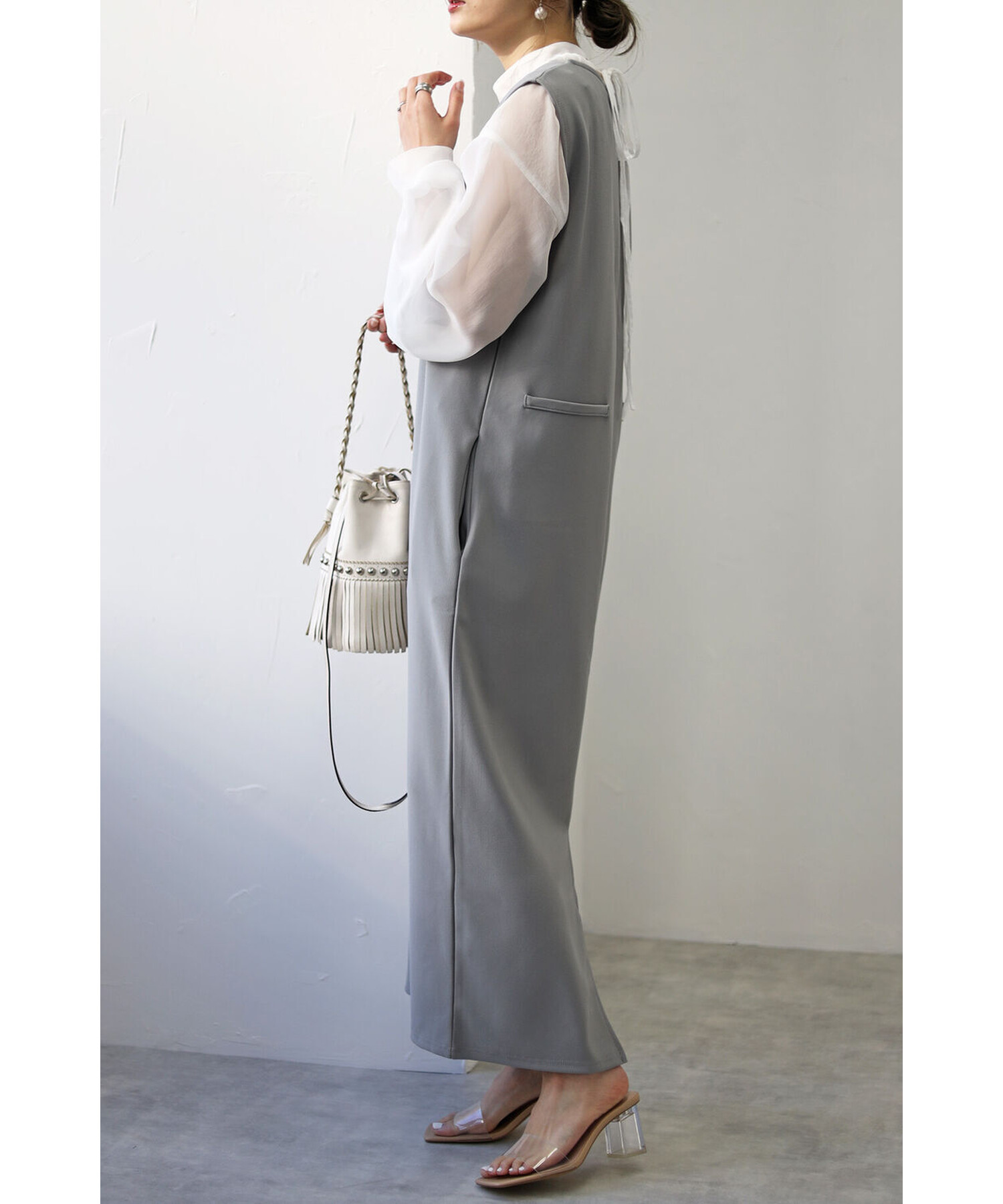 深めのVネックでレイヤードスタイルを楽しめるノースリーブワンピース。