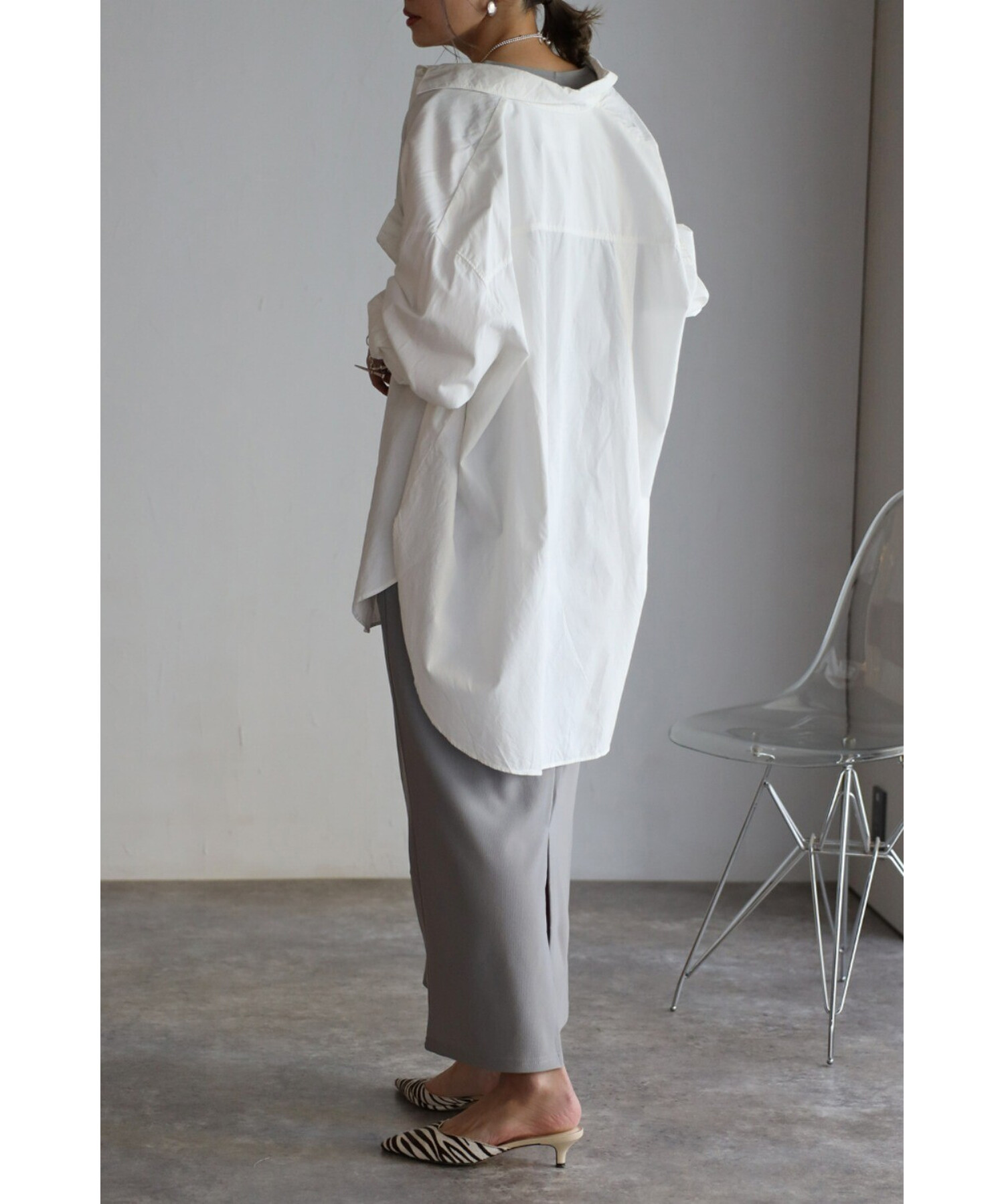 カットソーやタートルの他、シャツ、ブラウスを合わせたスタイリングもオススメです。