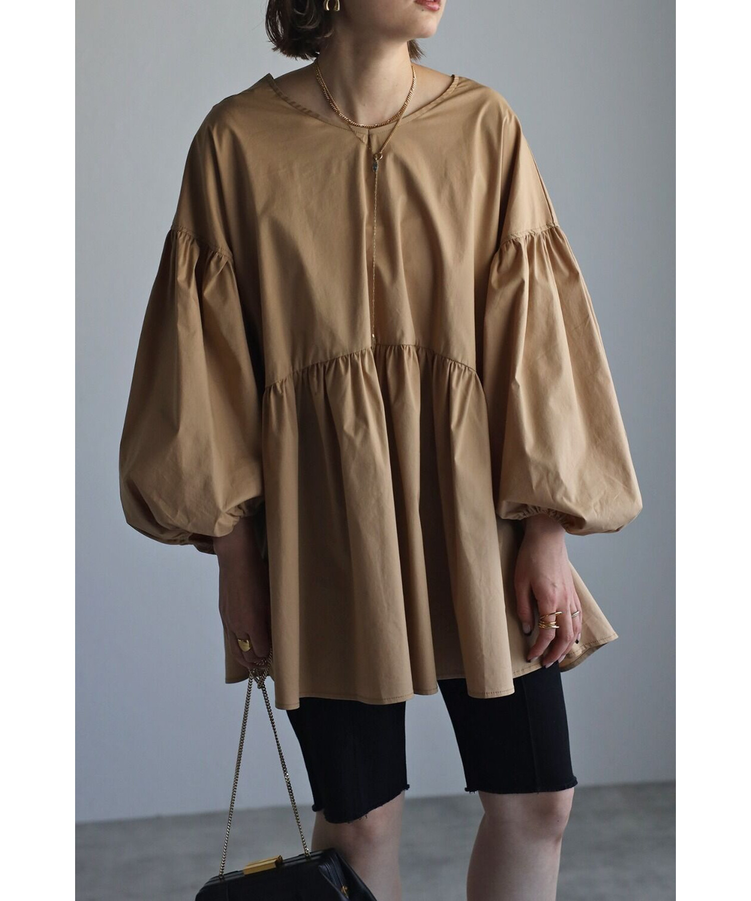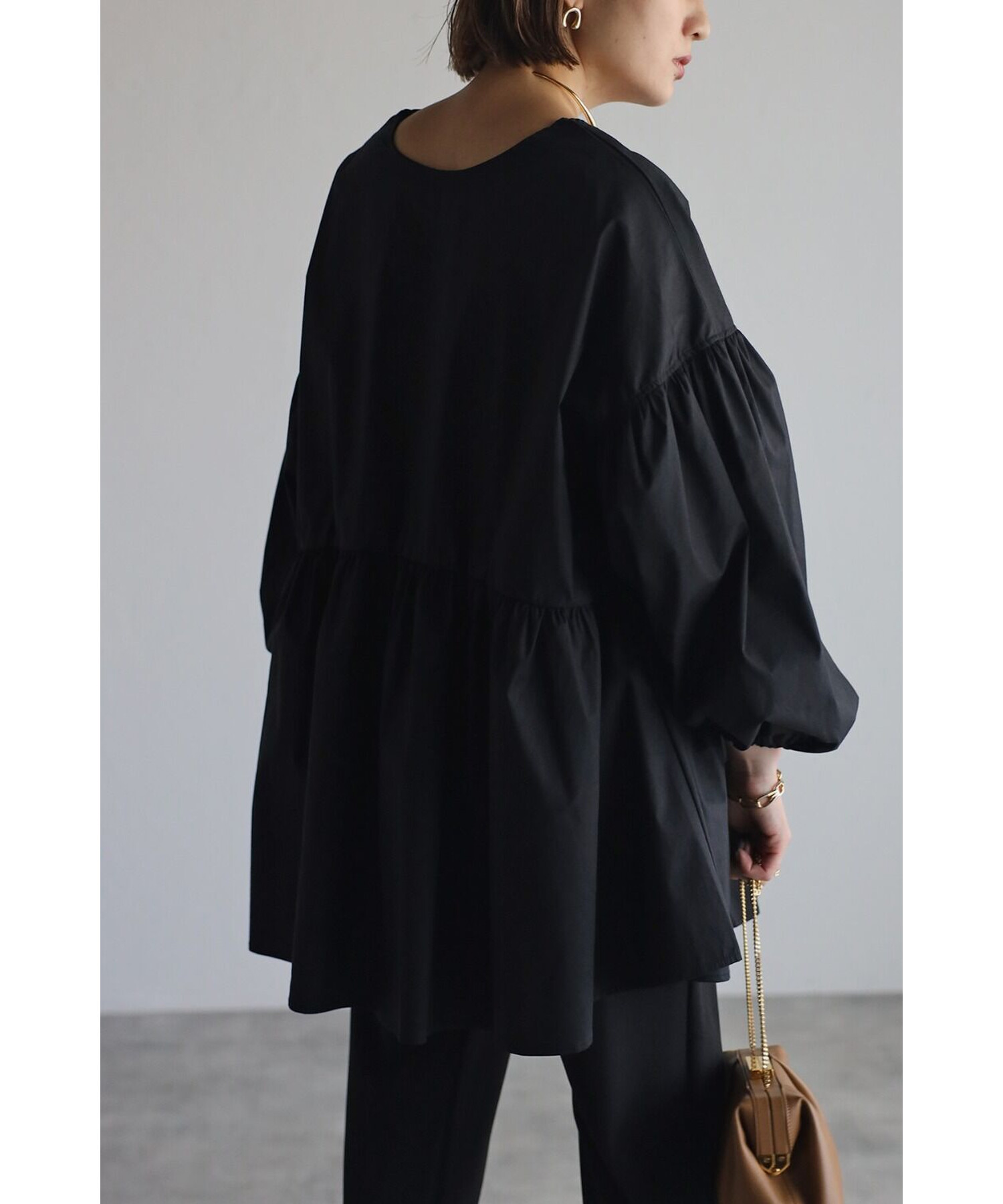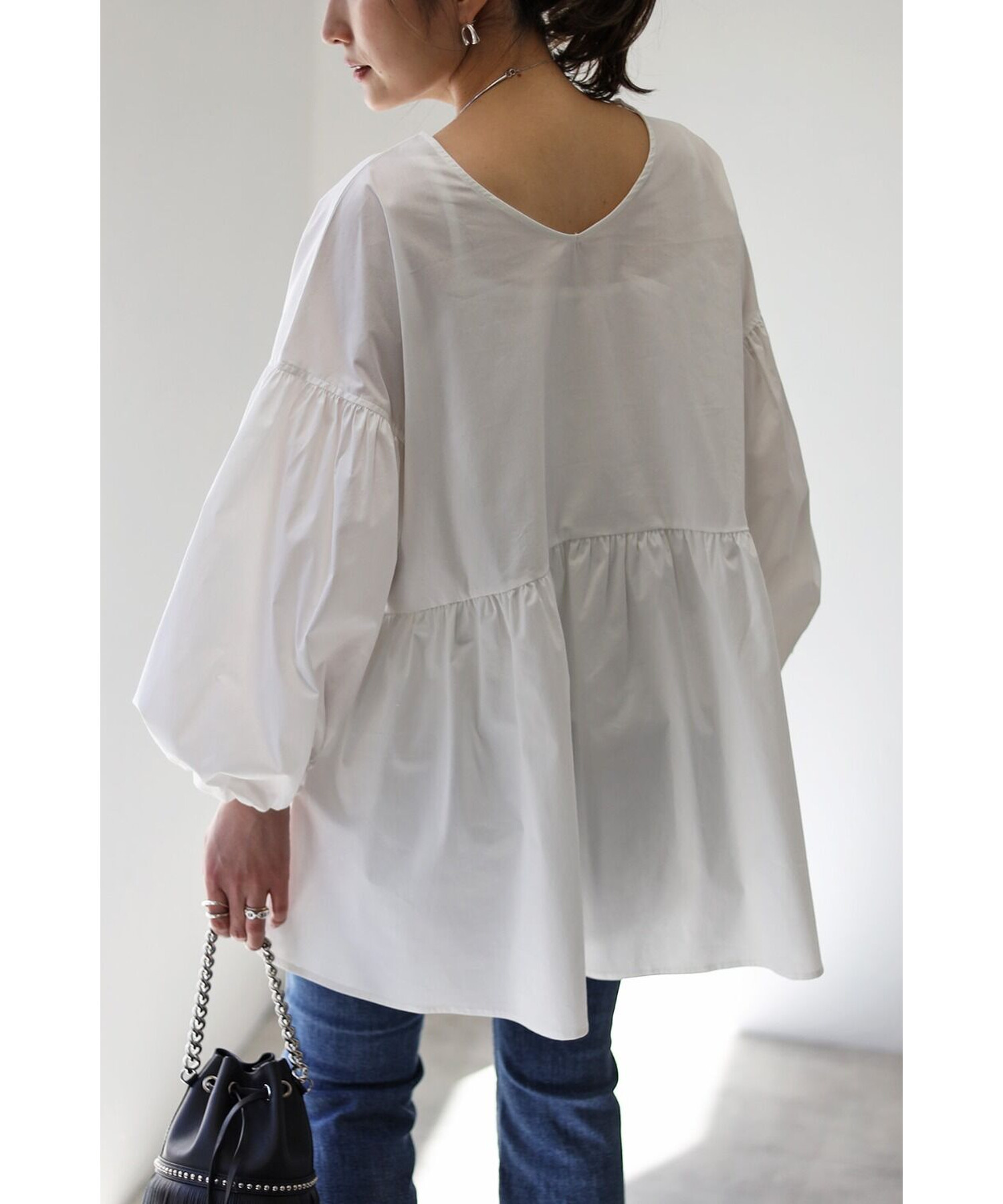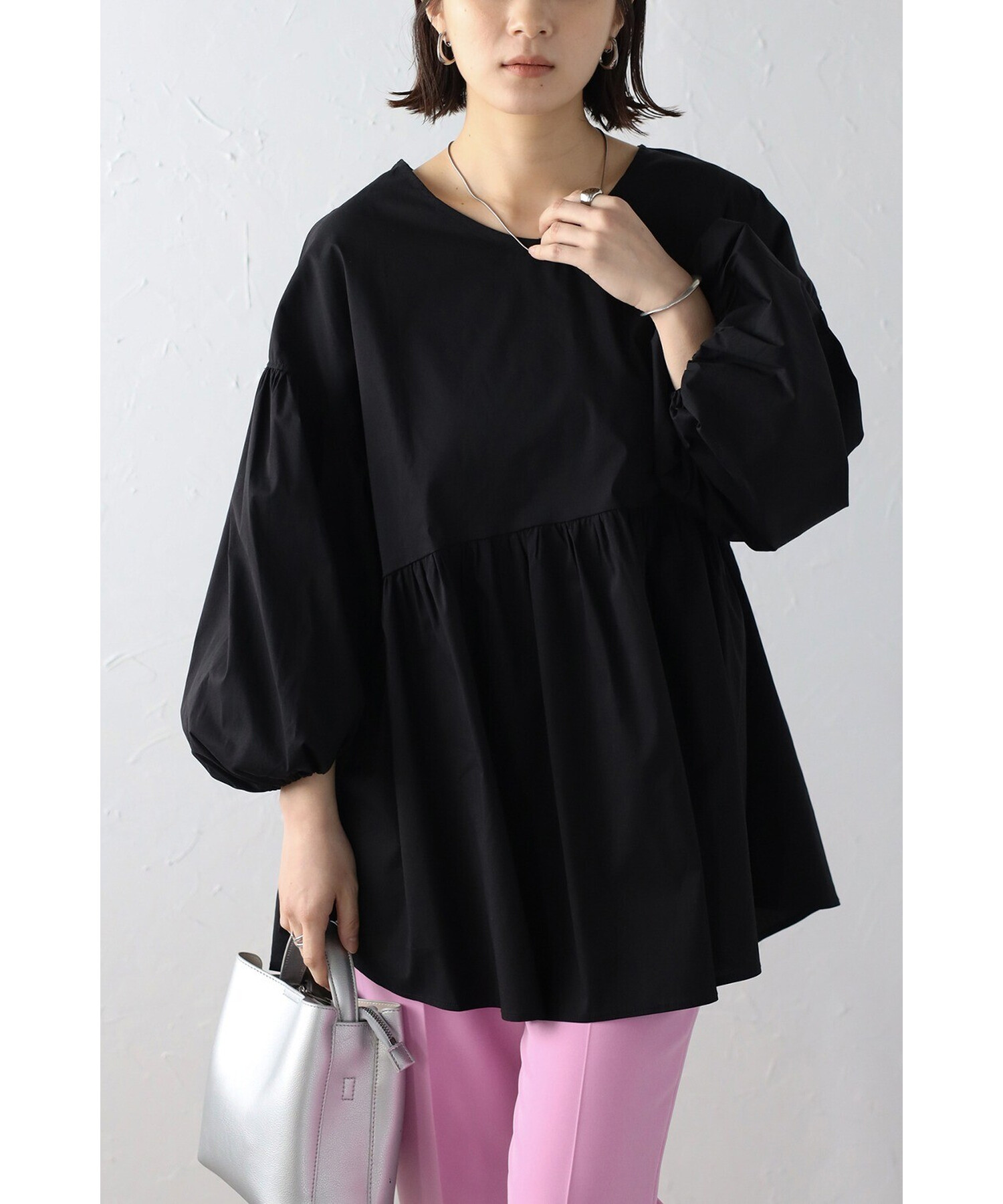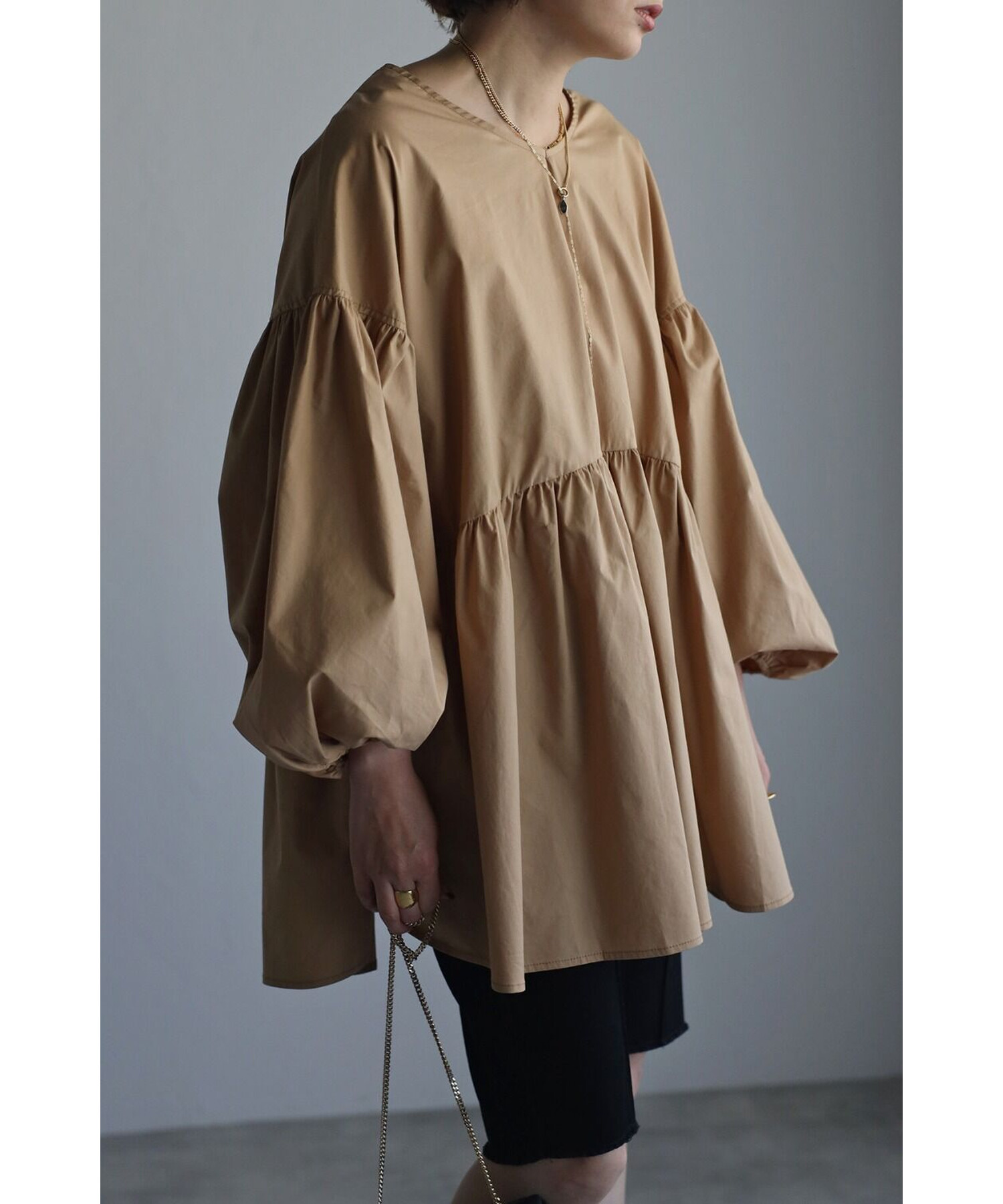 今季らしいボリュームスリーブがポイントのティアードブラウス。