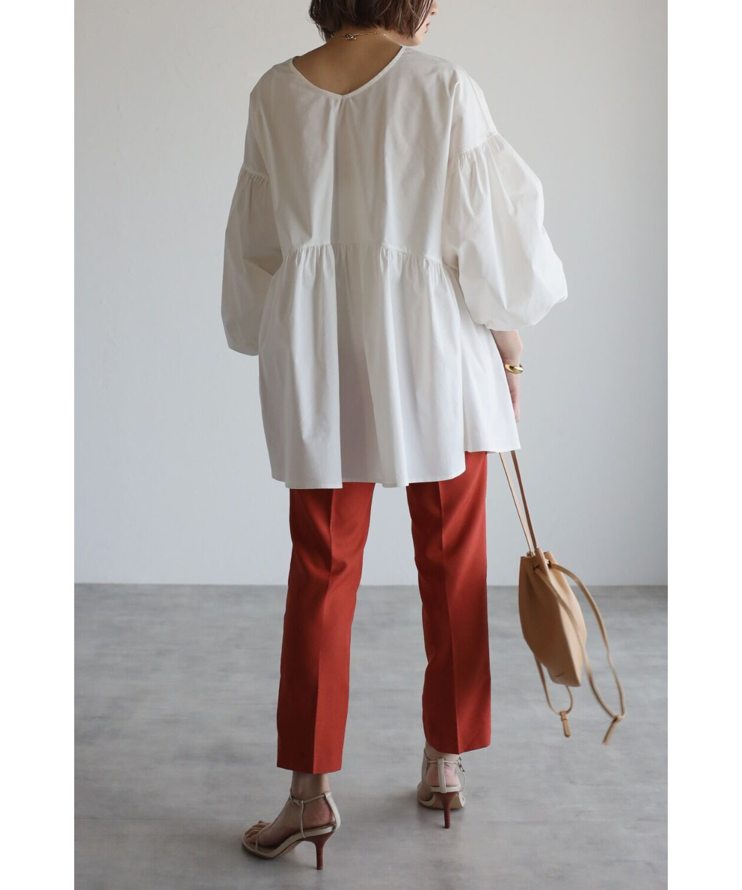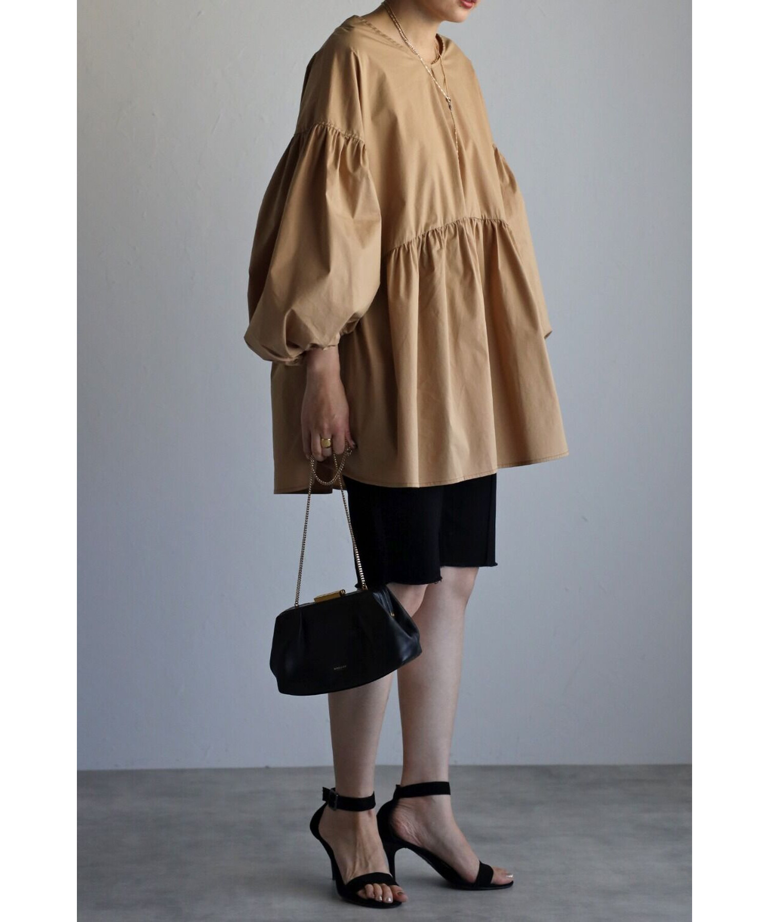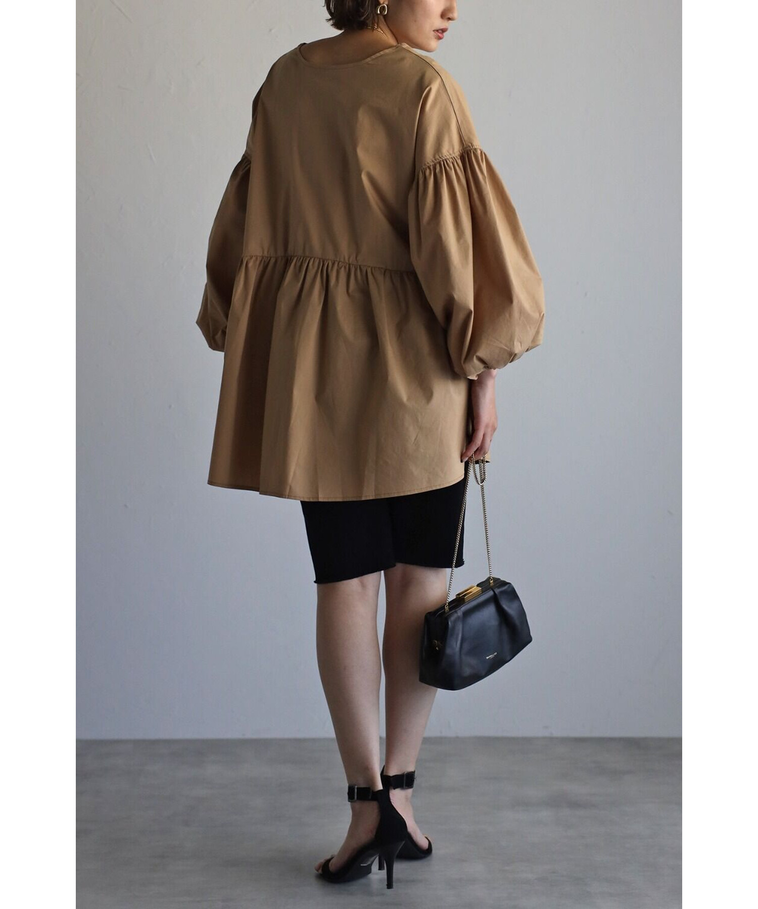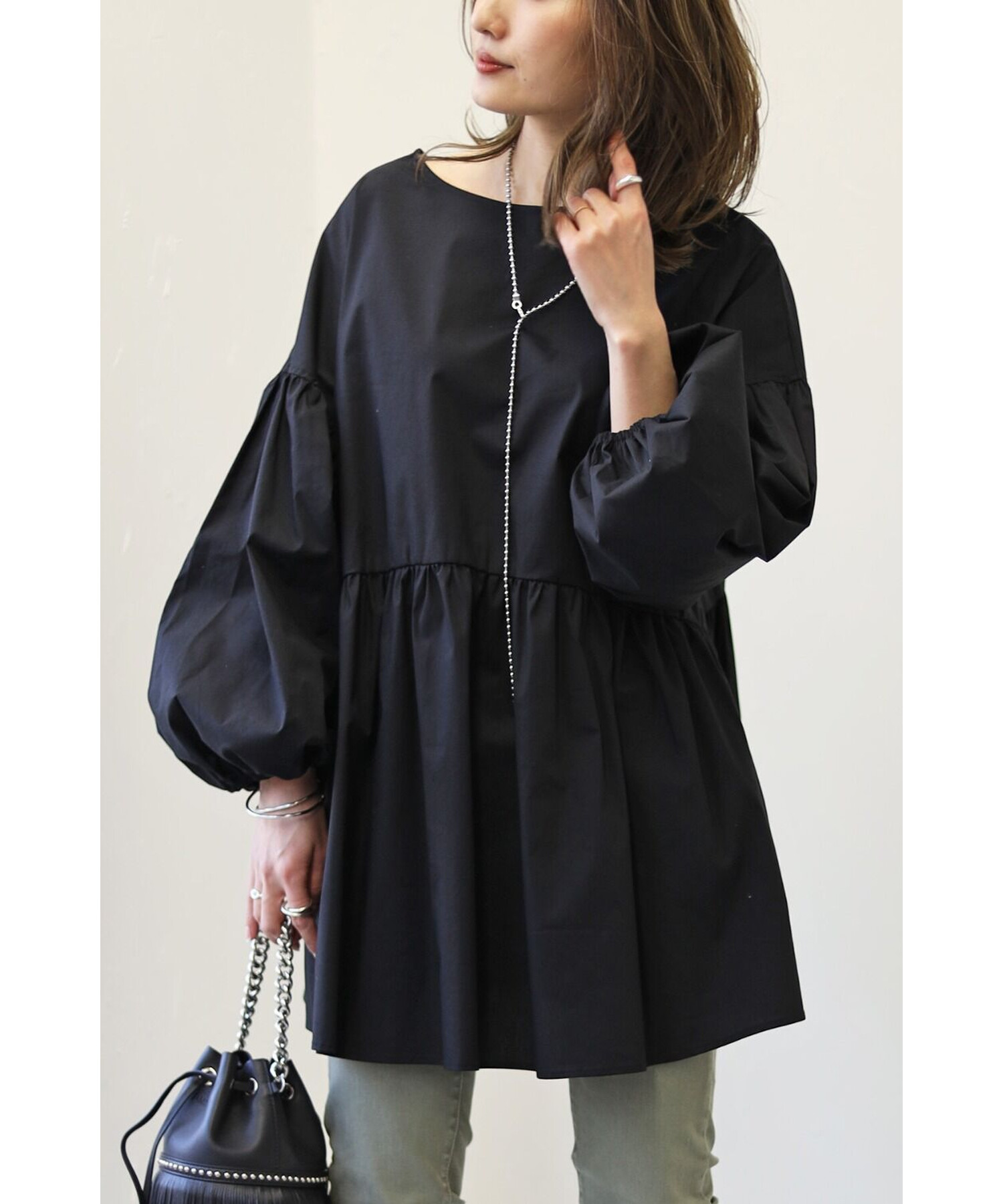 今季らしいボリュームスリーブがポイントのティアードブラウス。