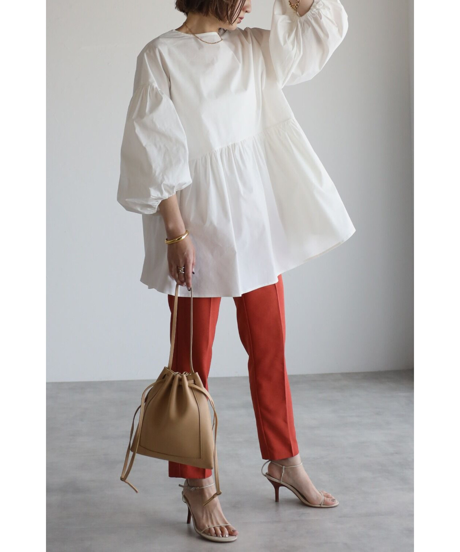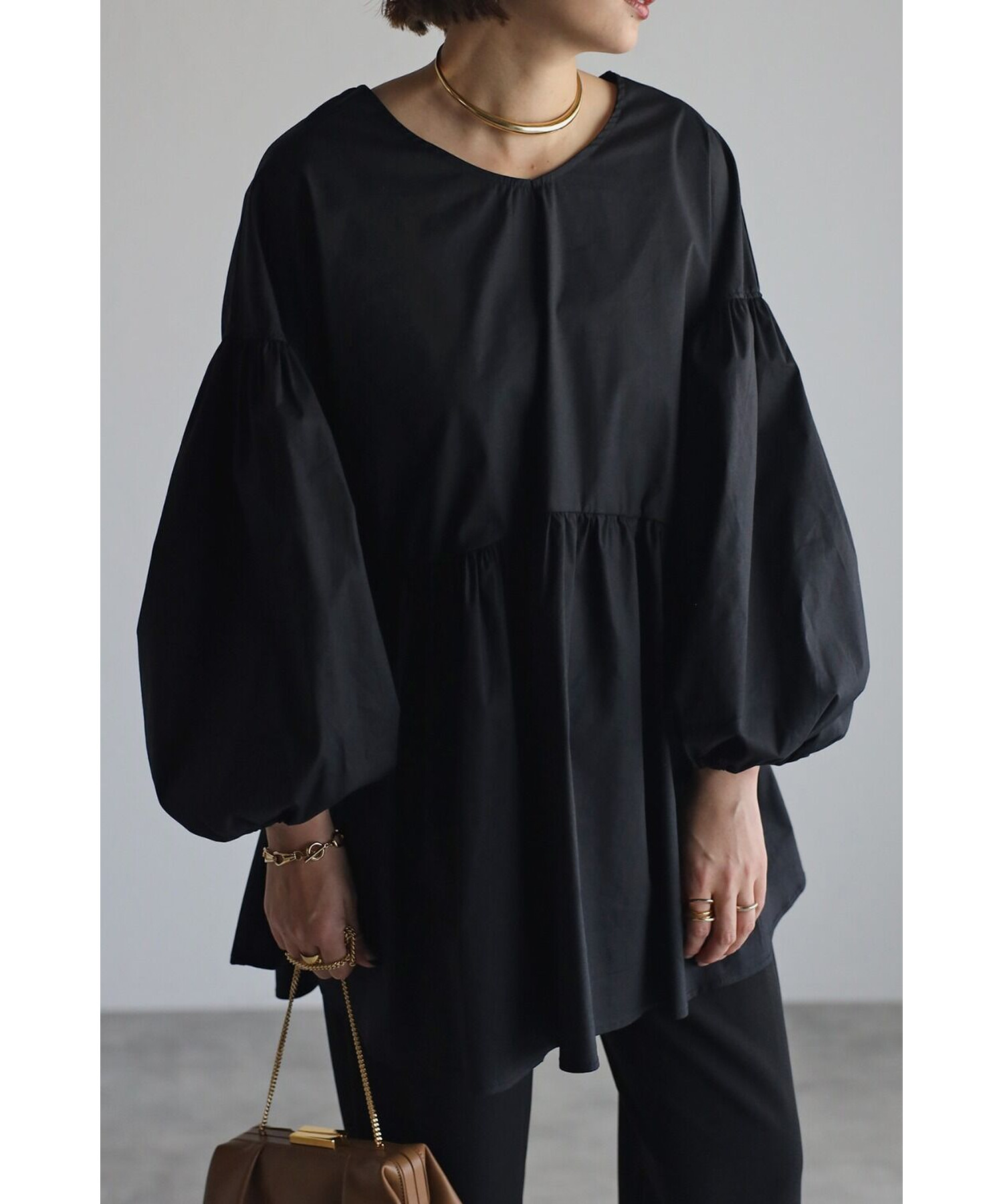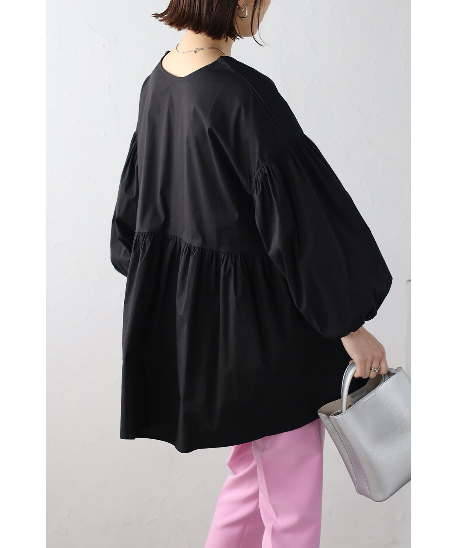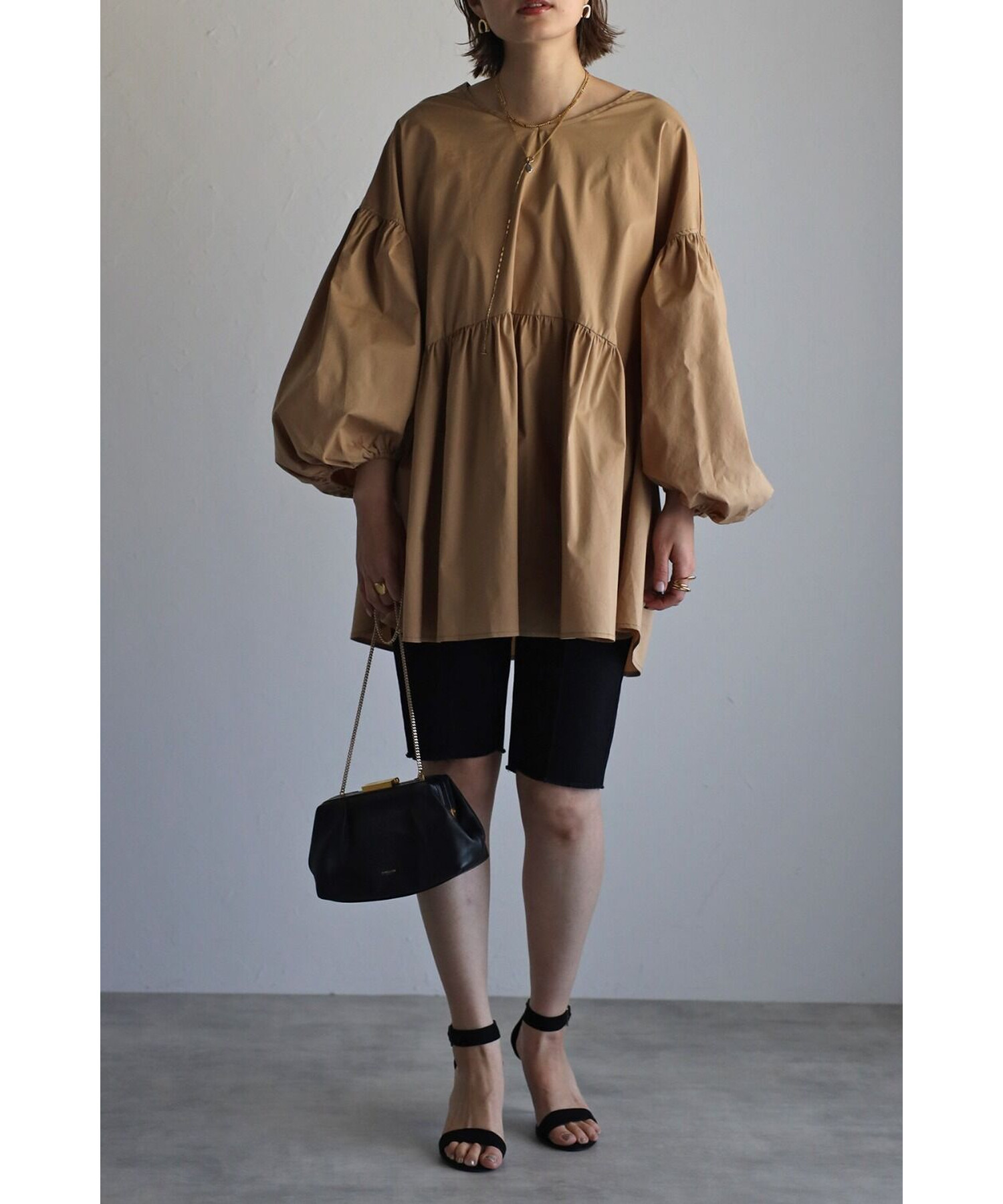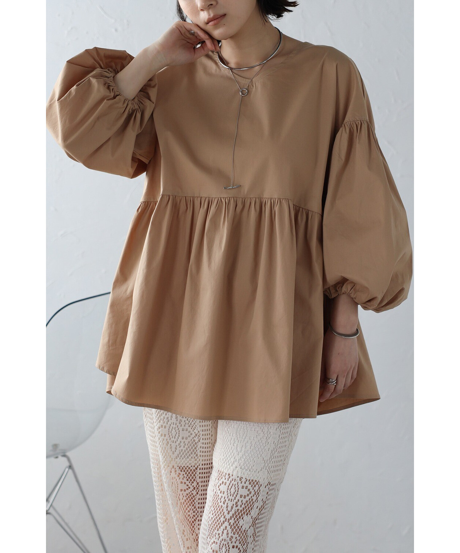 今季らしいボリュームスリーブがポイントのティアードブラウス。