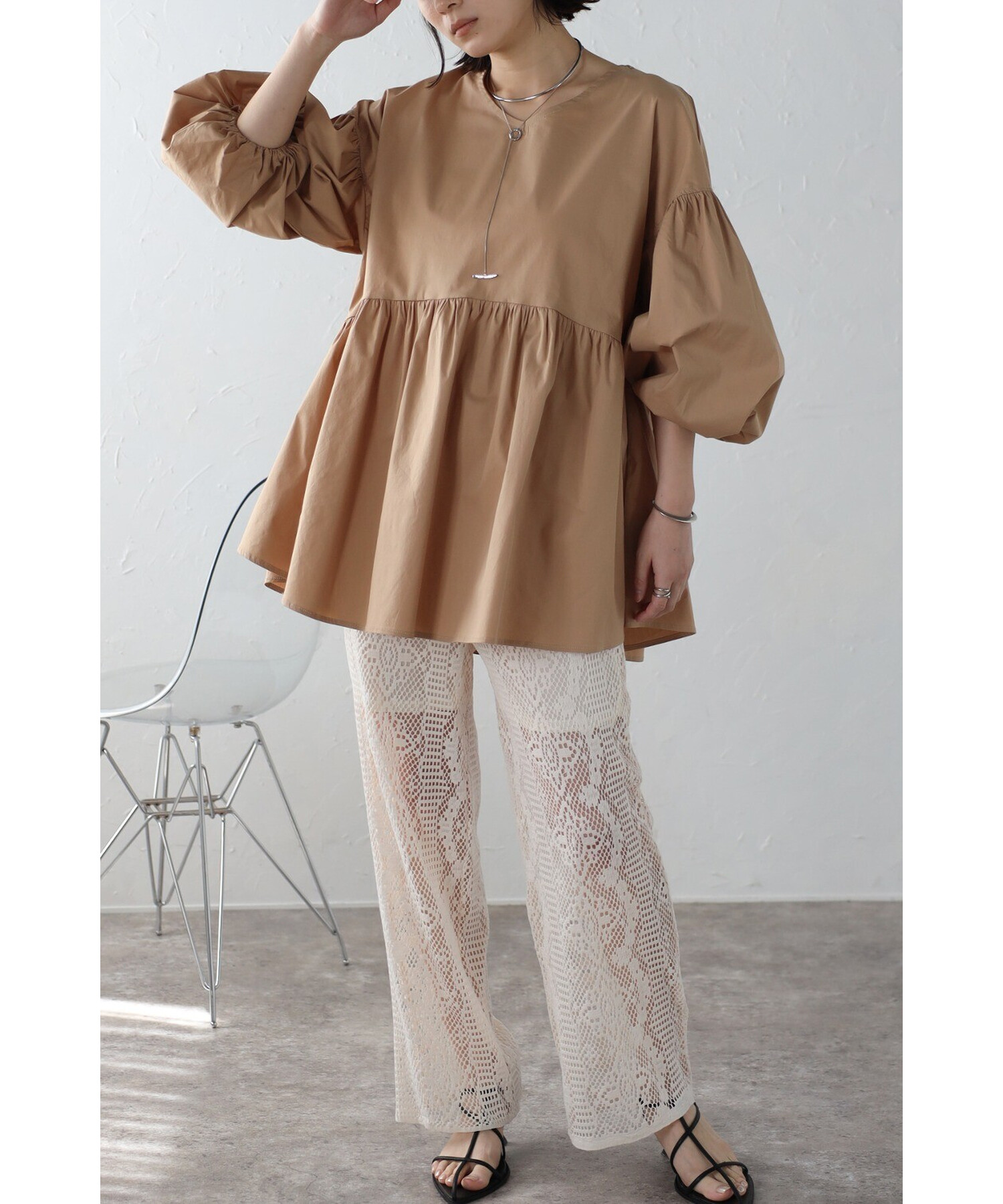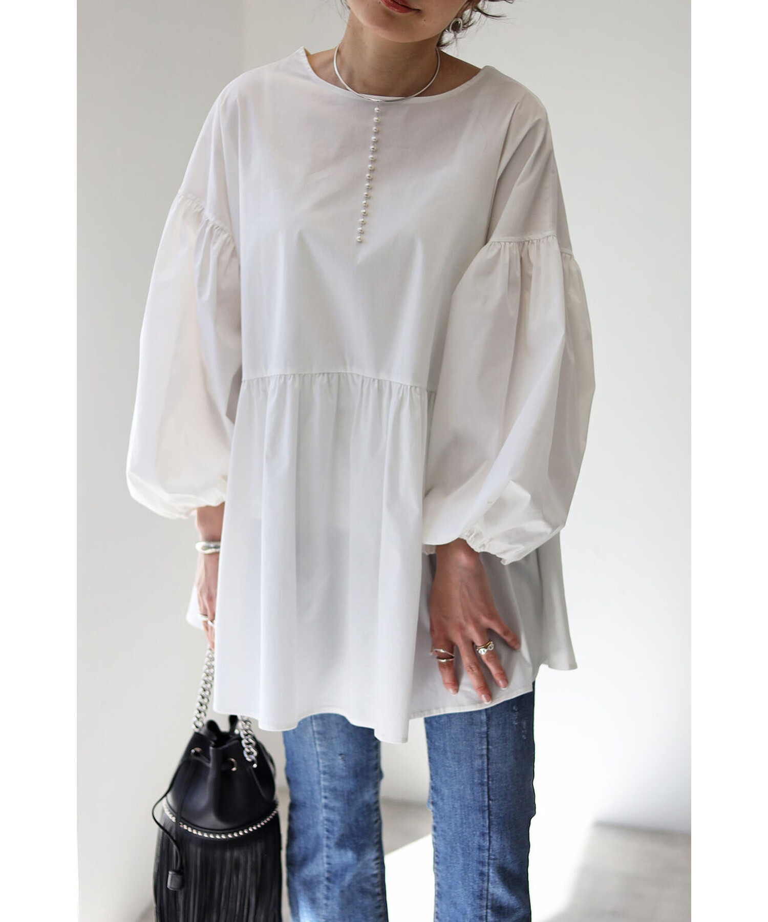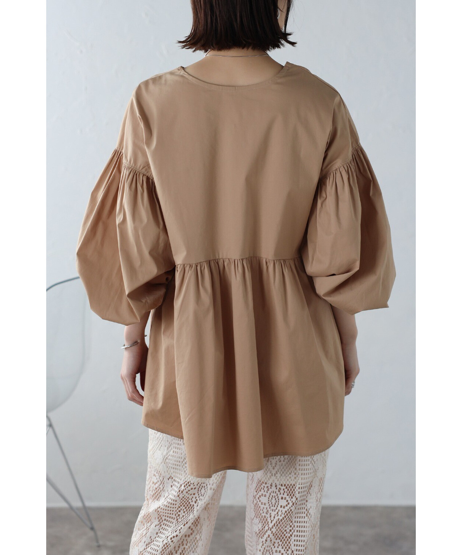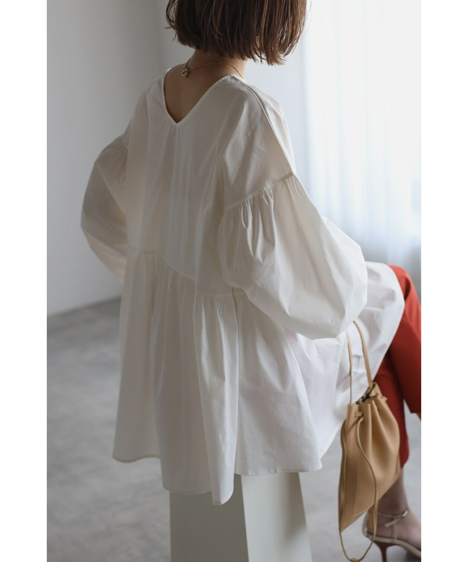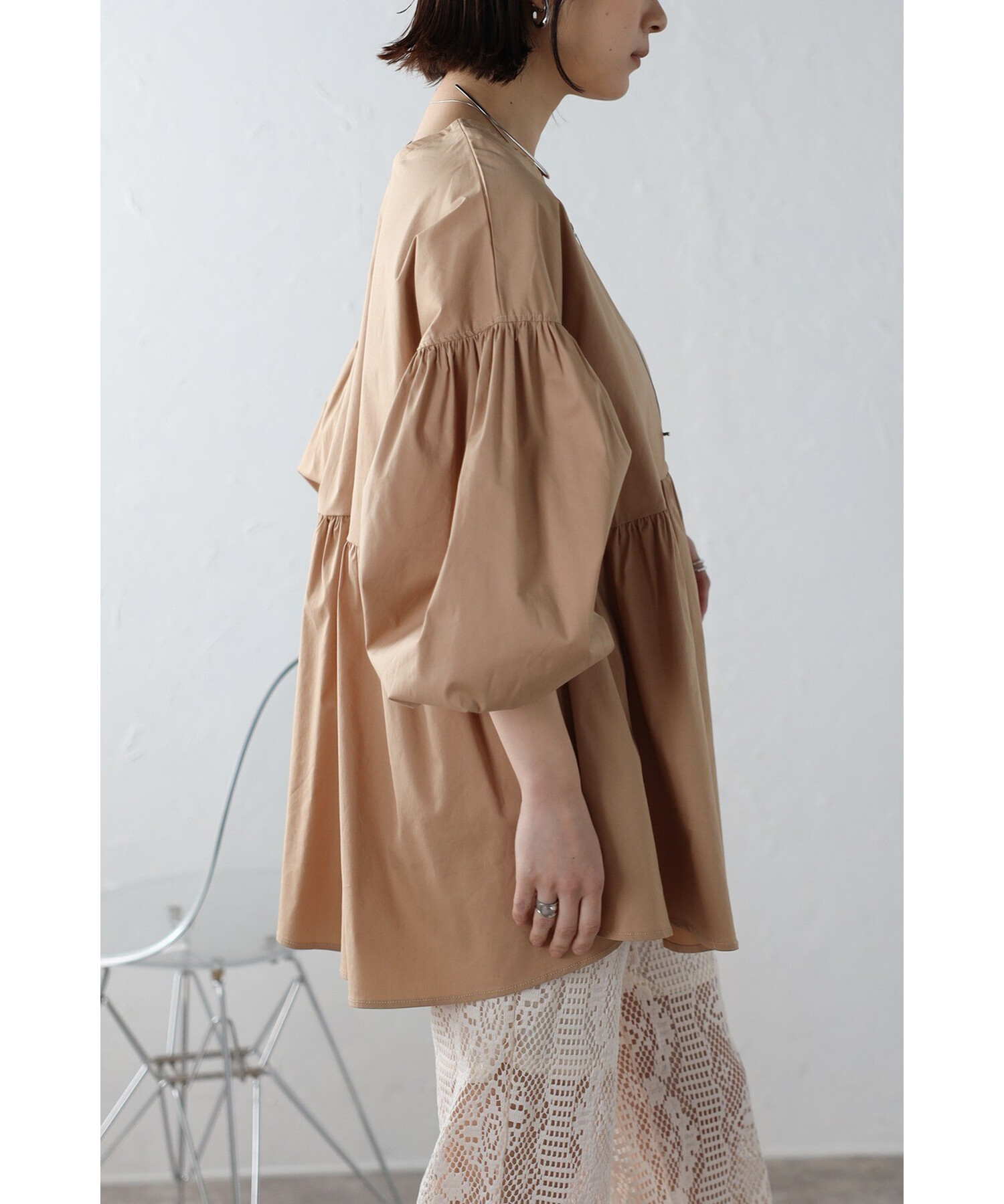 今季らしいボリュームスリーブがポイントのティアードブラウス。