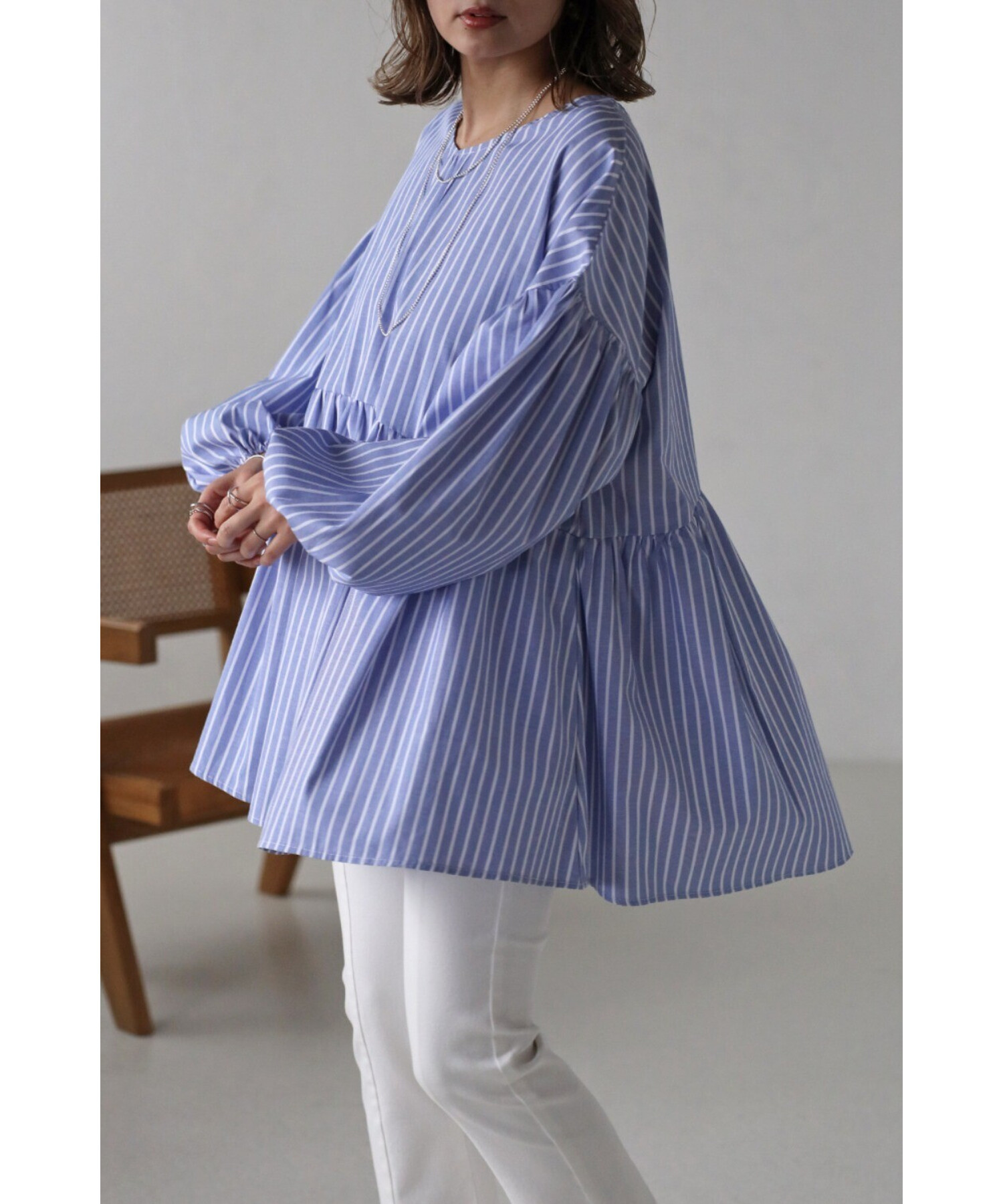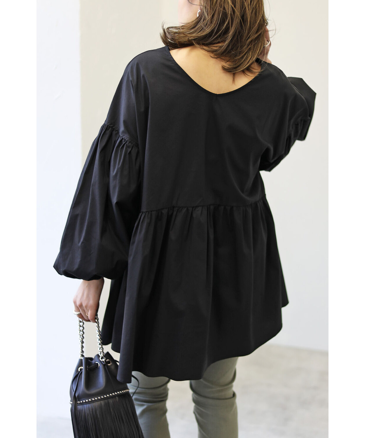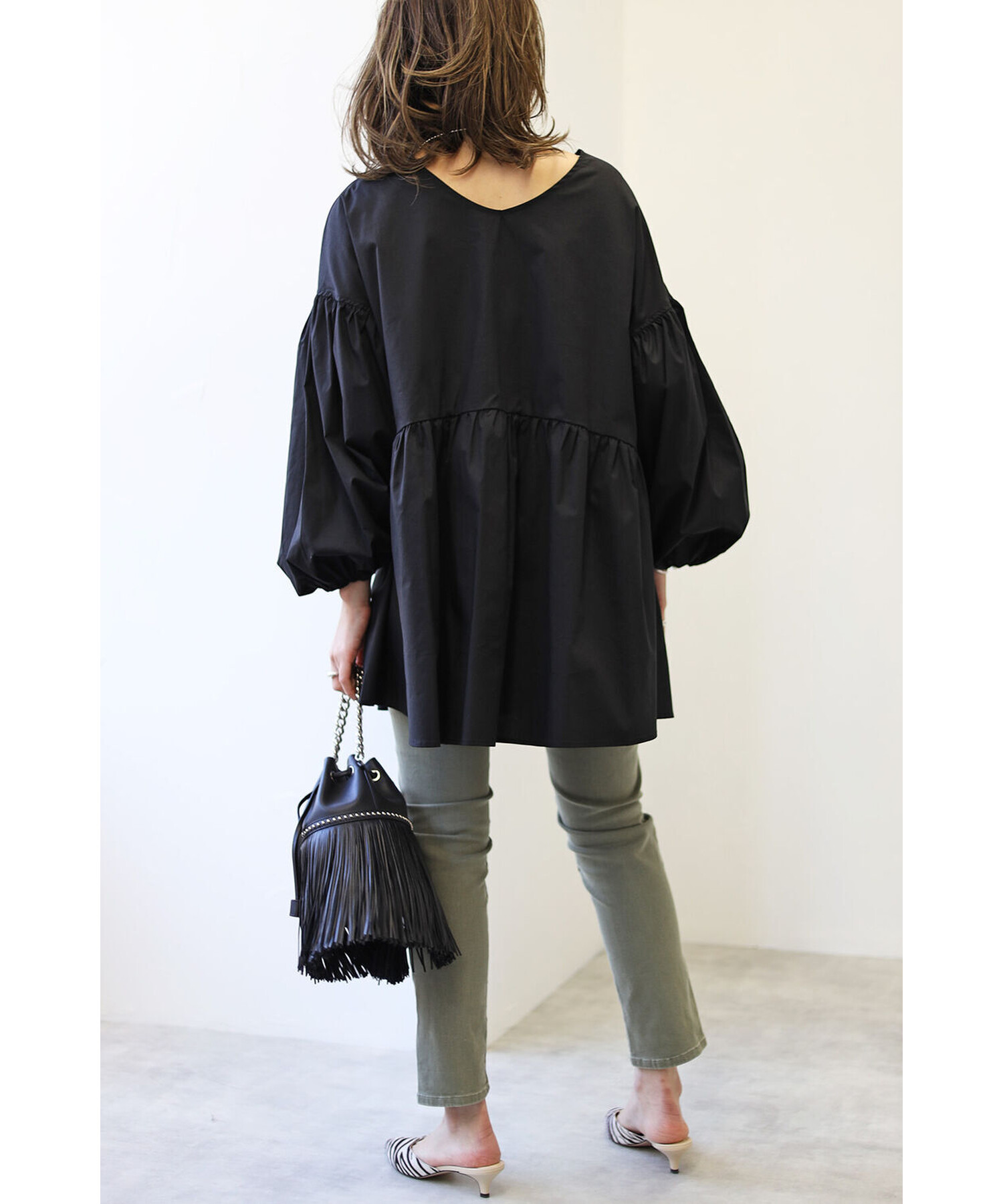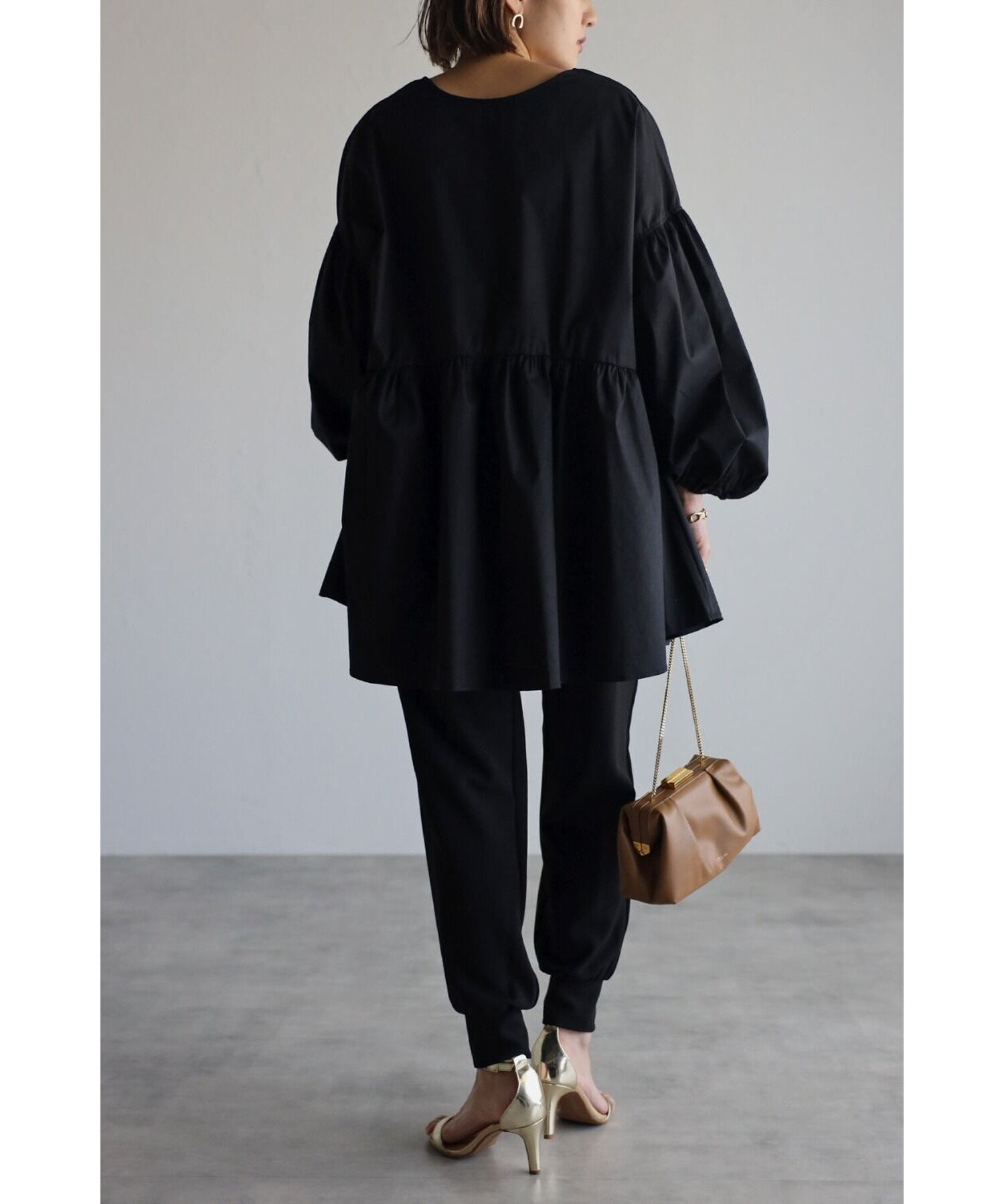 今季らしいボリュームスリーブがポイントのティアードブラウス。