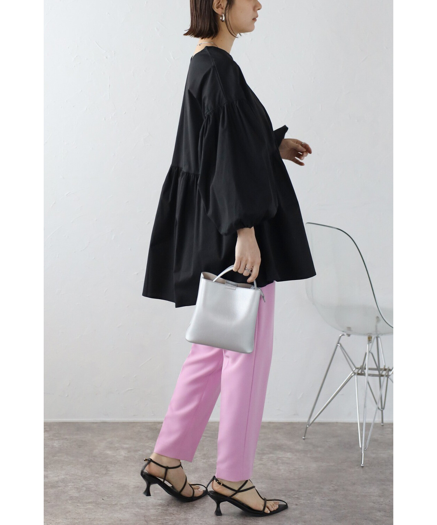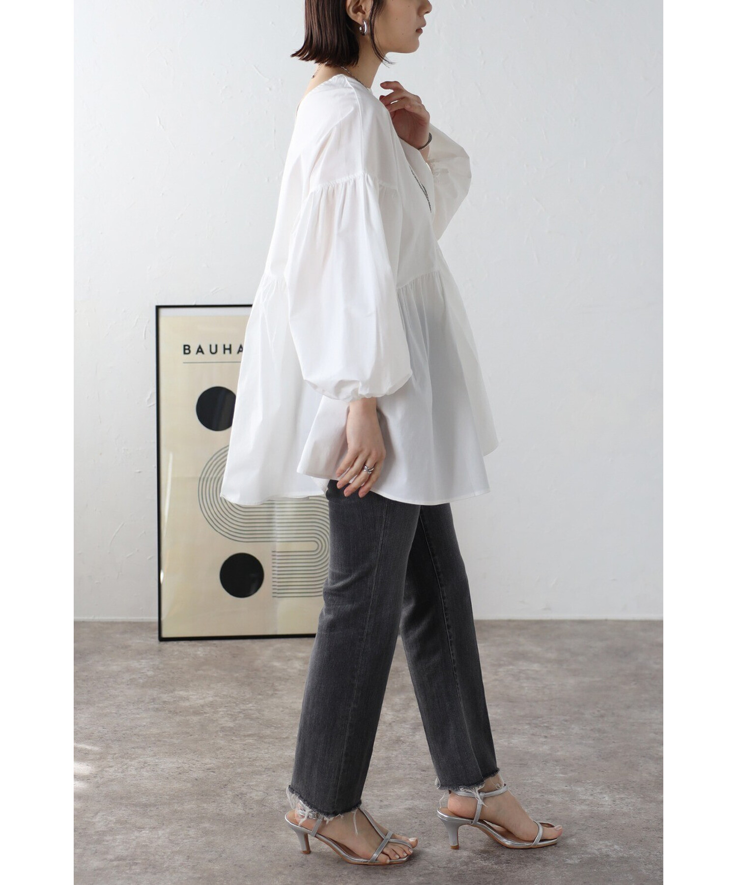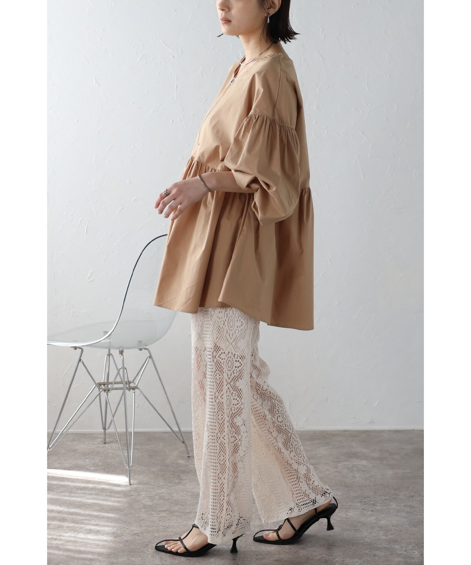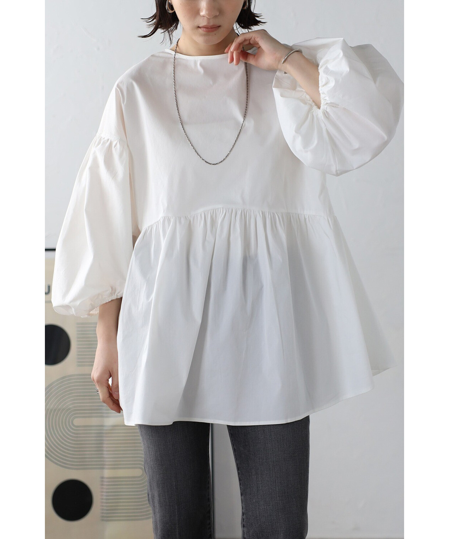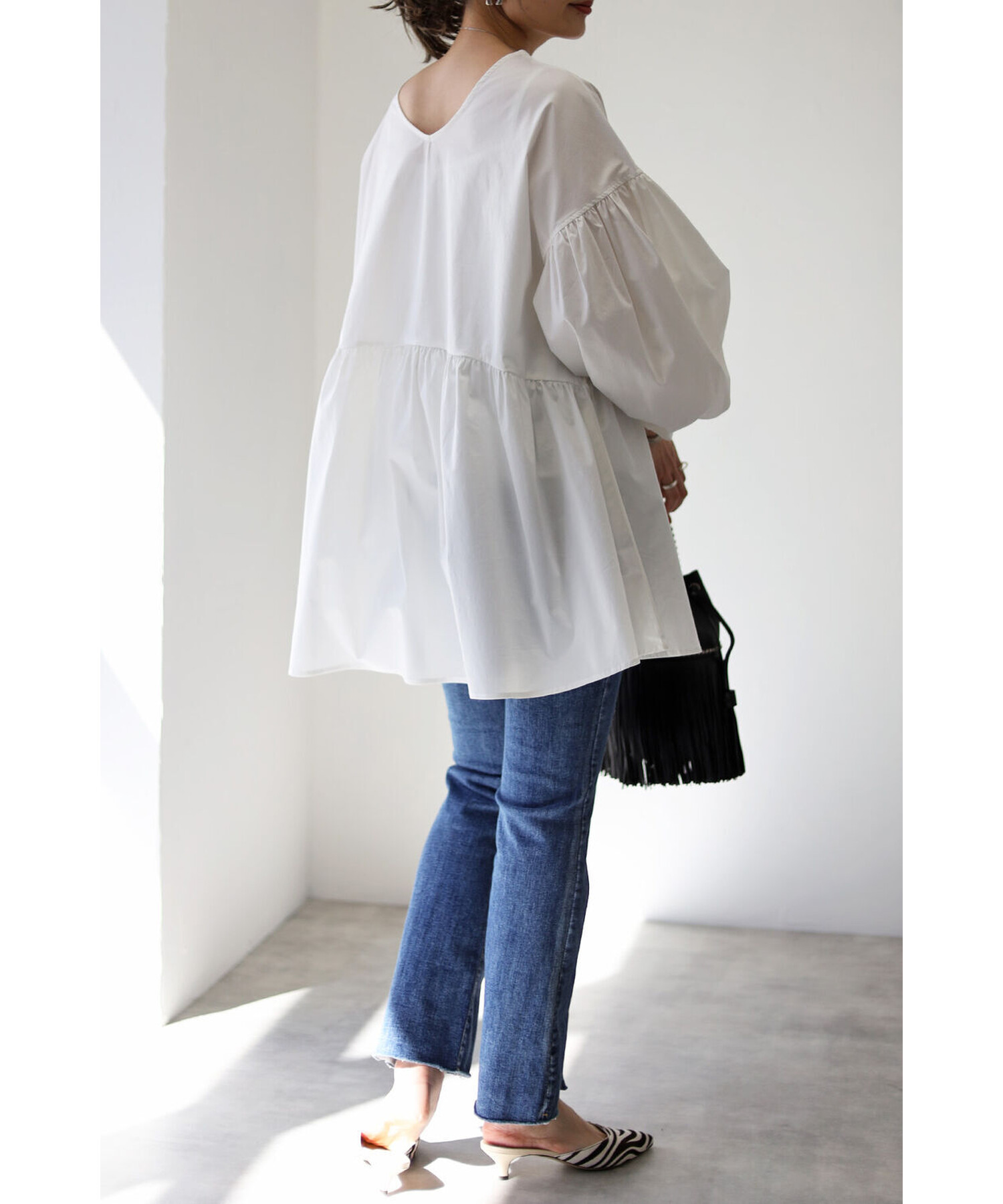 今季らしいボリュームスリーブがポイントのティアードブラウス。