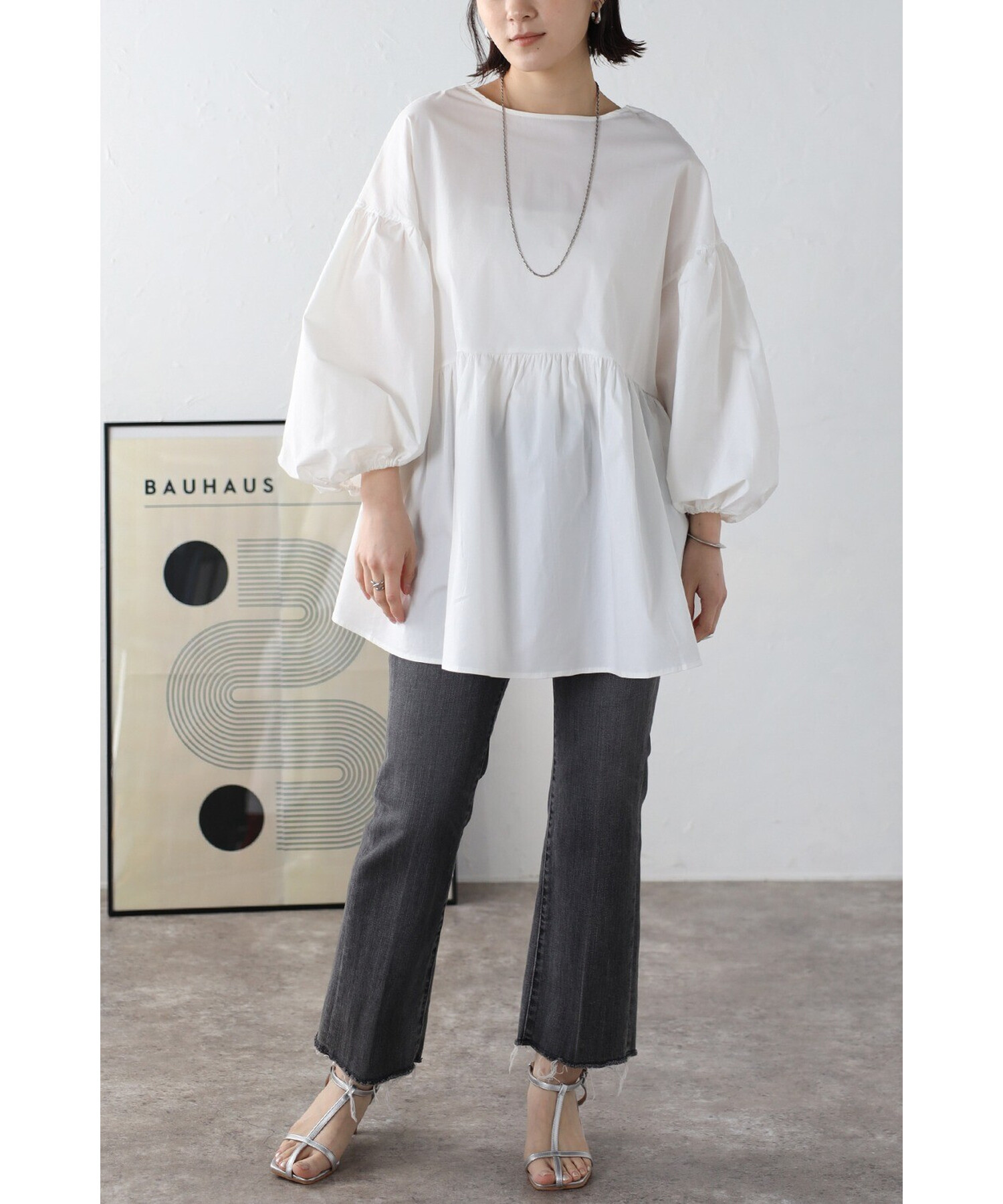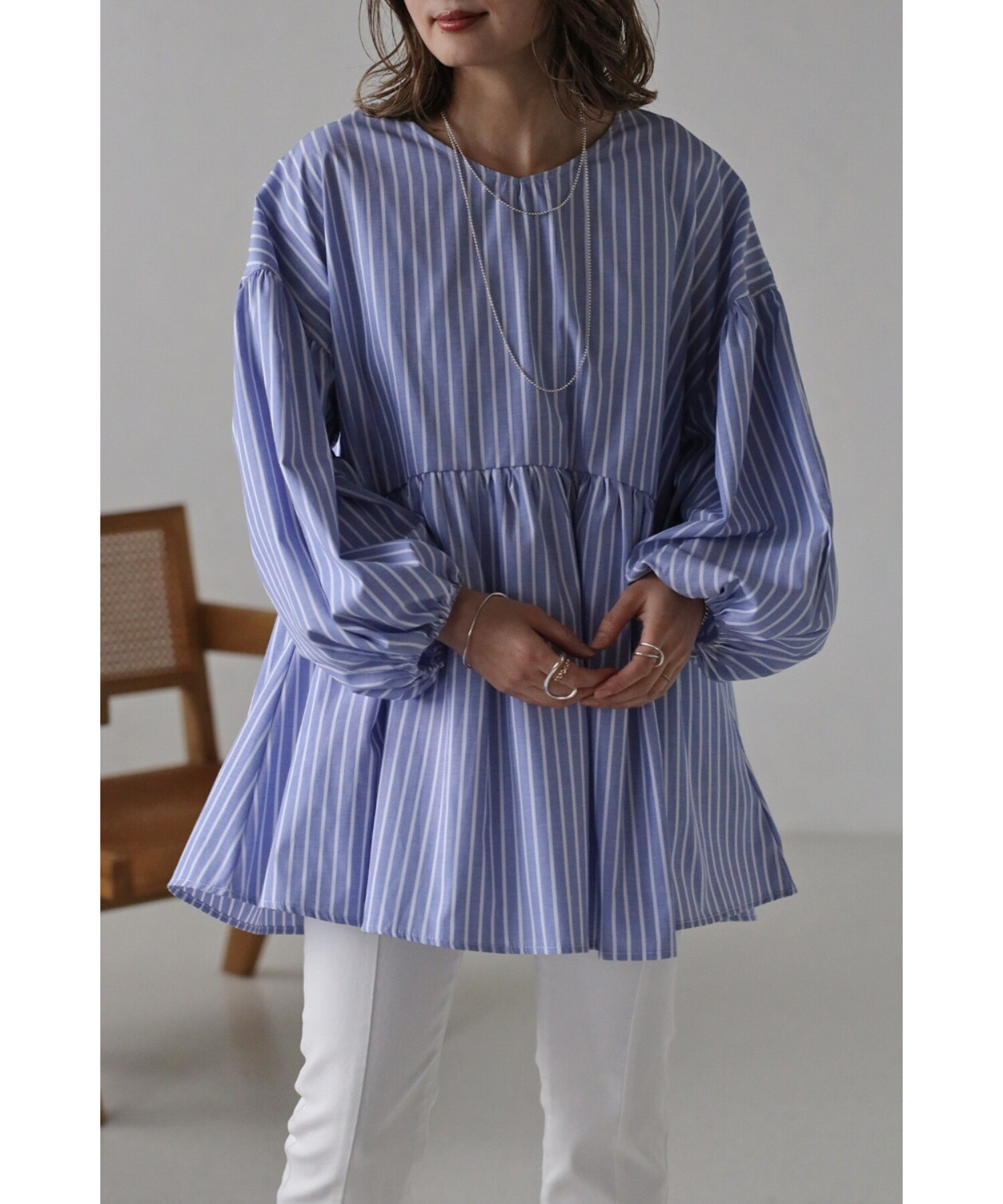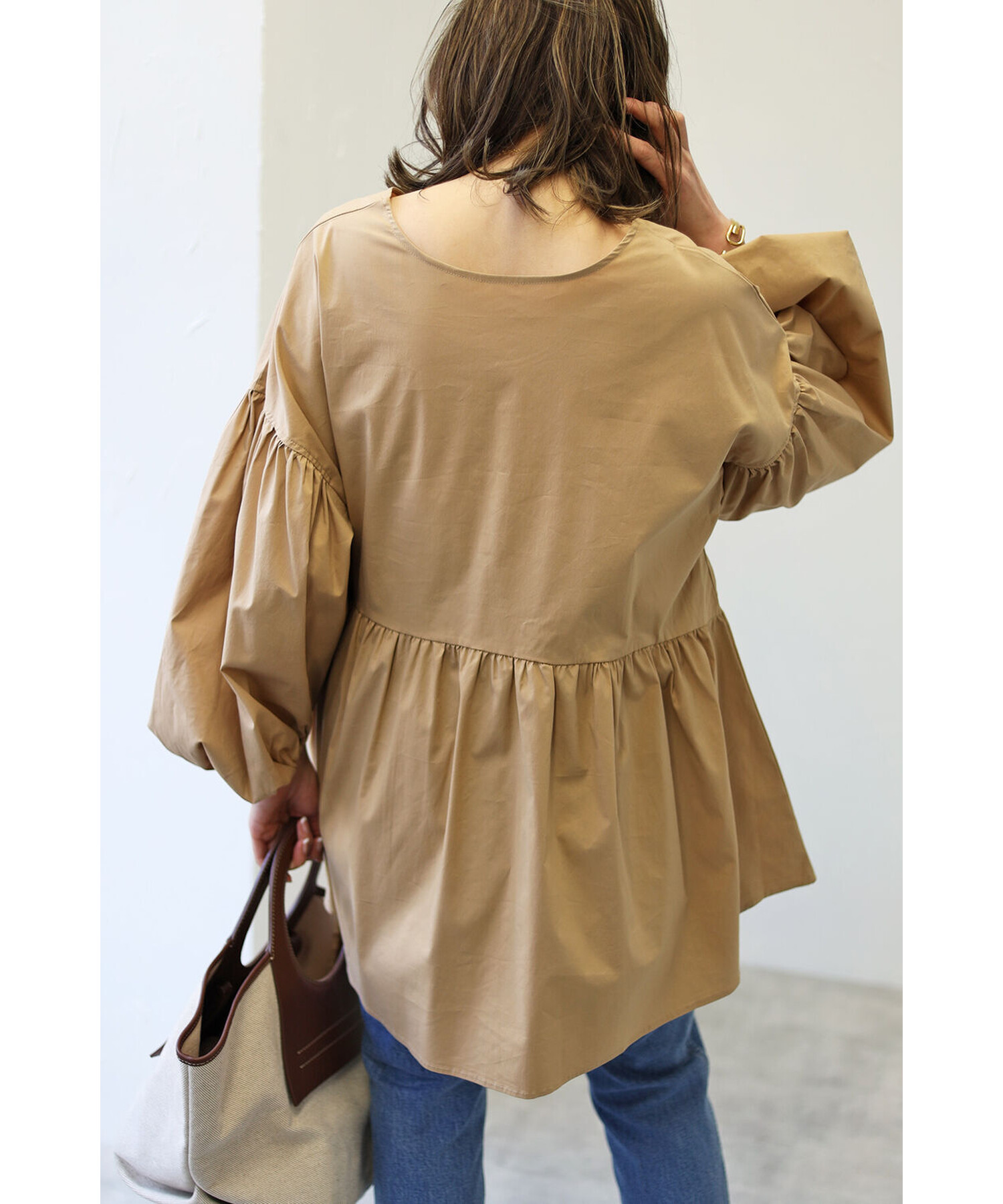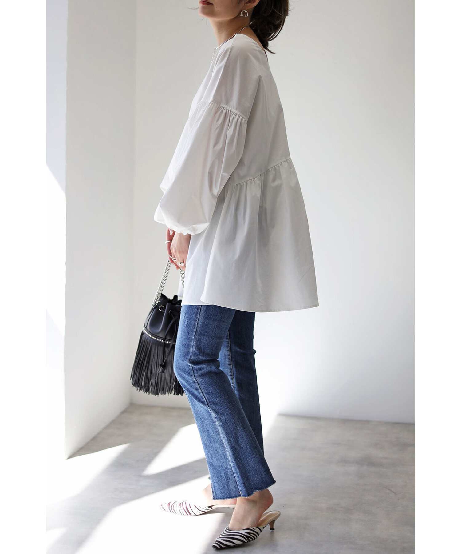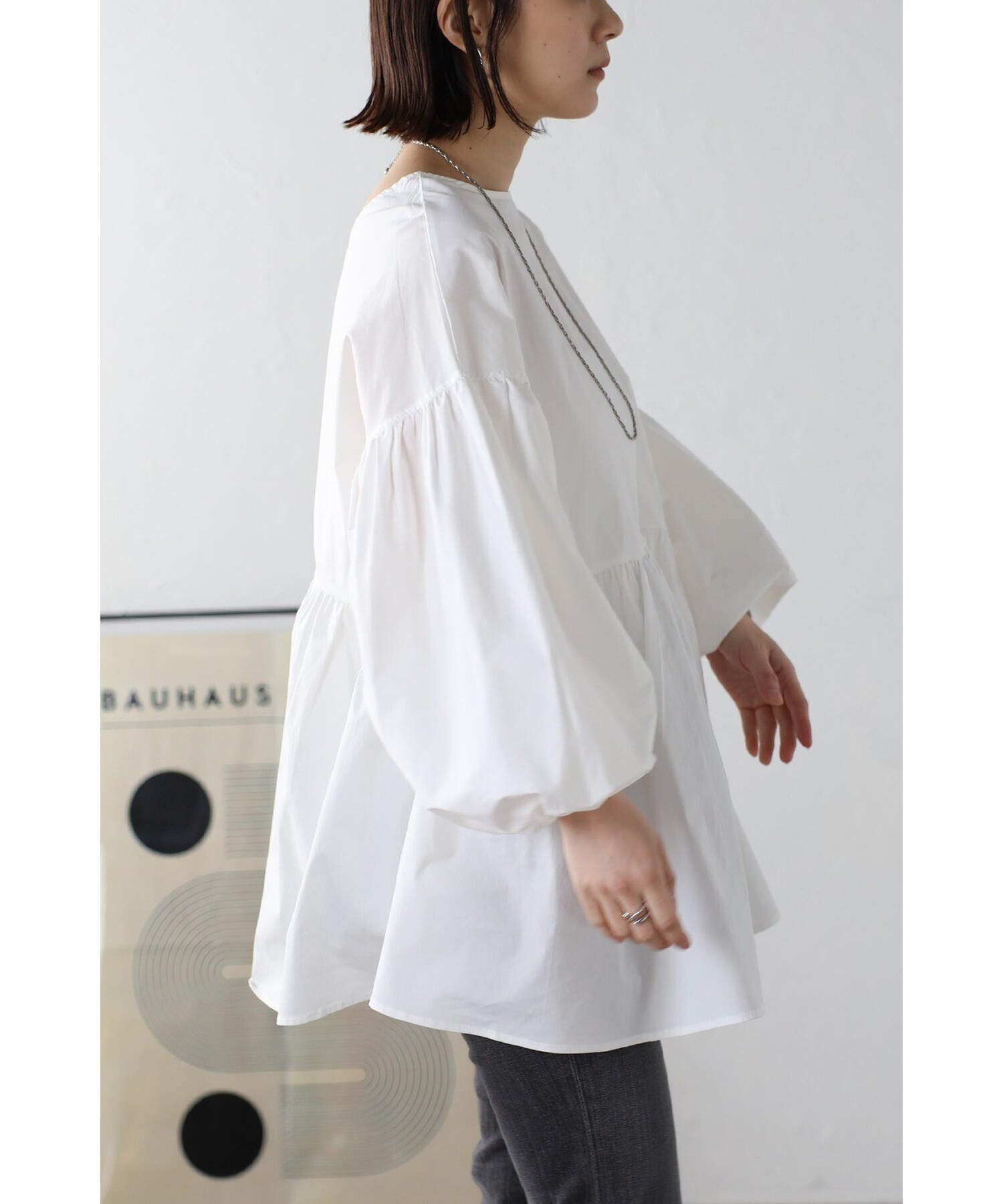 今季らしいボリュームスリーブがポイントのティアードブラウス。