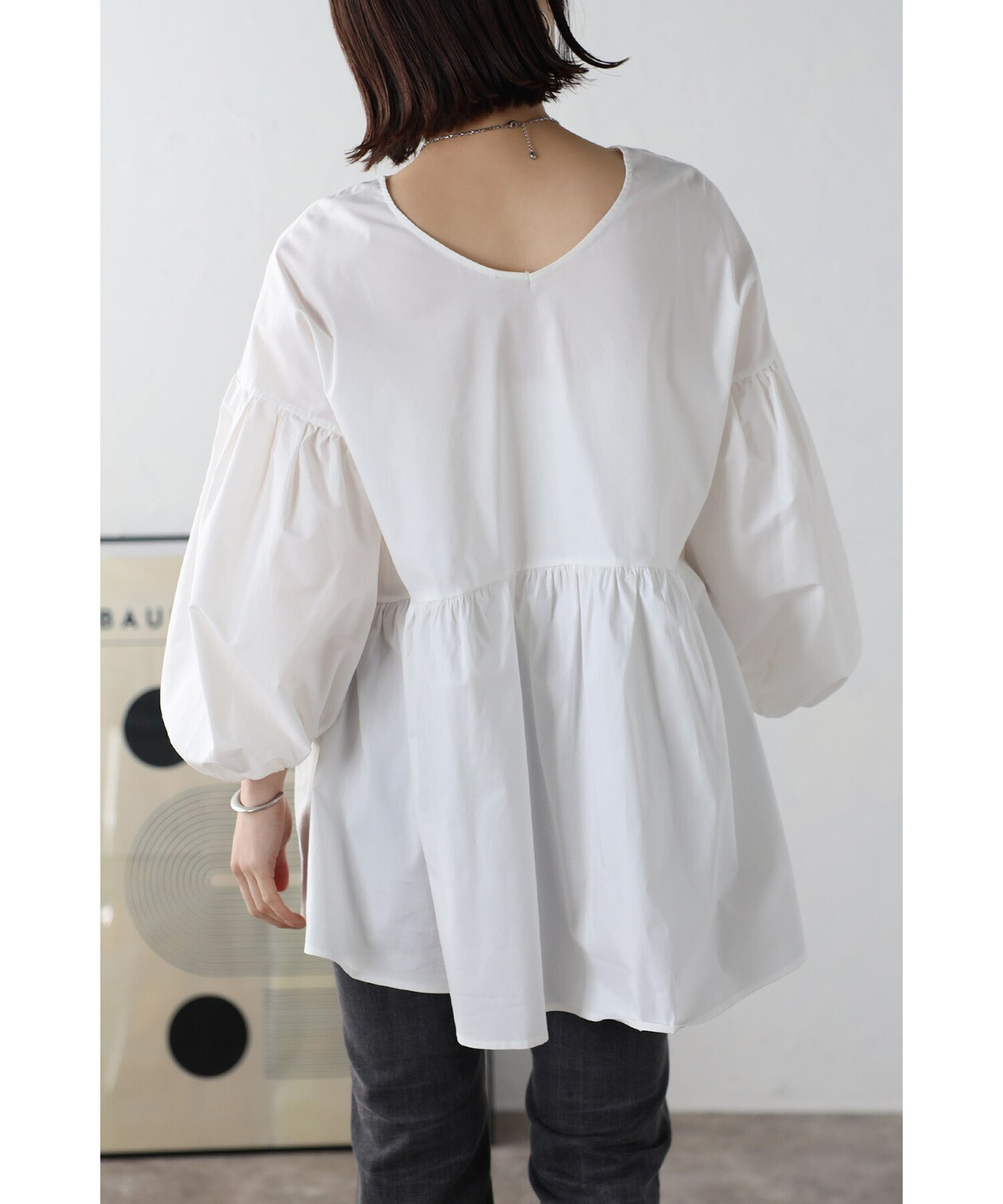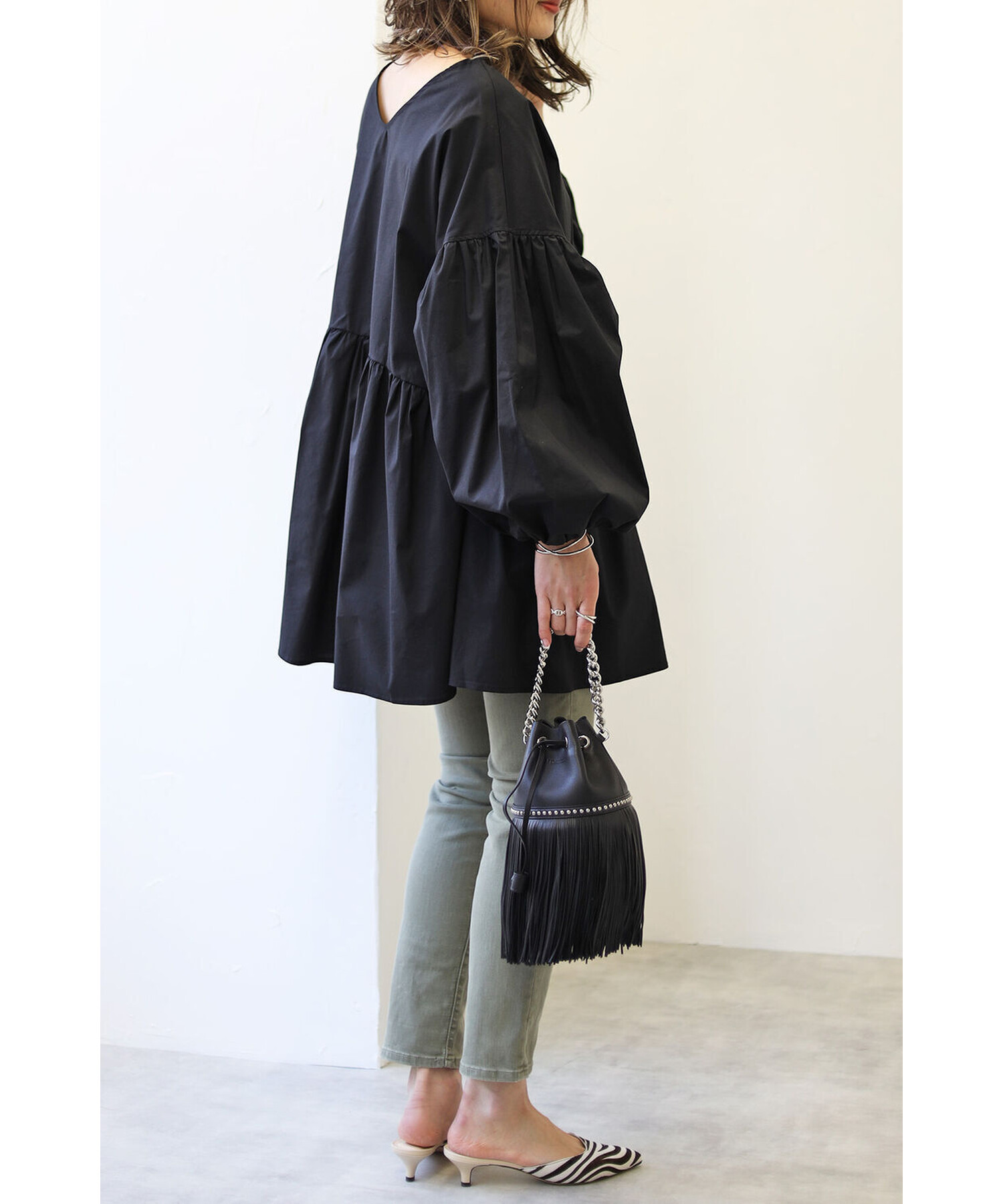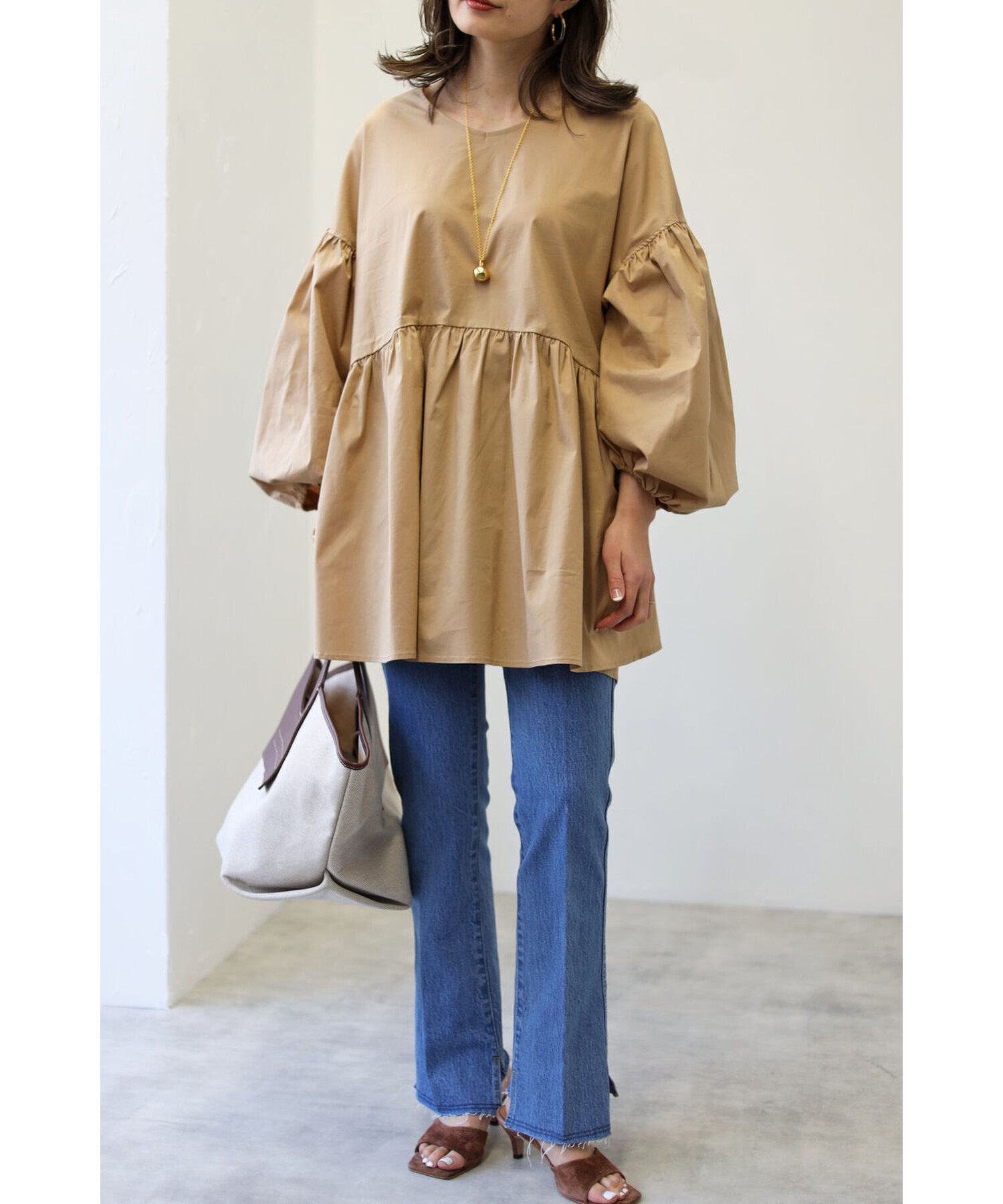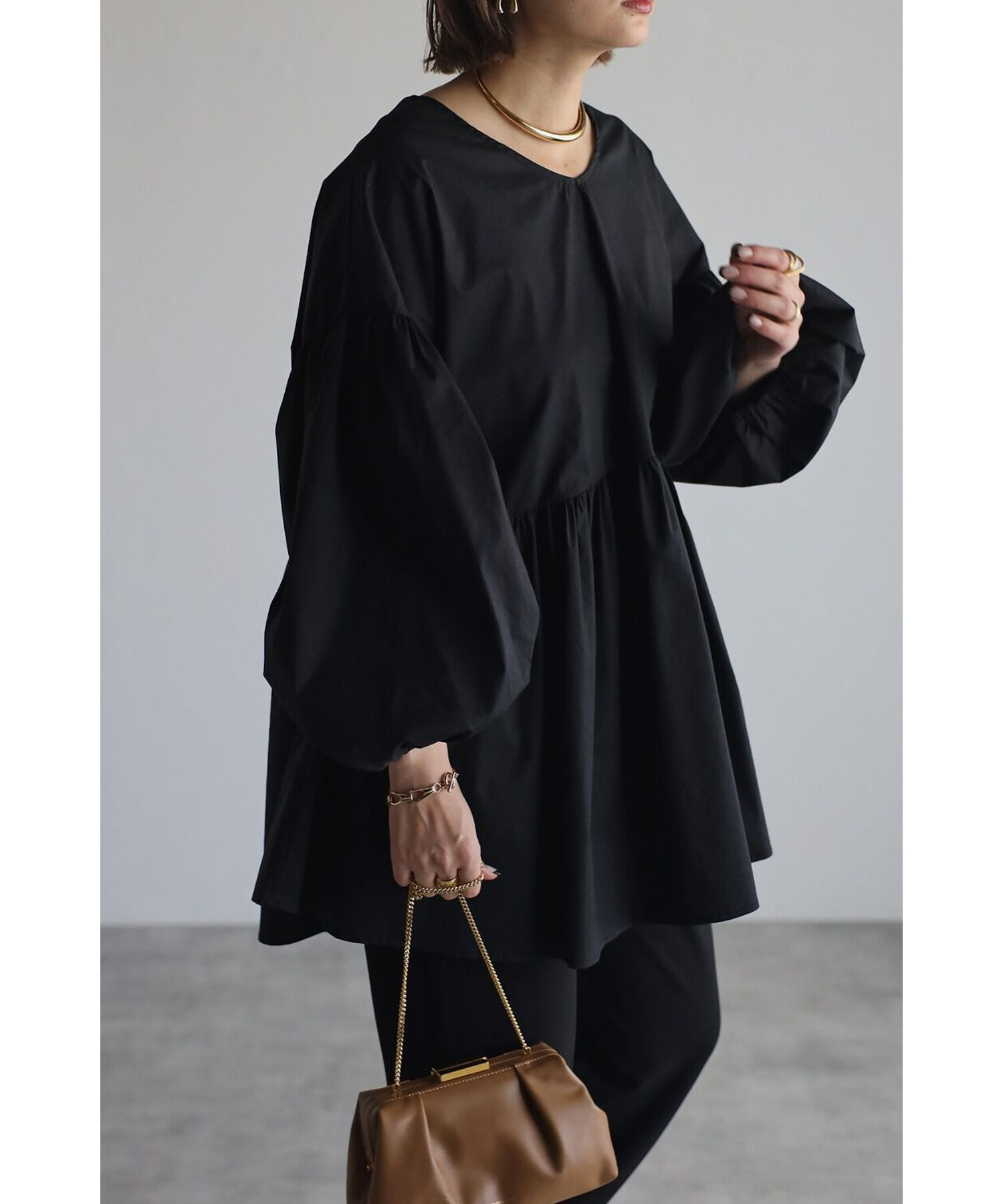 今季らしいボリュームスリーブがポイントのティアードブラウス。