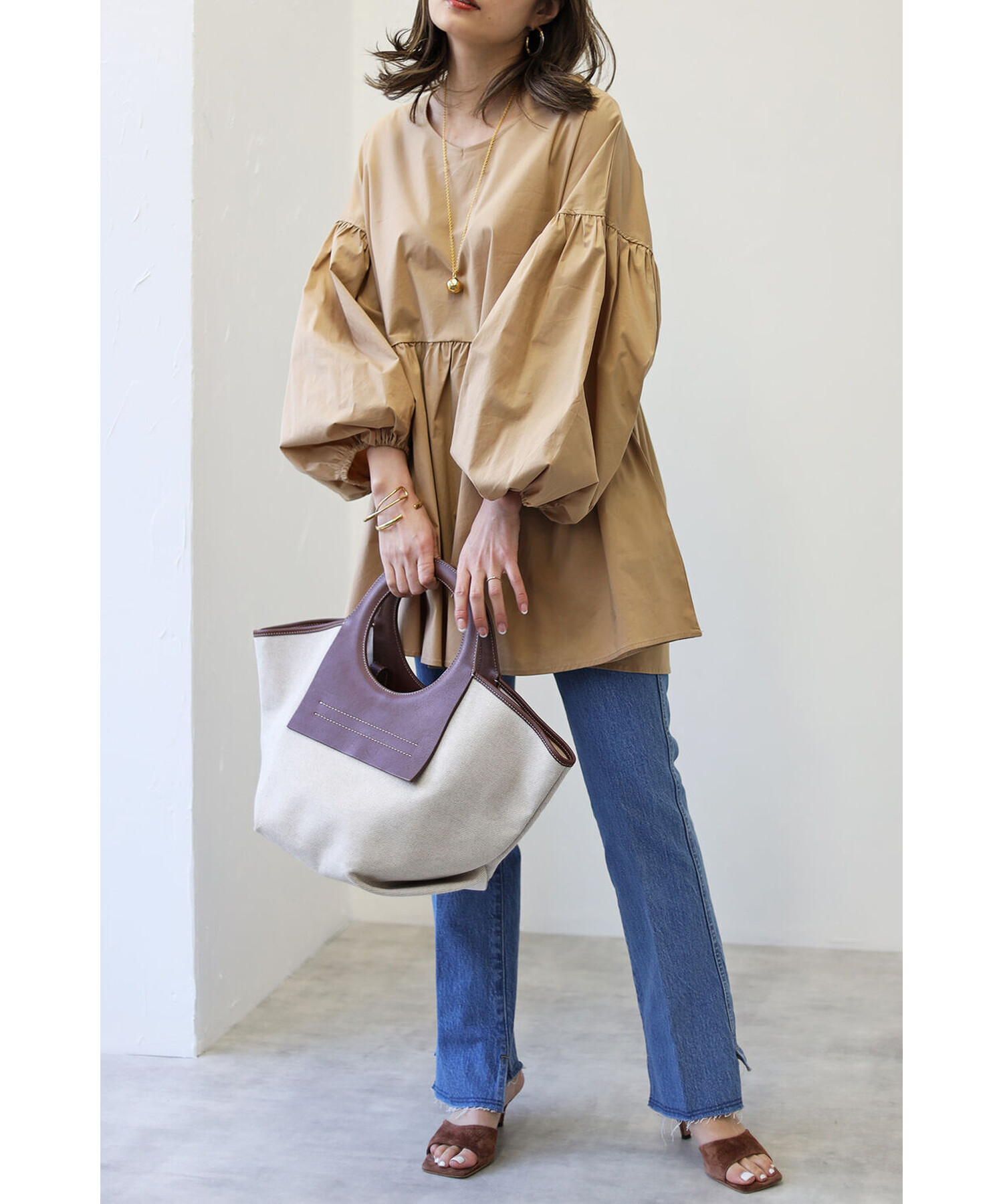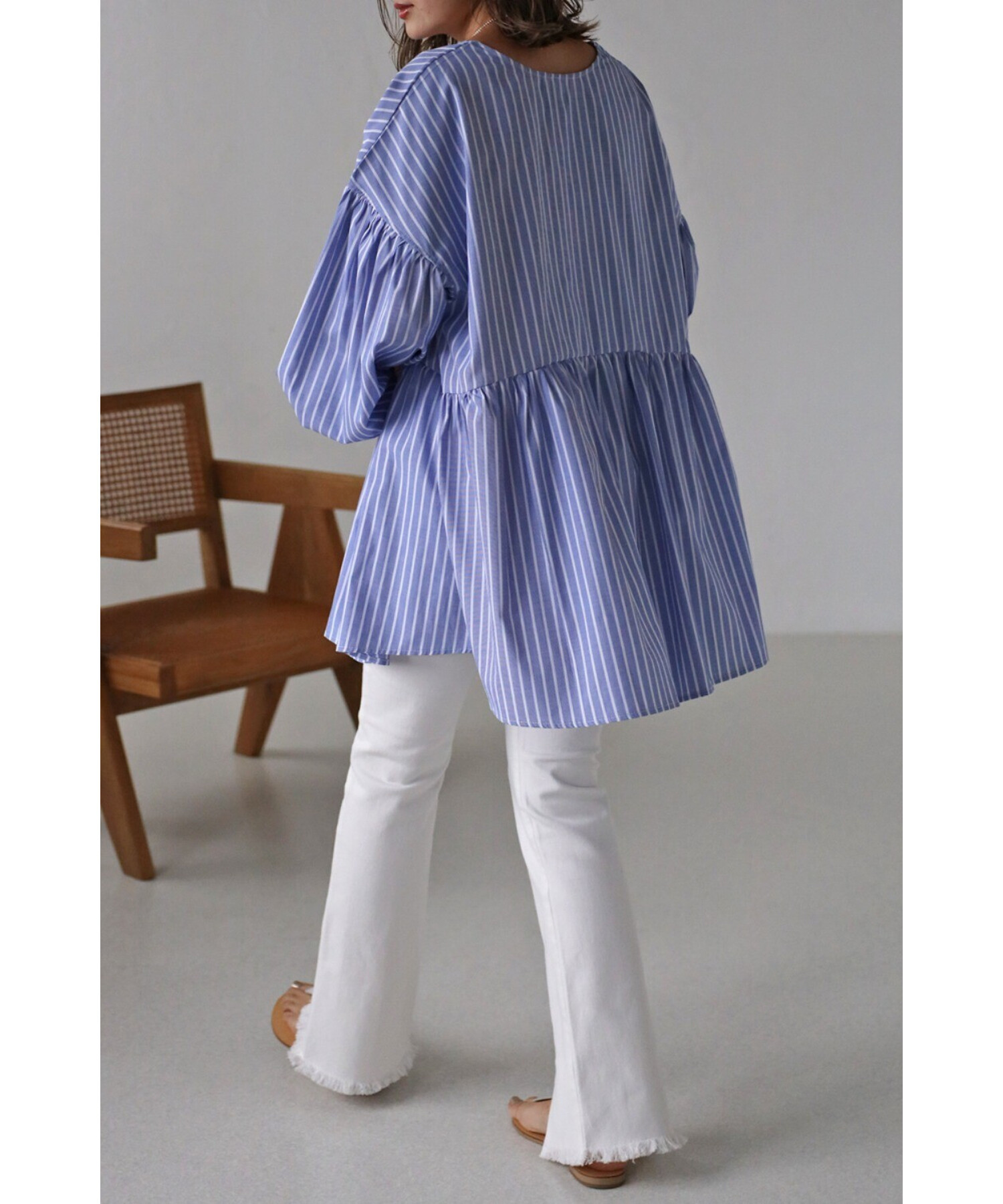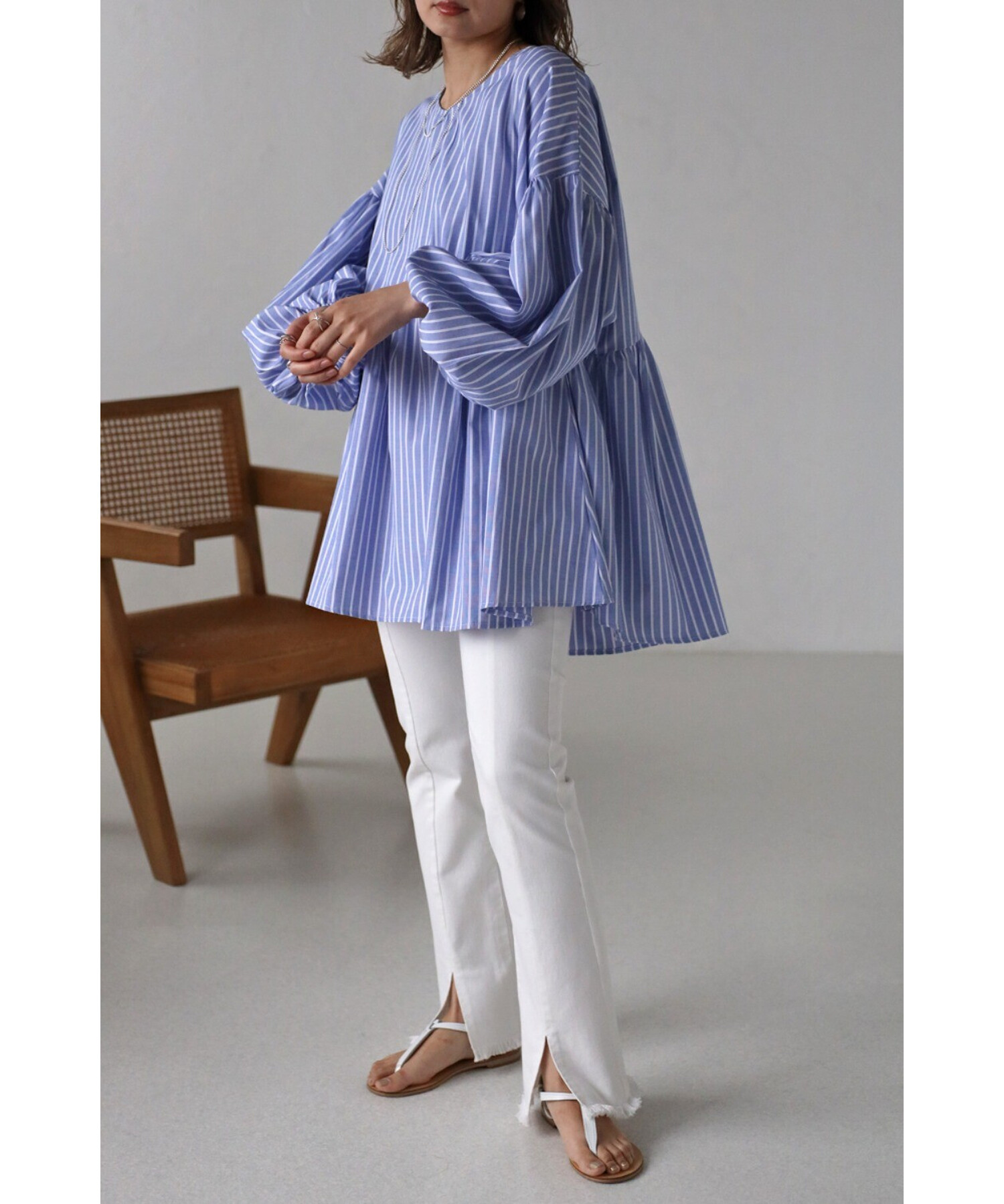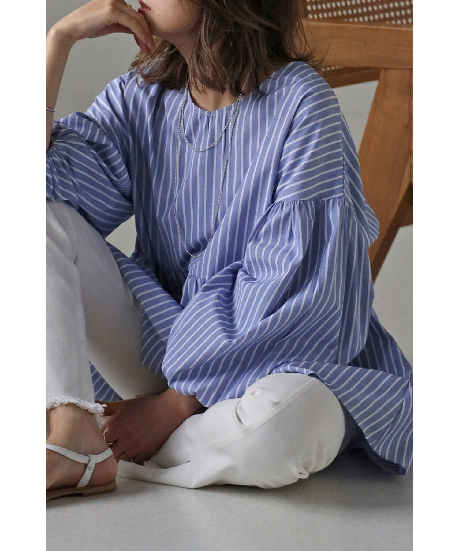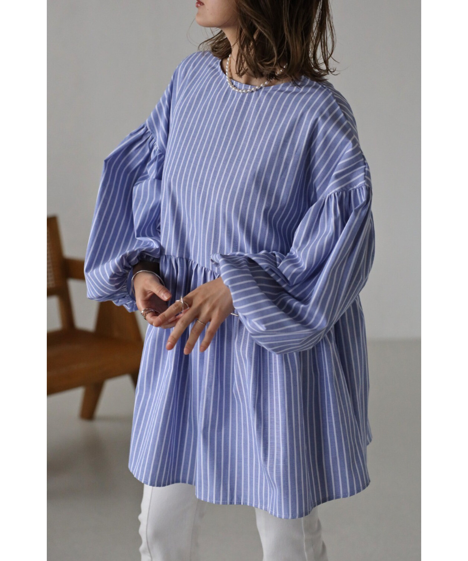 今季らしいボリュームスリーブがポイントのティアードブラウス。