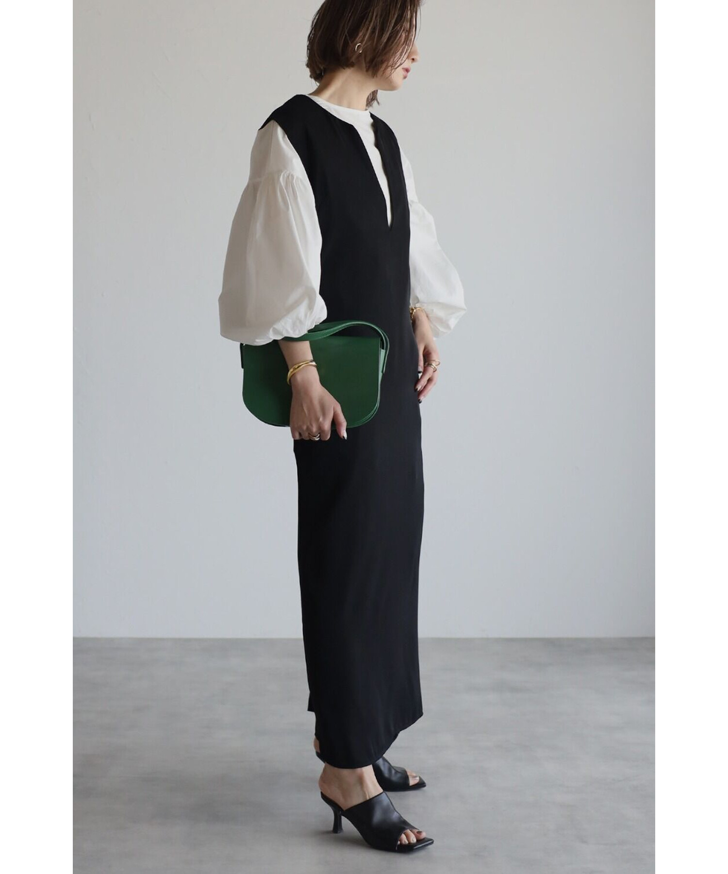 AIRI【163cm】ホワイト、ベージュ、ブラック着用