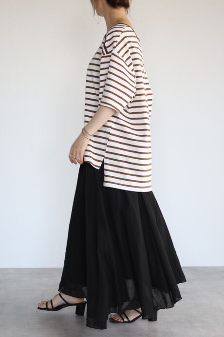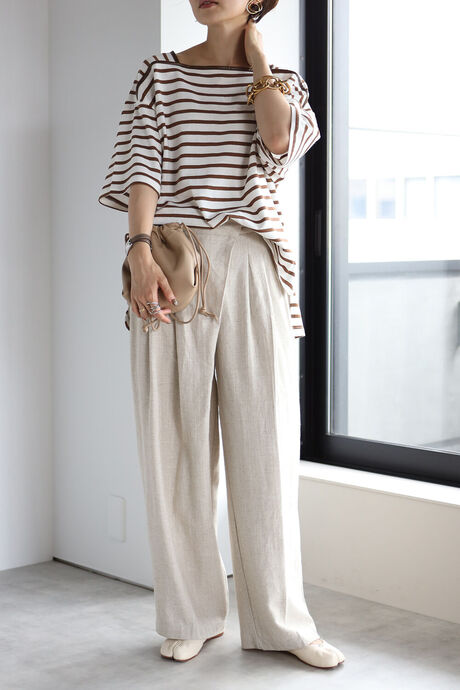 リネンパンツやスカートを合わせてナチュラルにまとめたスタイルが◎