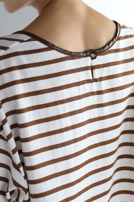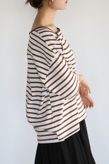 パイピング仕様が施され、凝ったデザインなので人と被らないボーダートップスです。