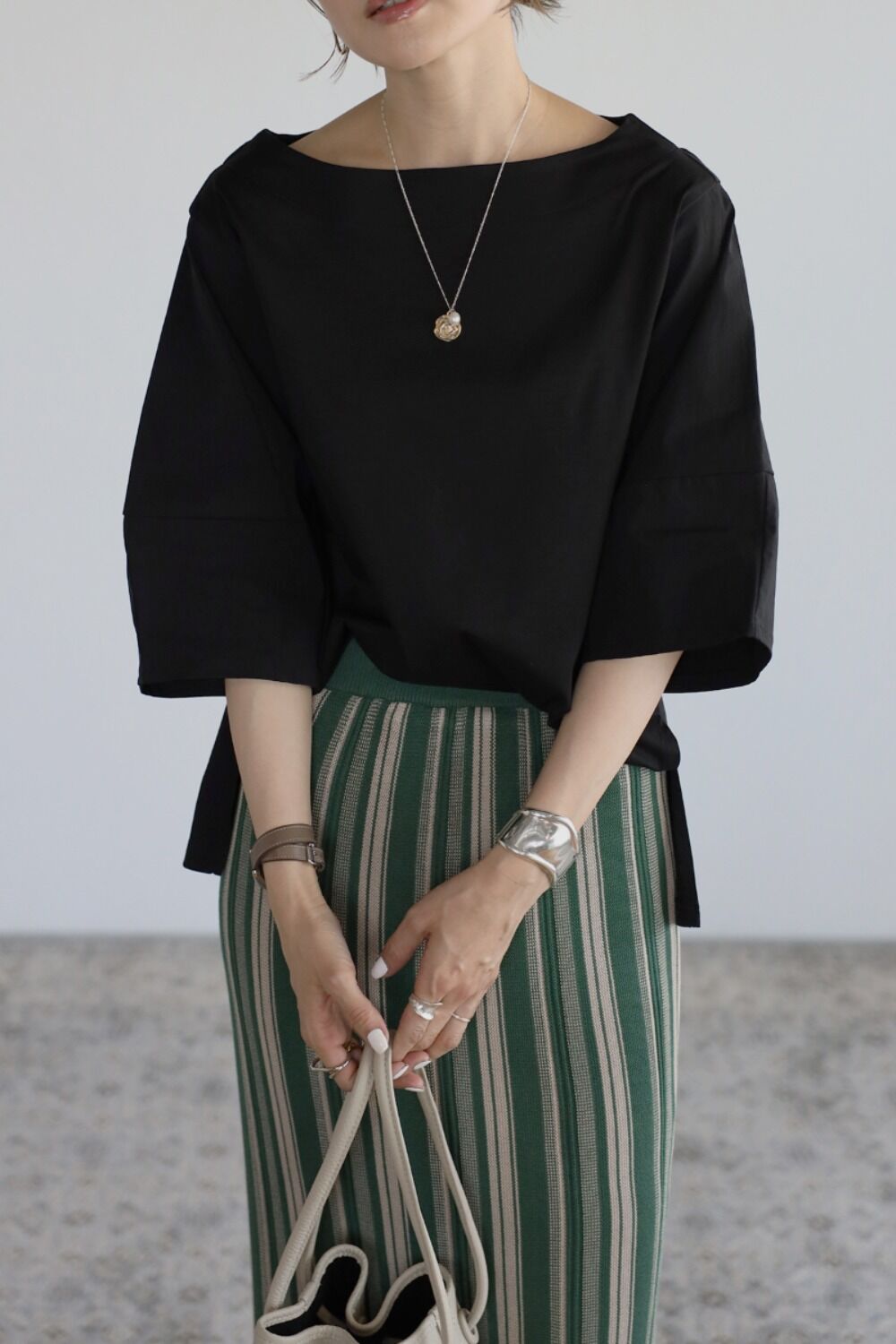 Noriko【165cm】オフホワイト、ブラック着用