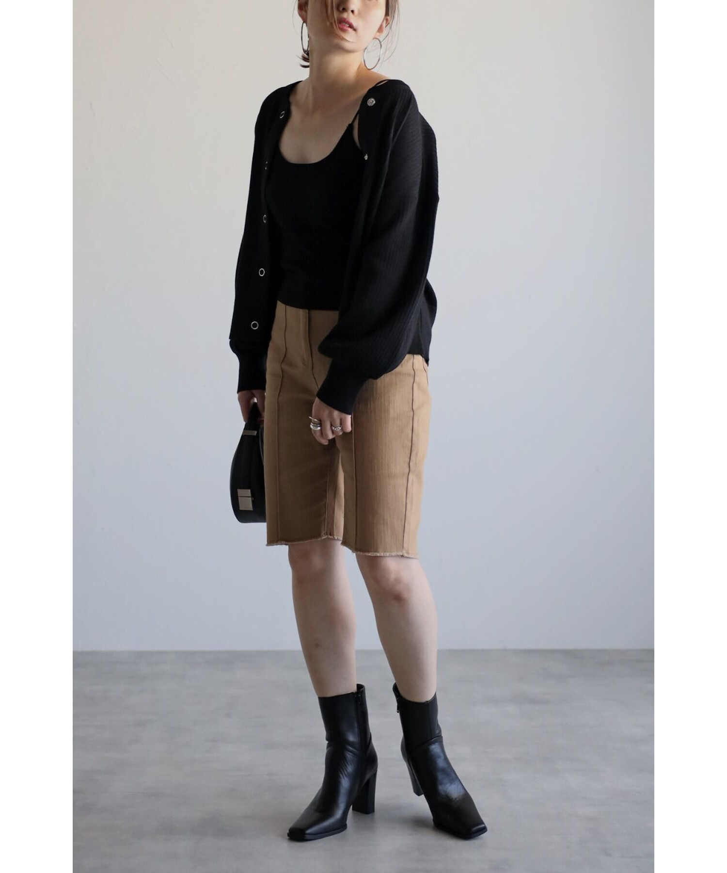 裾の切りっぱなしデザインがカジュアルな印象を与えてくれます。