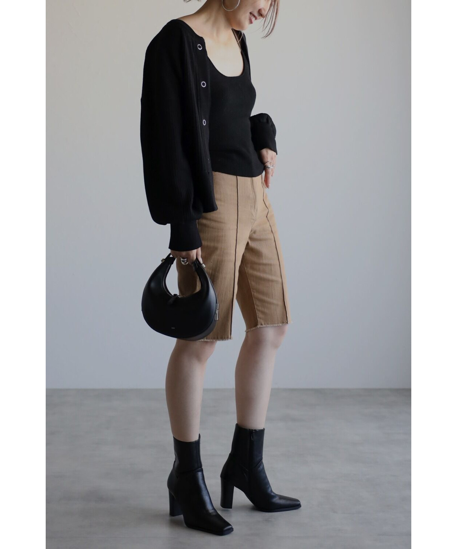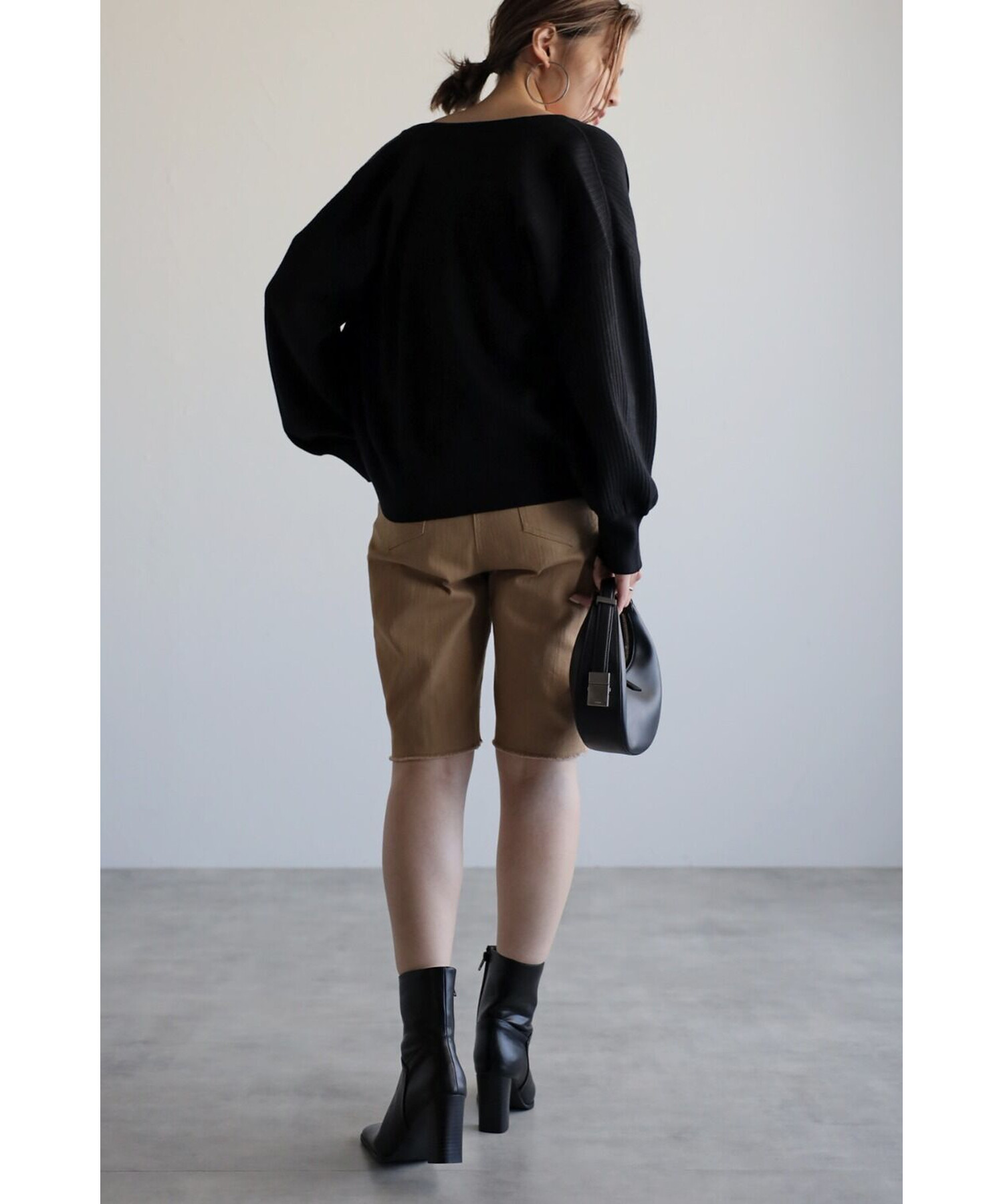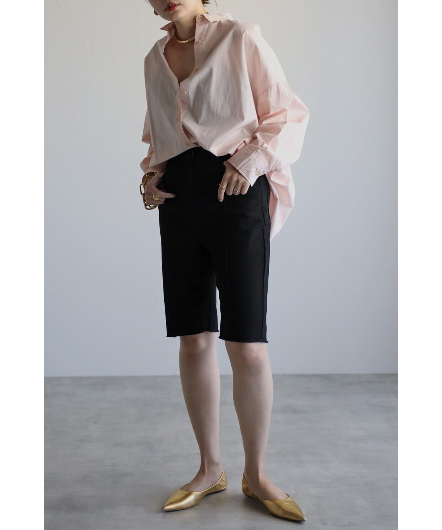 膝上ジャストの丈感が大人らしいハーフパンツ。