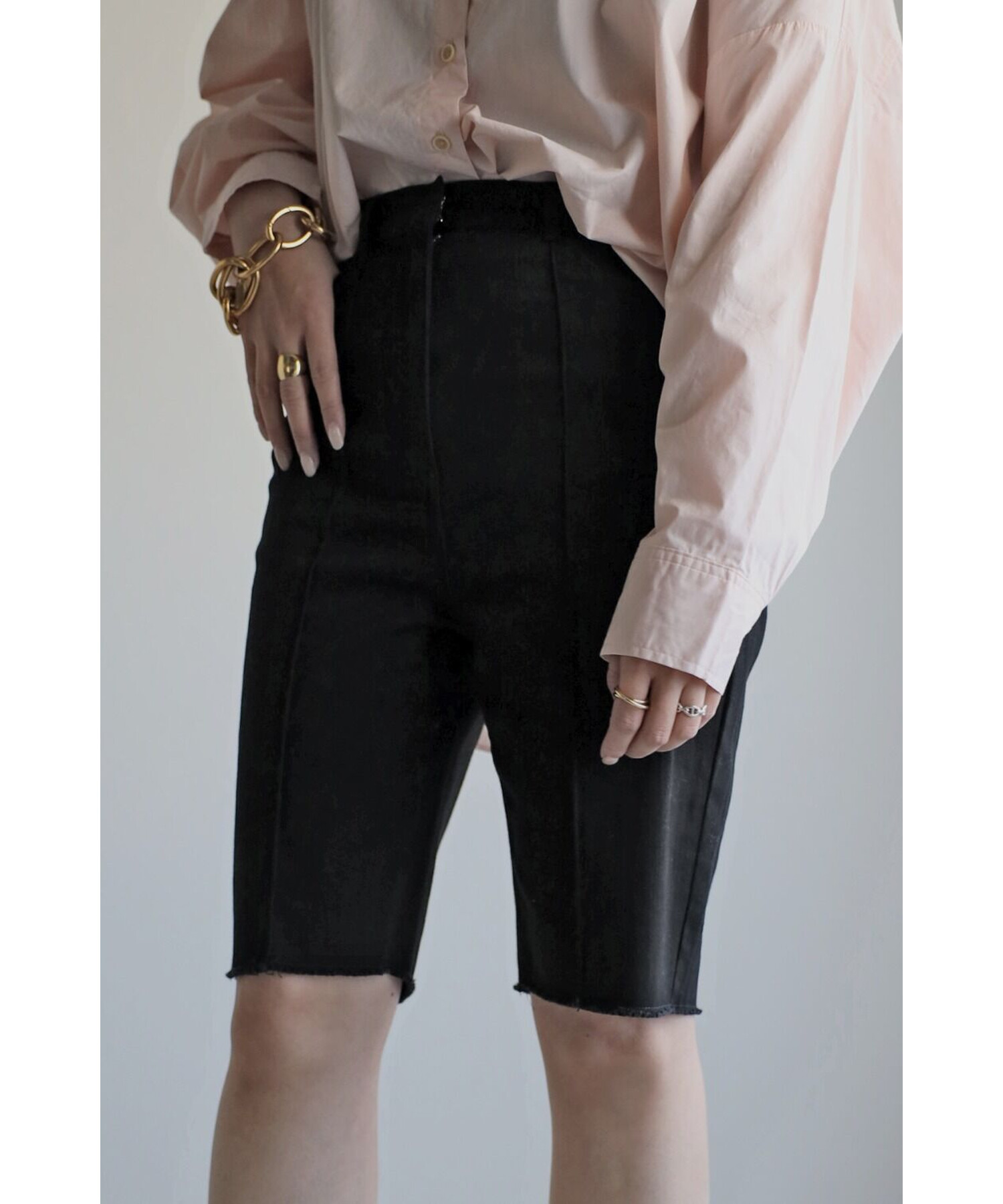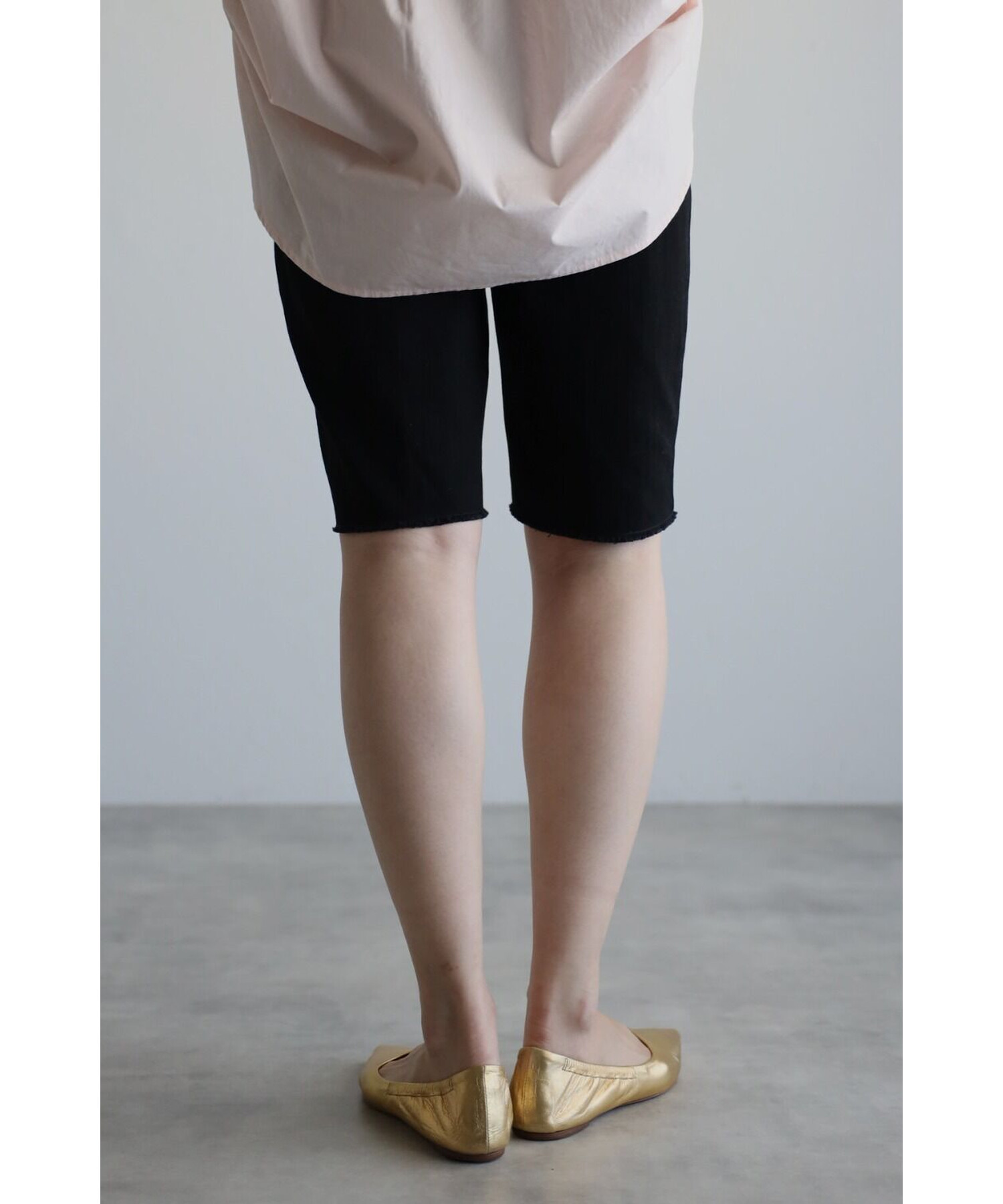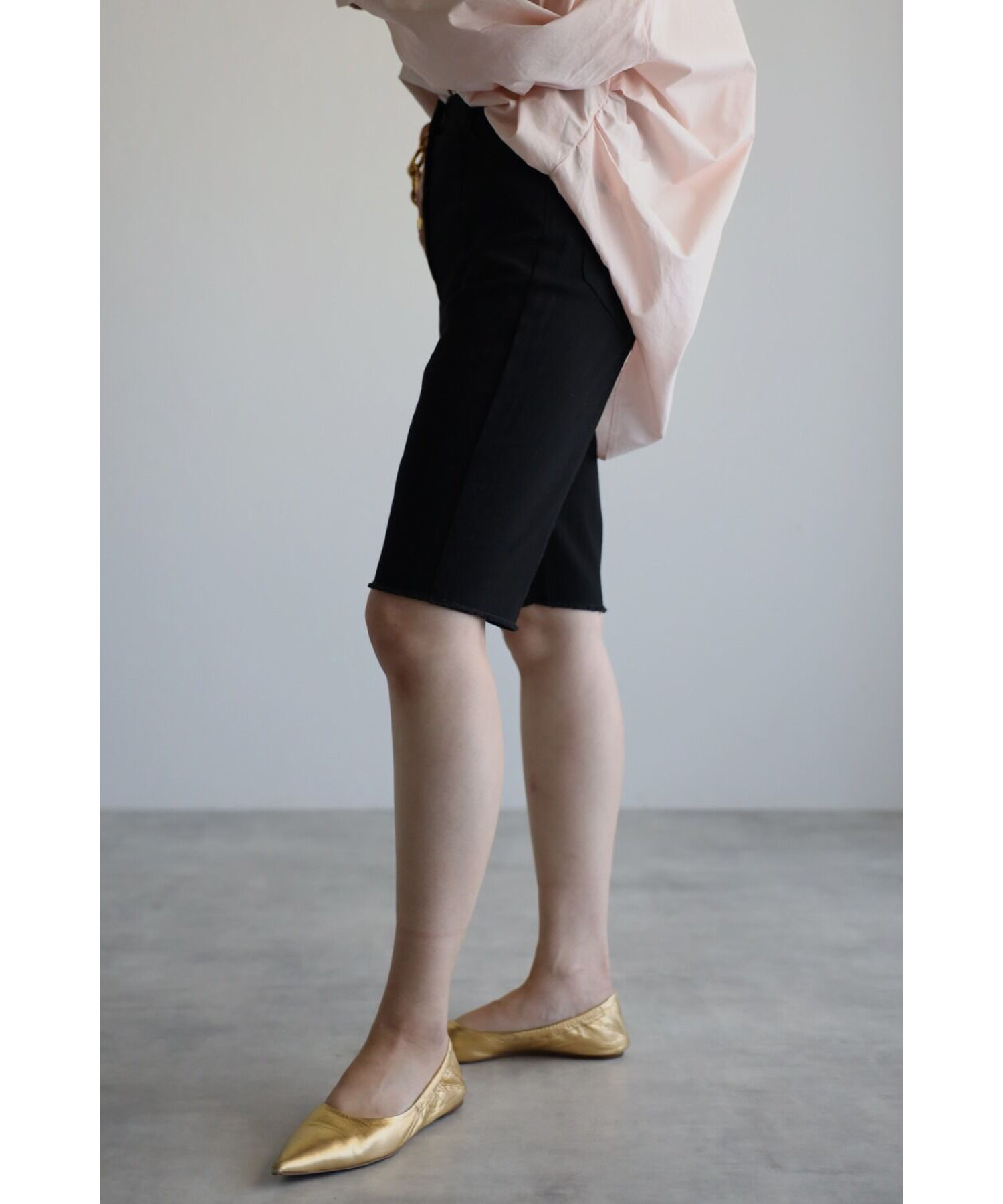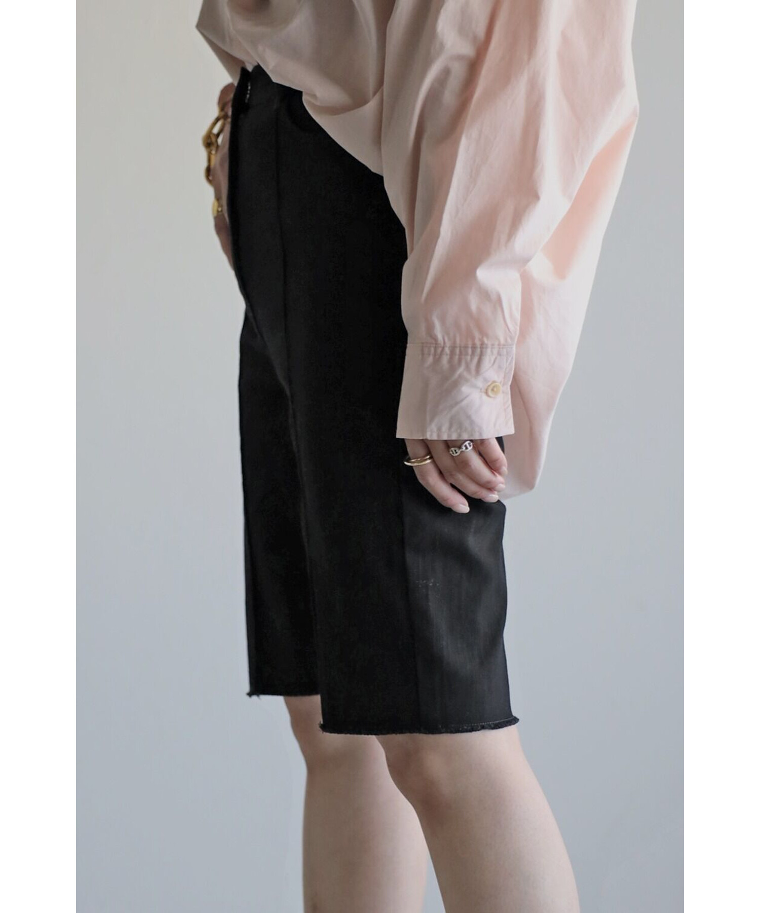 膝上ジャストの丈感が大人らしいハーフパンツ。