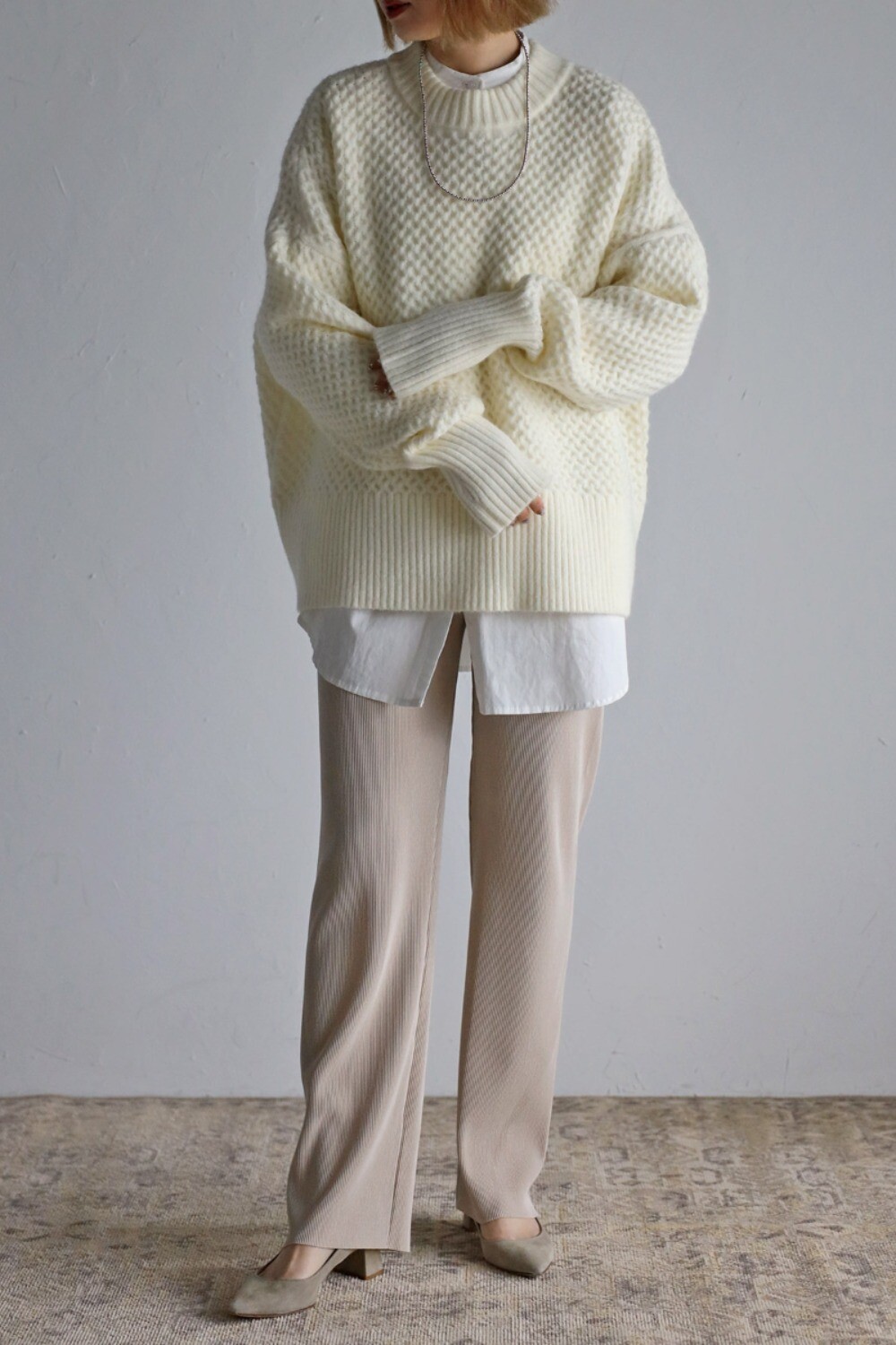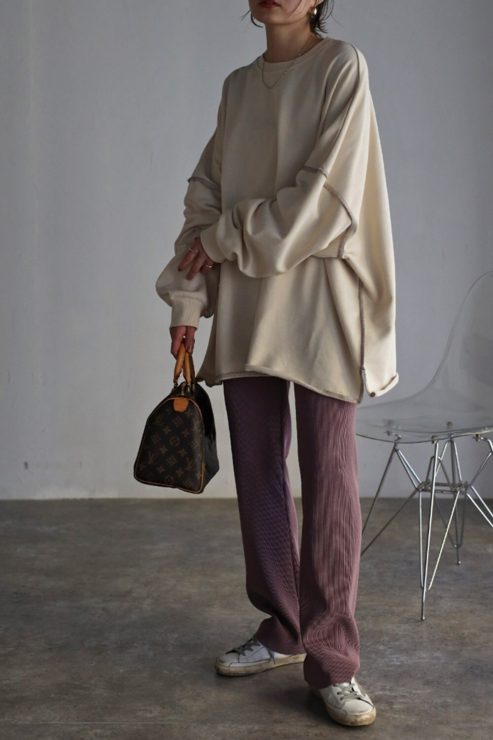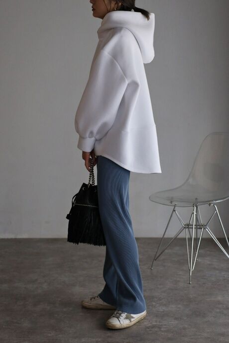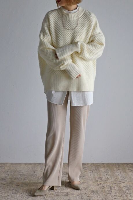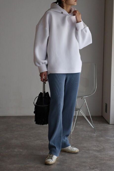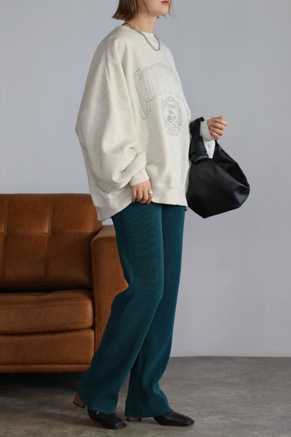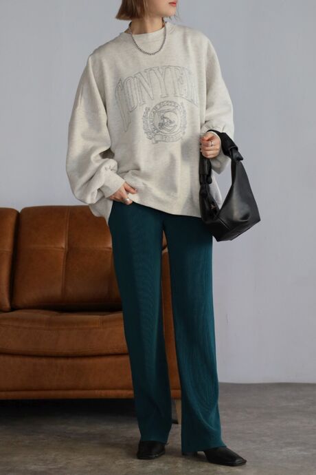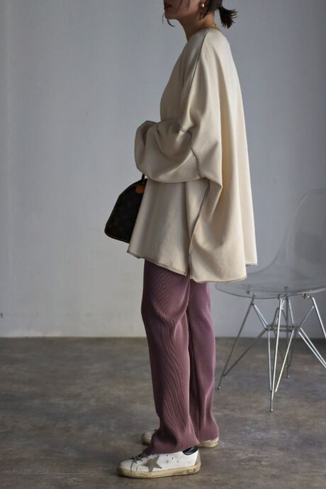 リラックス感があるパンツなので、ゆったりトップスとの相性抜群。