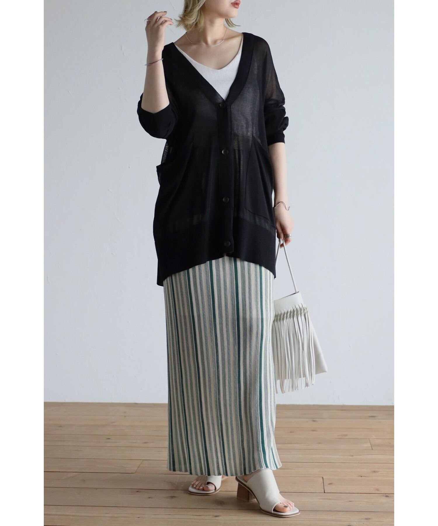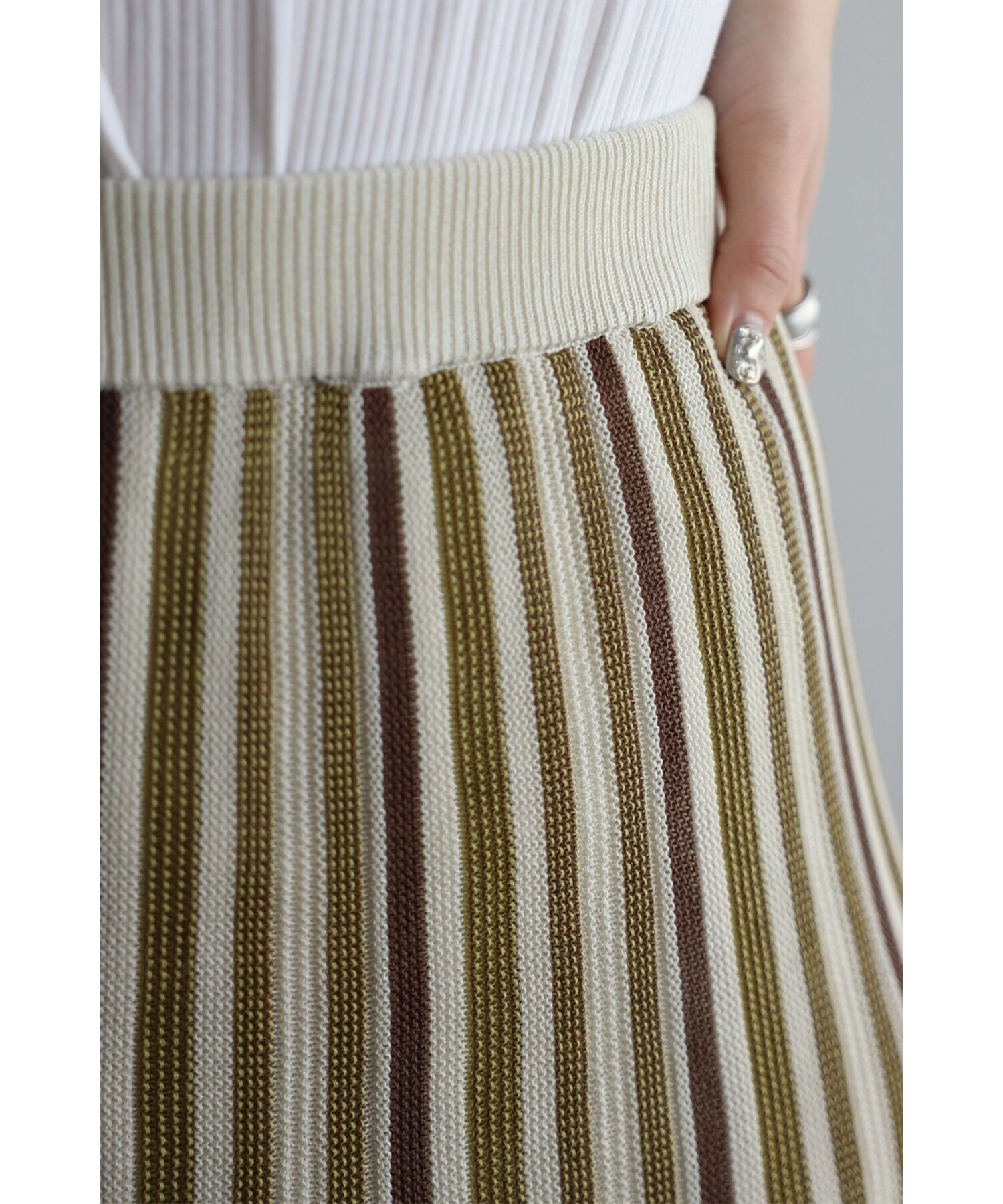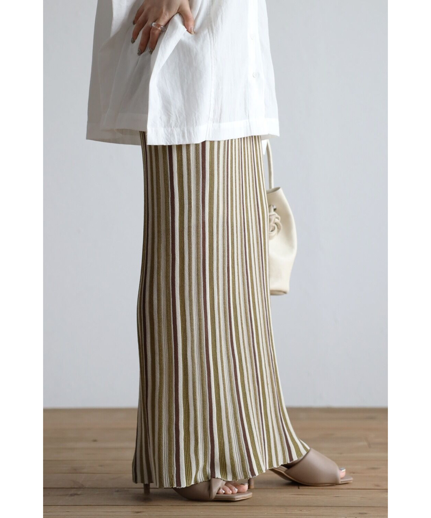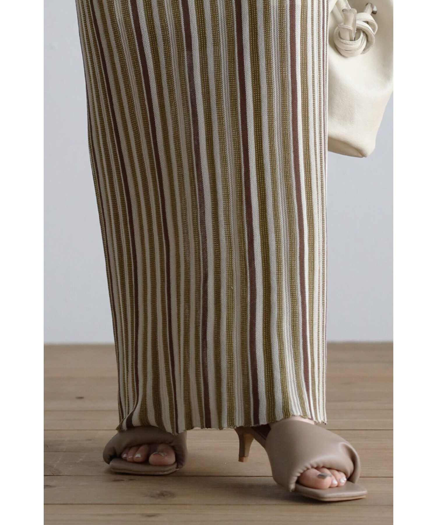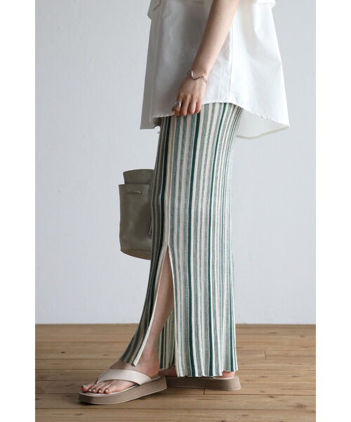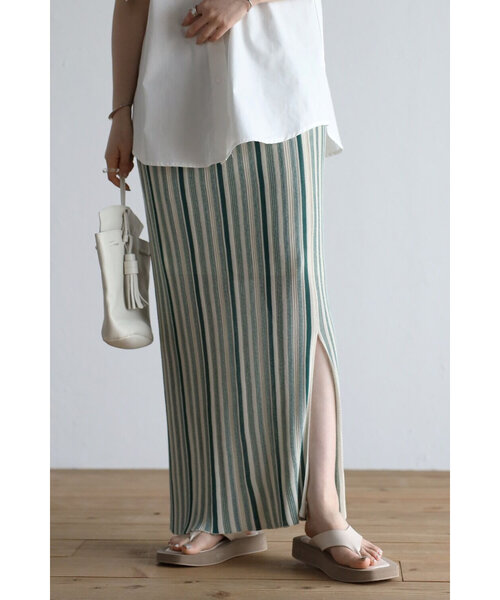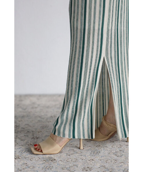 縦のストライプデザインがスタイルを綺麗に見せてくれます。