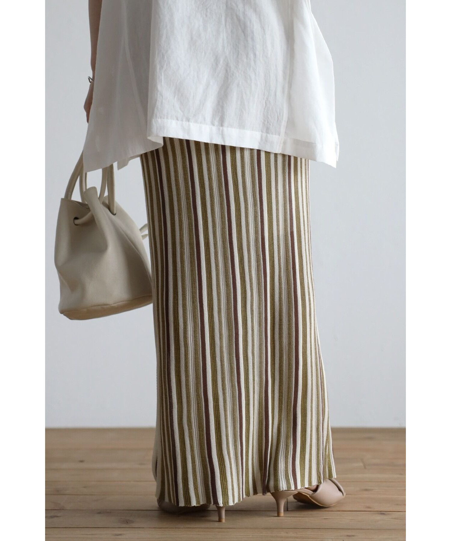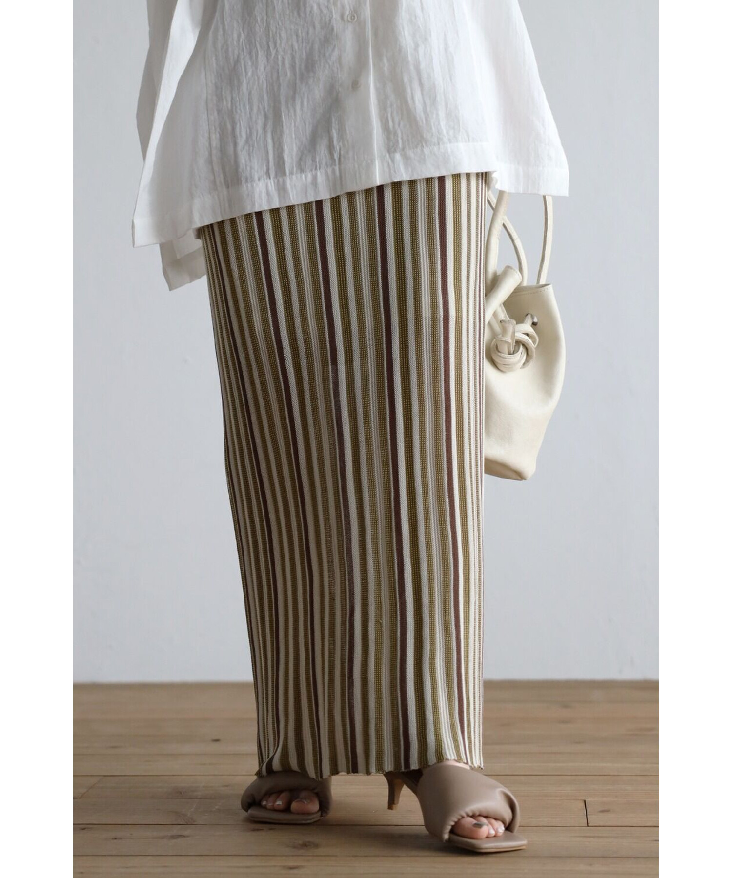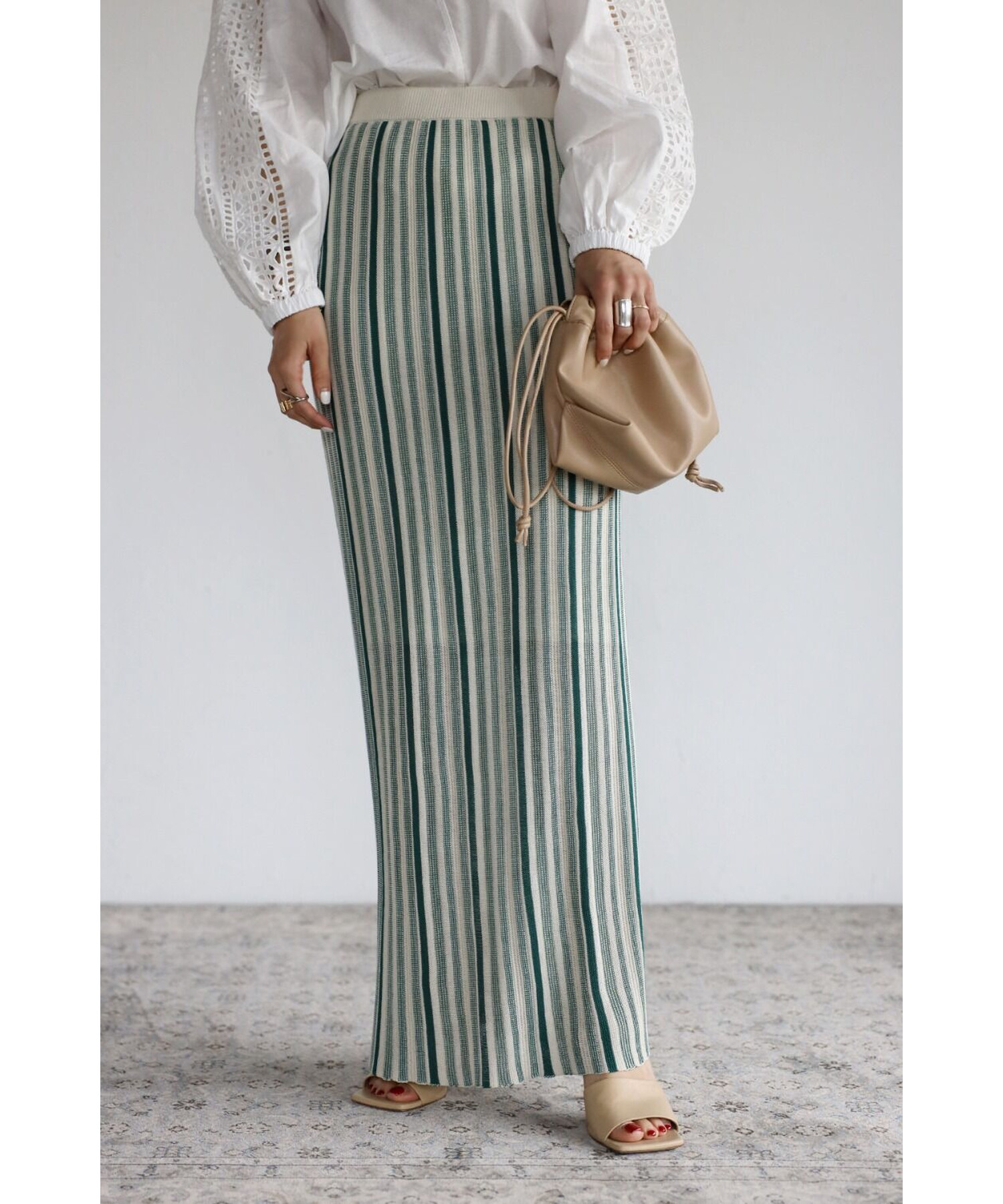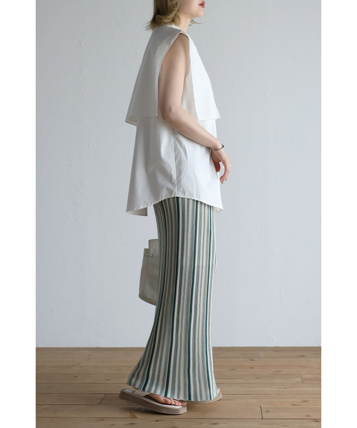 縦のストライプデザインがスタイルを綺麗に見せてくれます。