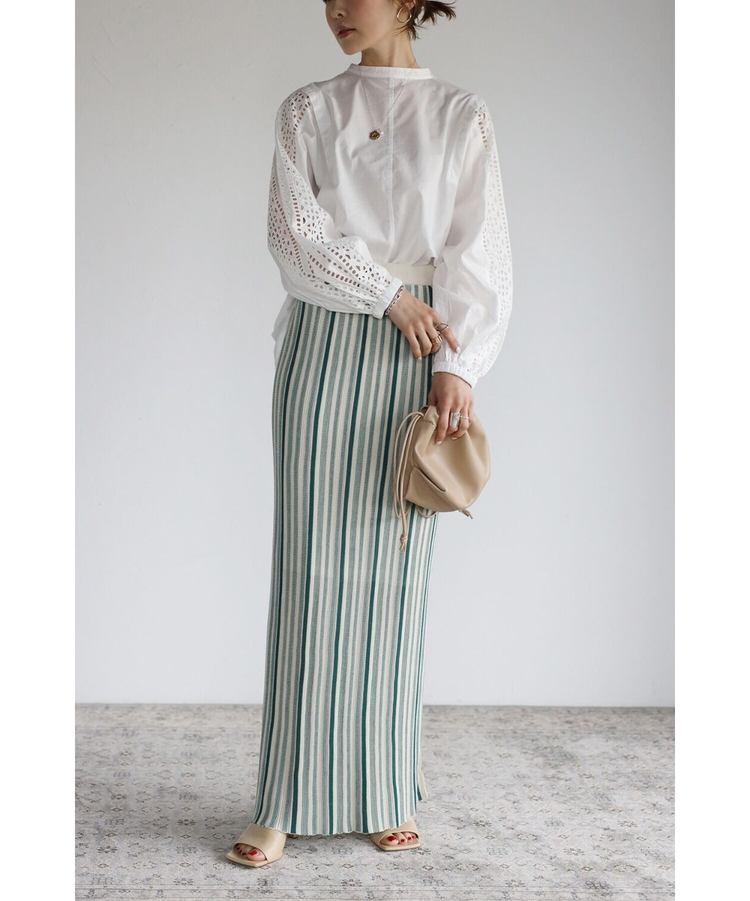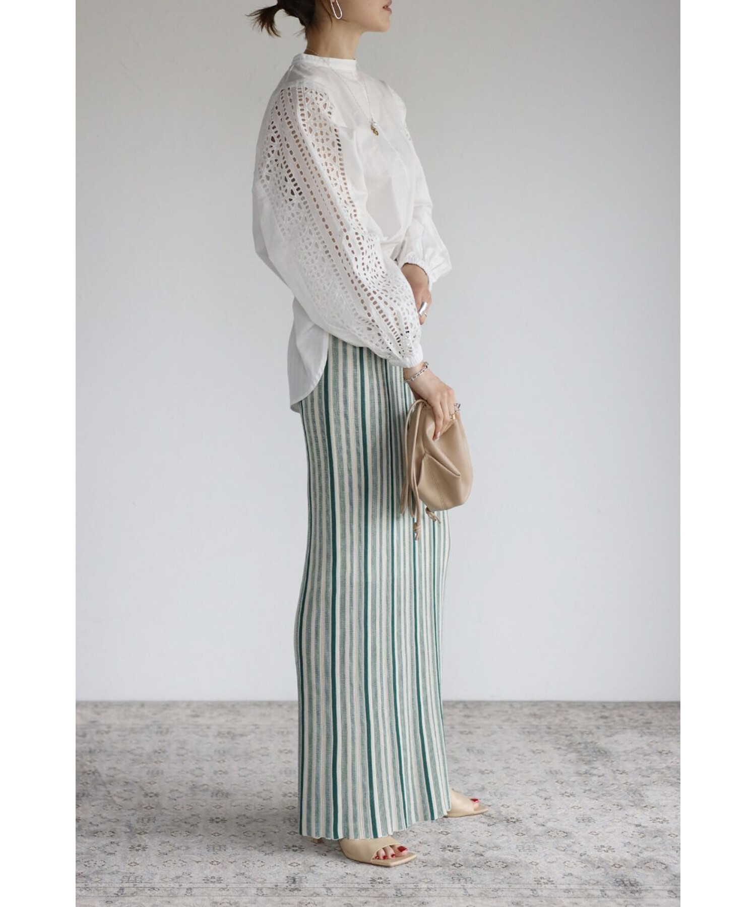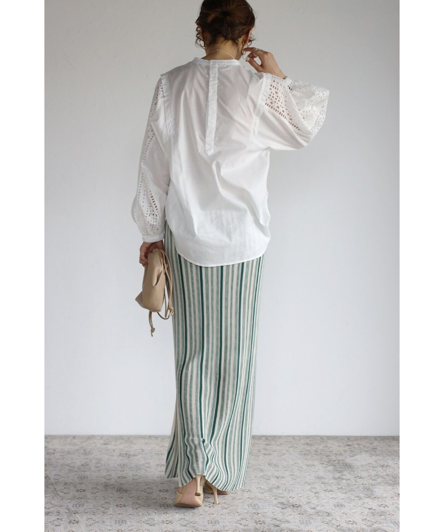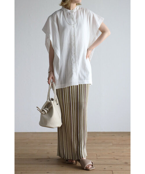 シンプルなブラウス合わせだと、さらに柄を映えさせてくれます。