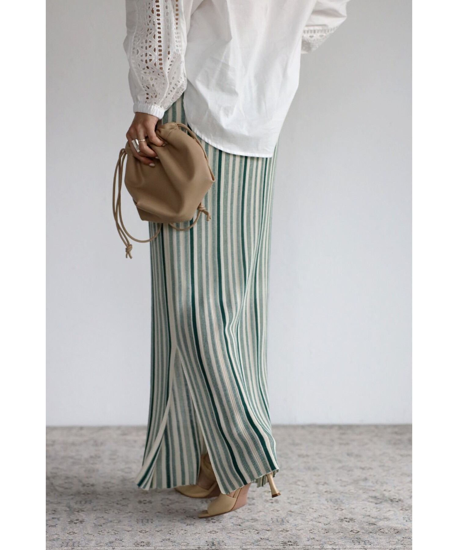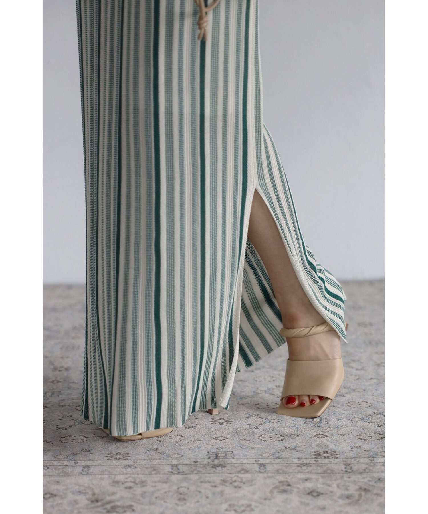 サイドにスリットが入っているので、ヒールと合わせ女性らしい足元に◎