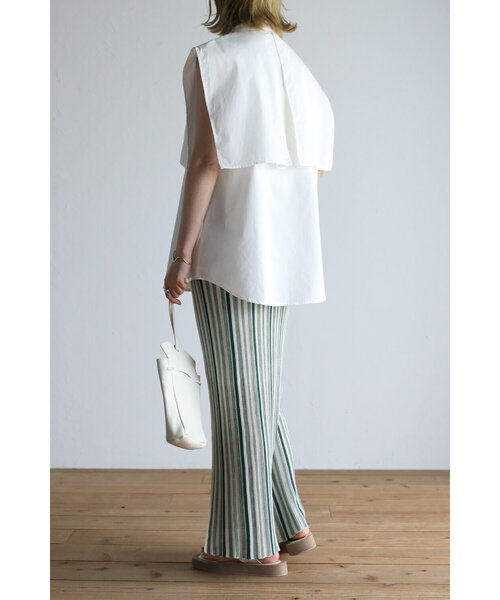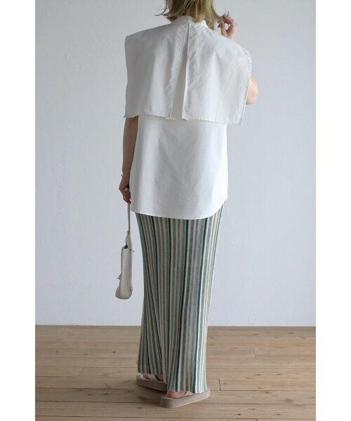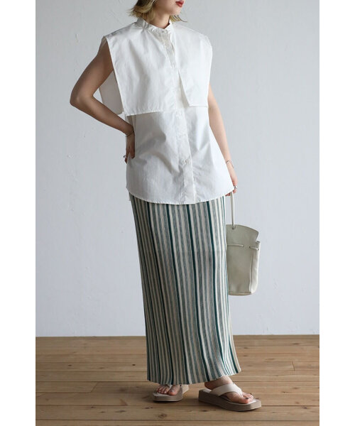 インナーにシャツを羽織りといて夏らしいコーディネートもおすすめです。