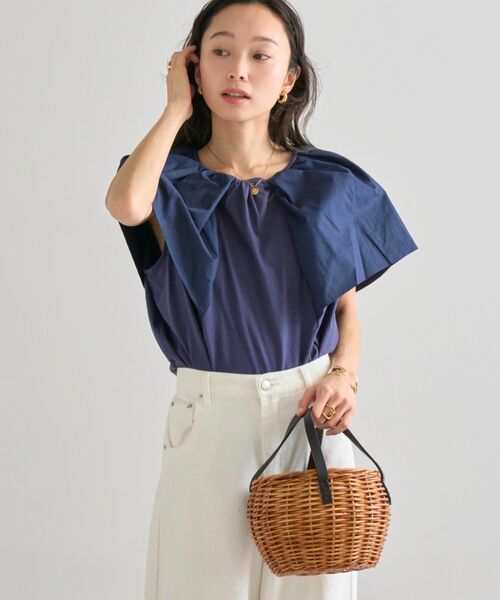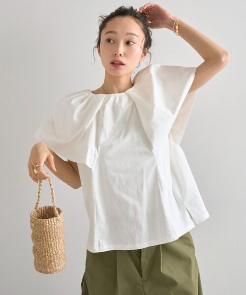 肩周りを可愛くカバーしてくれるケープカラーが魅力のデザイントップス