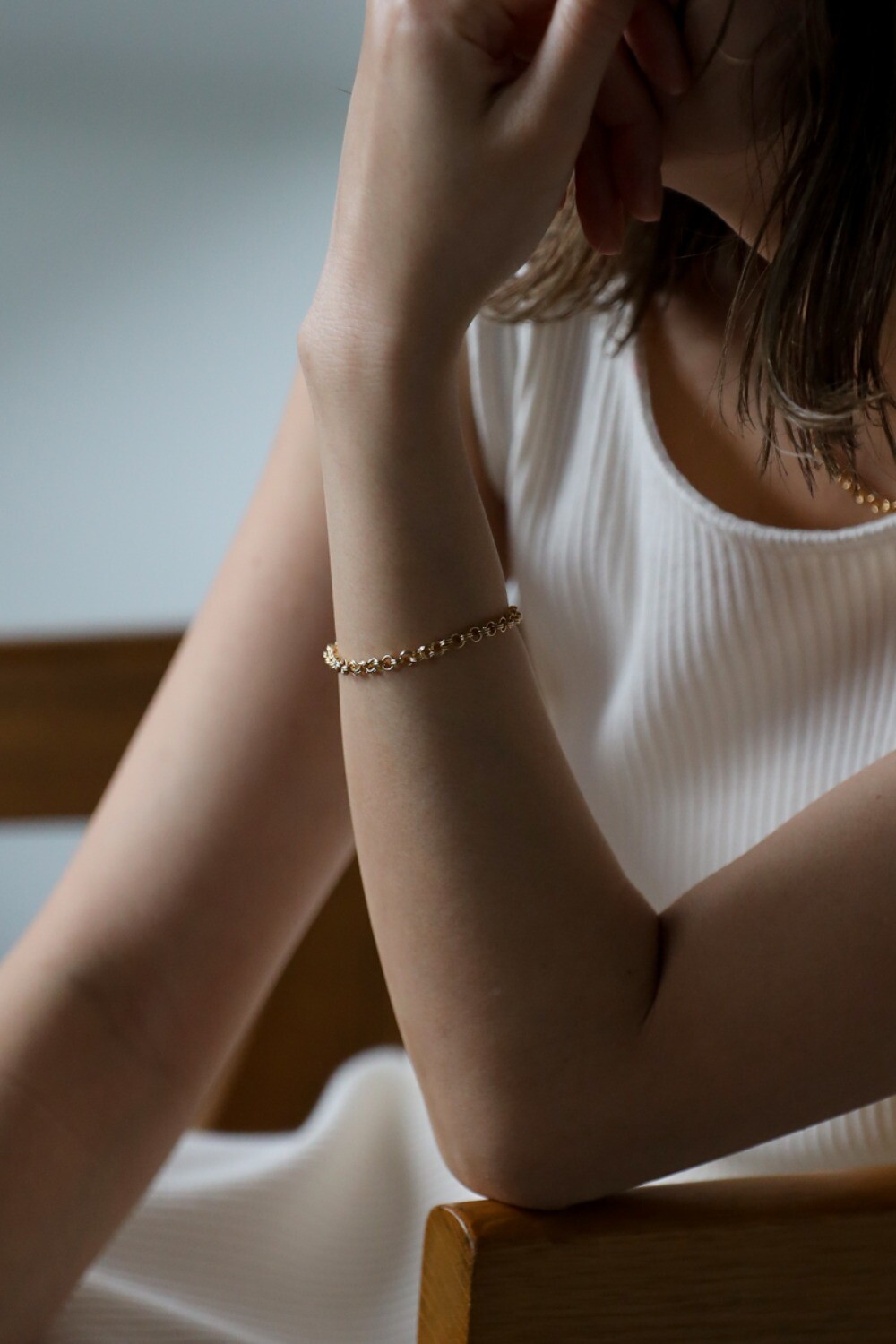 コーデのアクセントになる、程よいボリュームのチェーンブレスレット