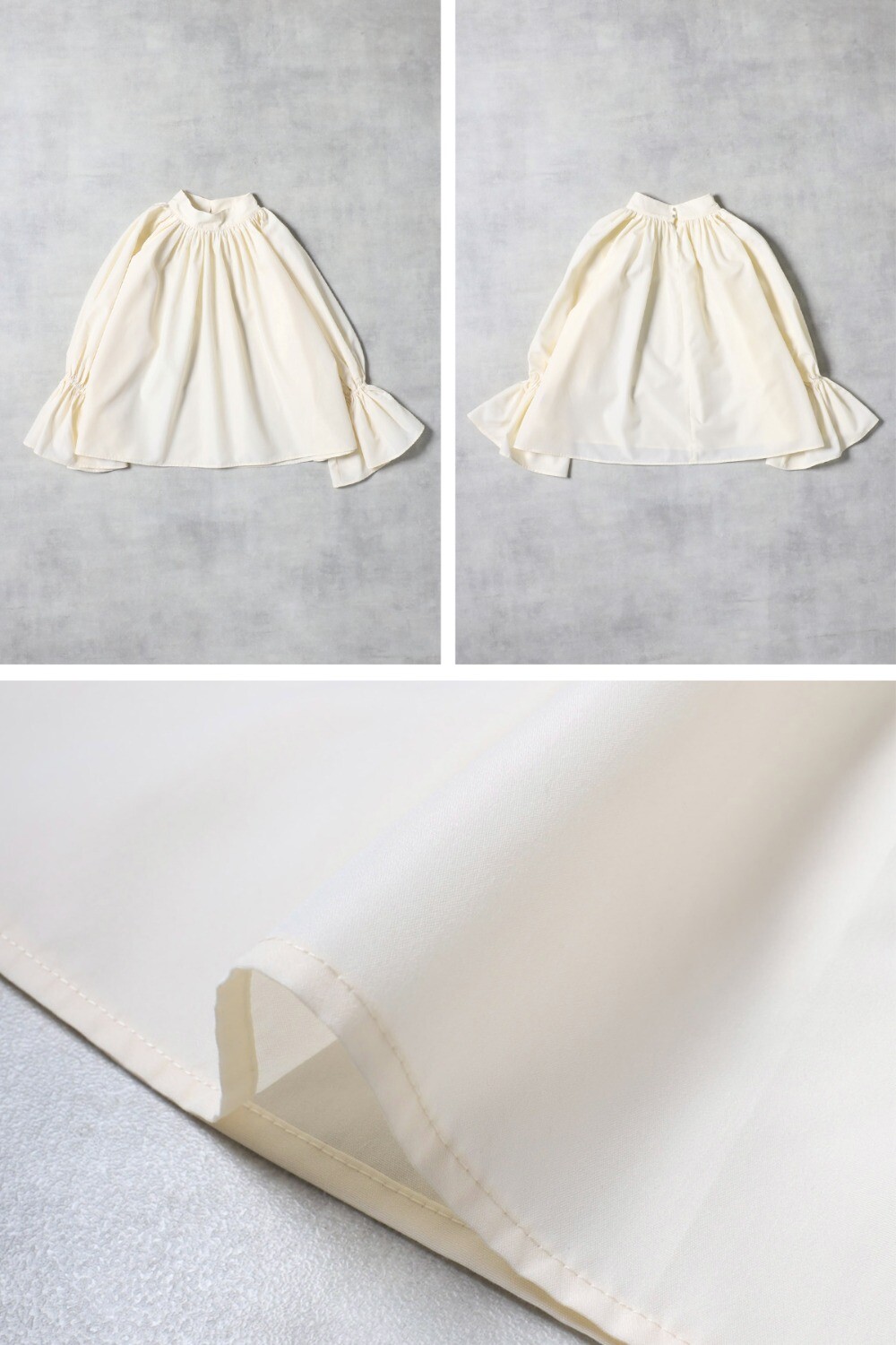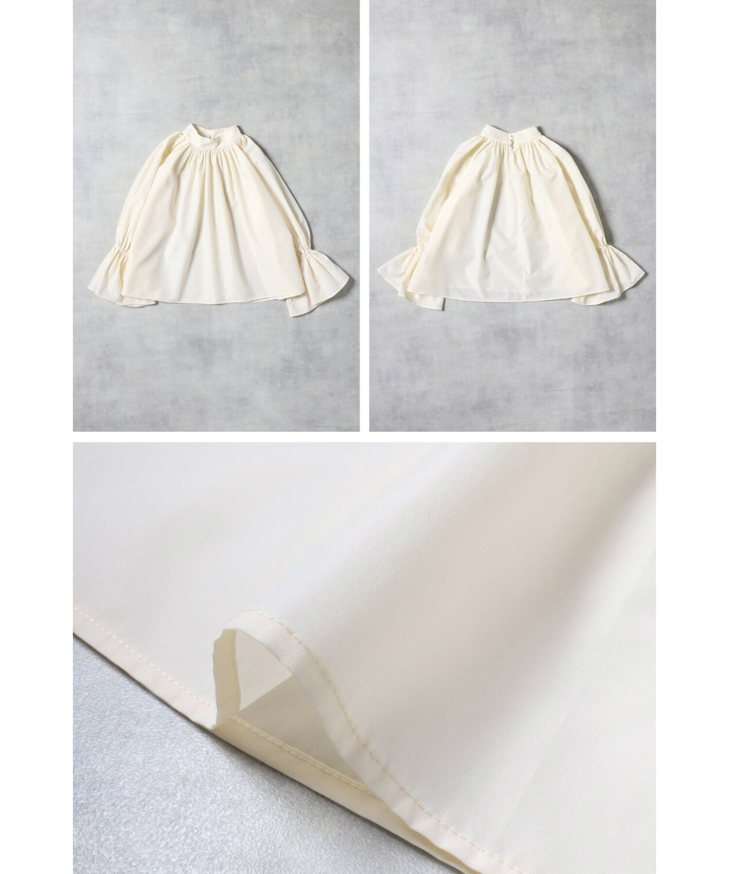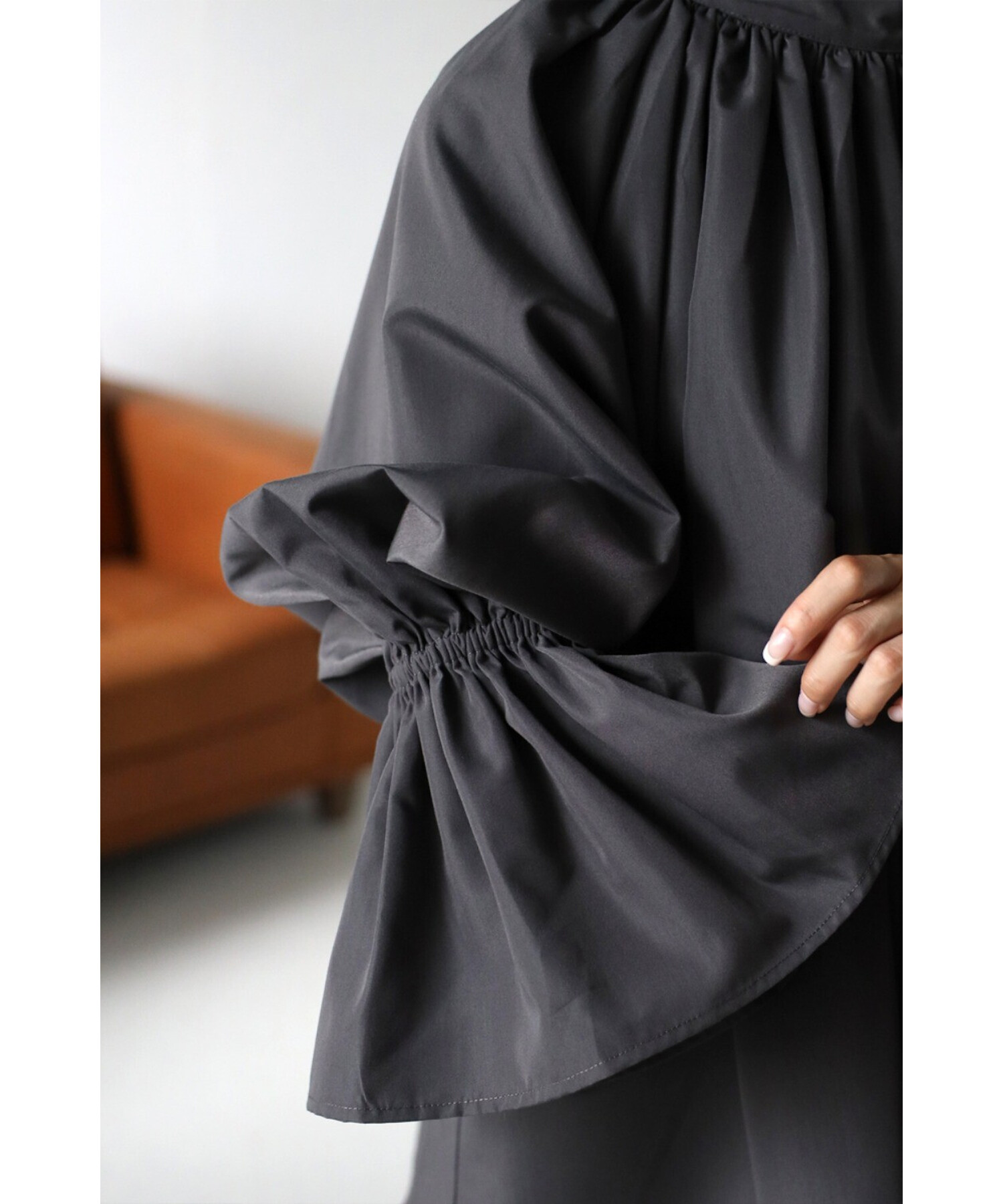 袖口はゴム仕様になっており、たくし上げてお好みの位置でブラウジングできます。