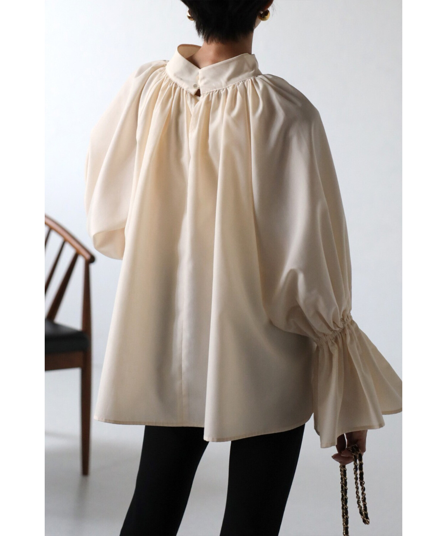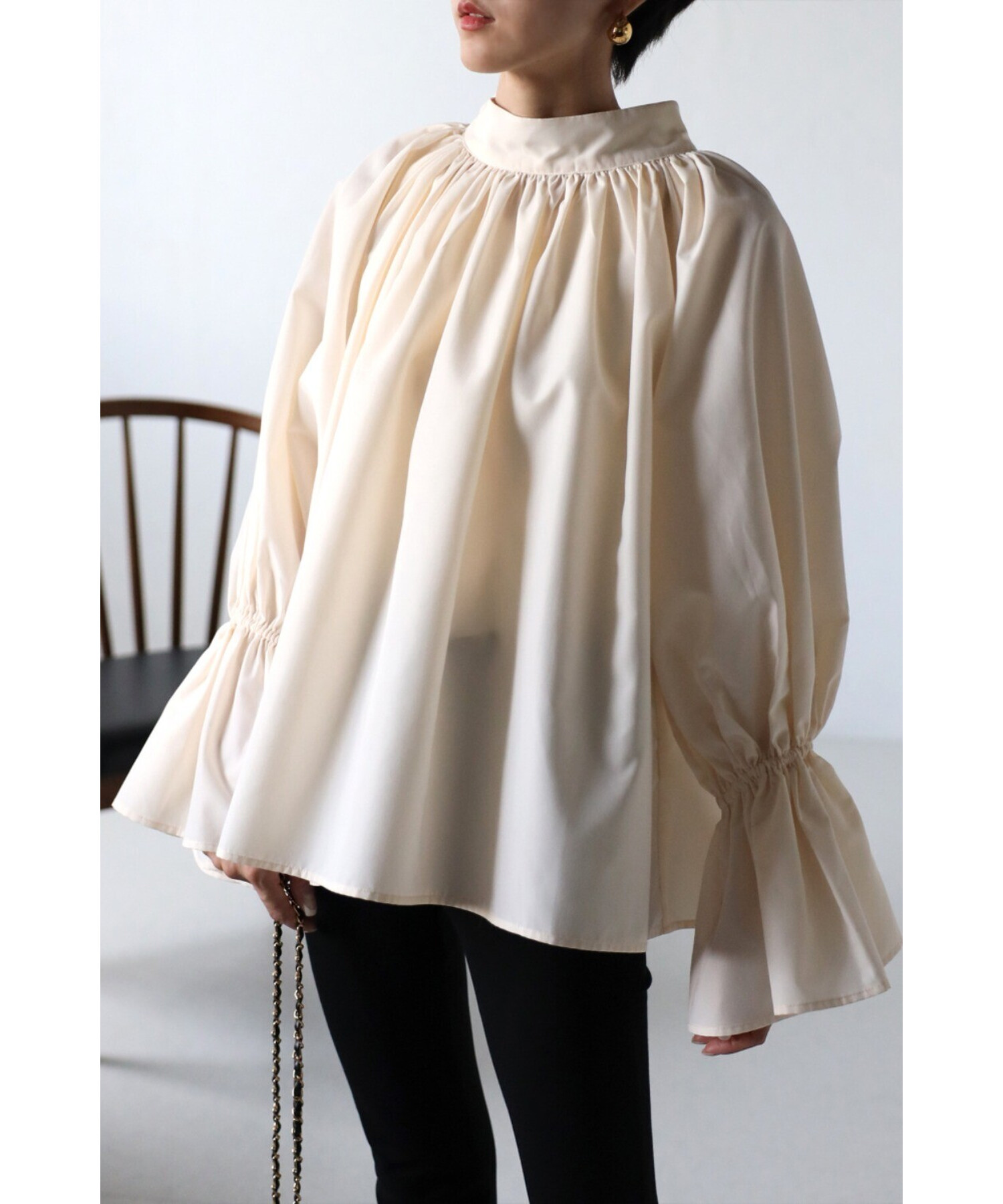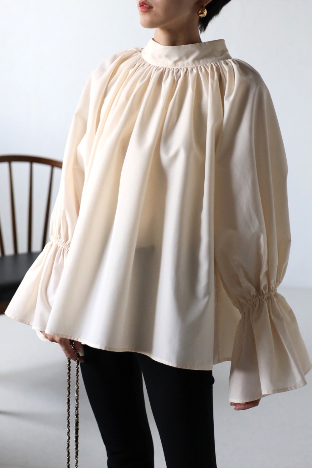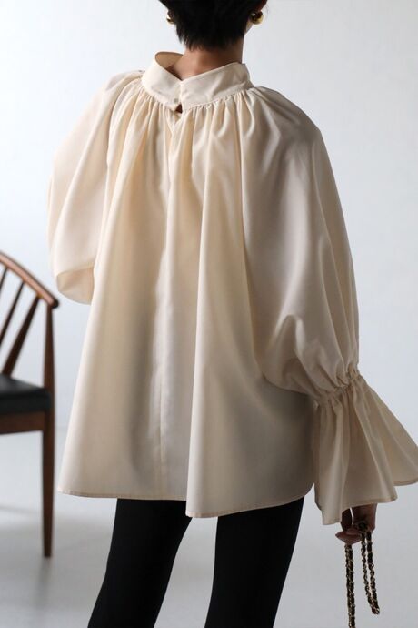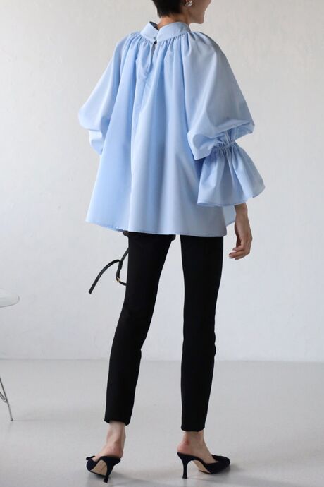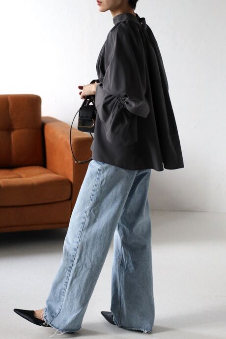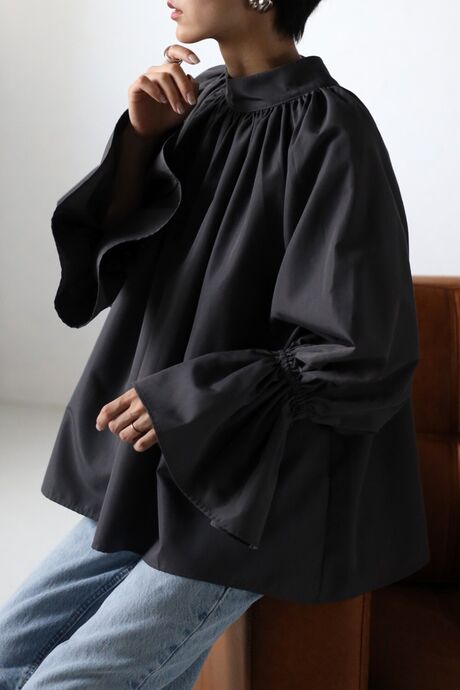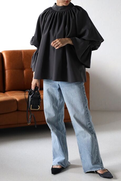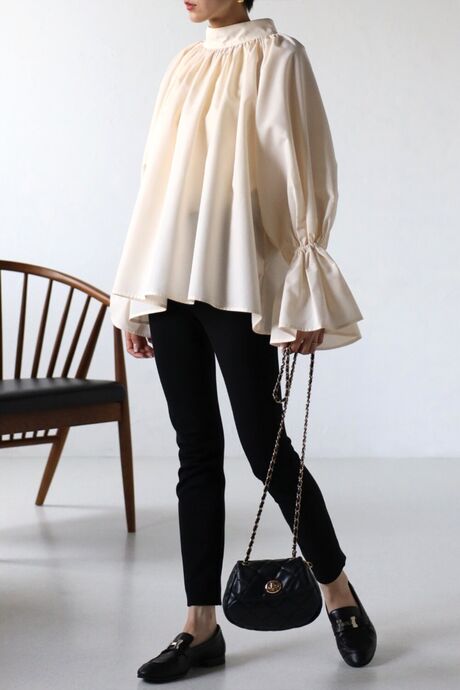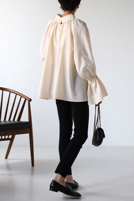たっぷりのギャザーが大人フェミニン。キャンディースリーブが魅力のブラウス