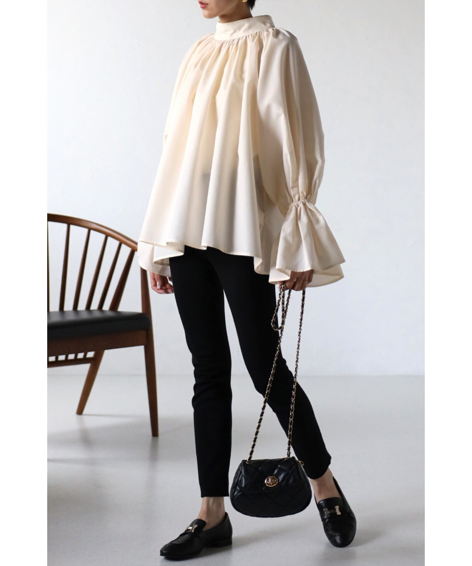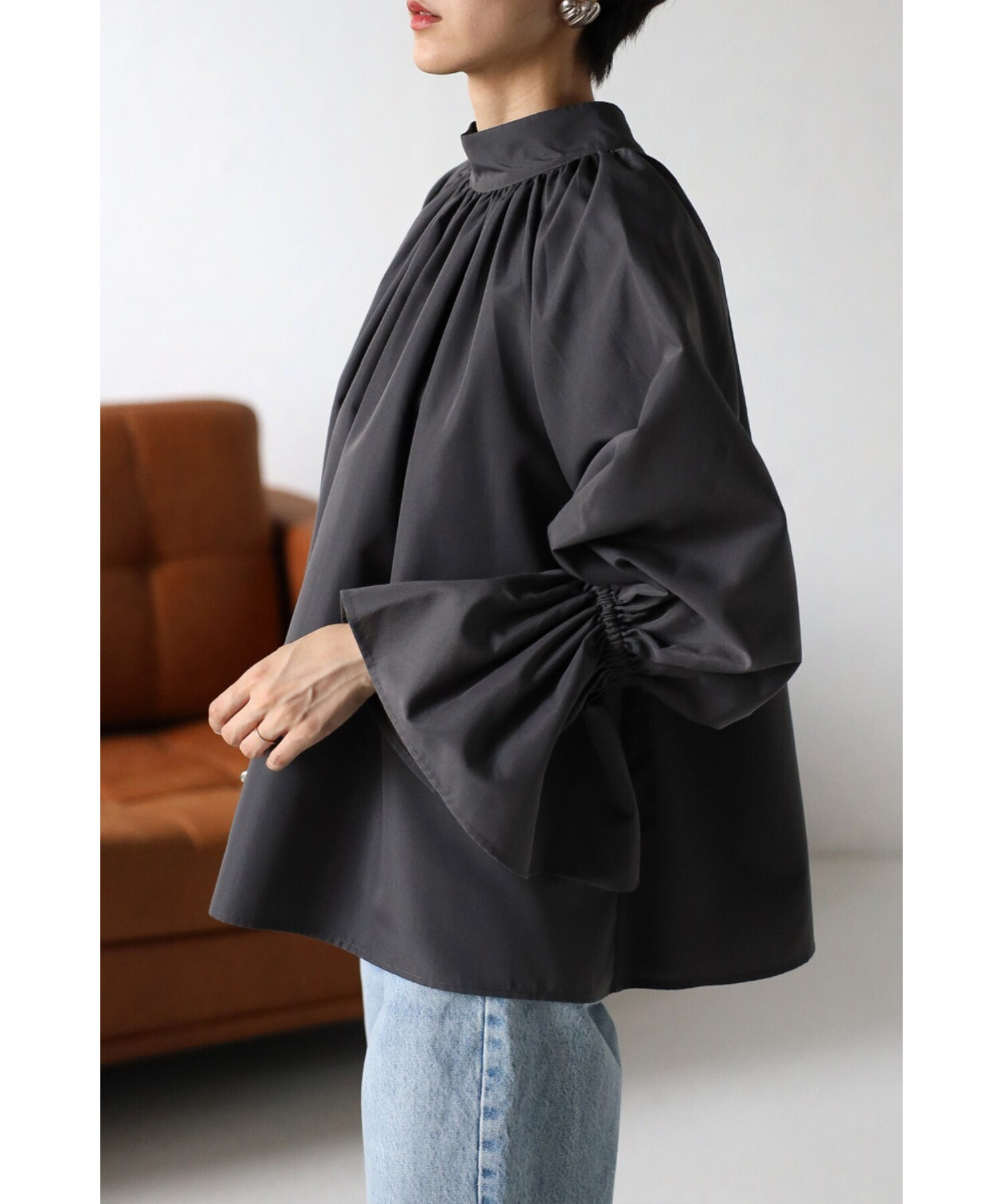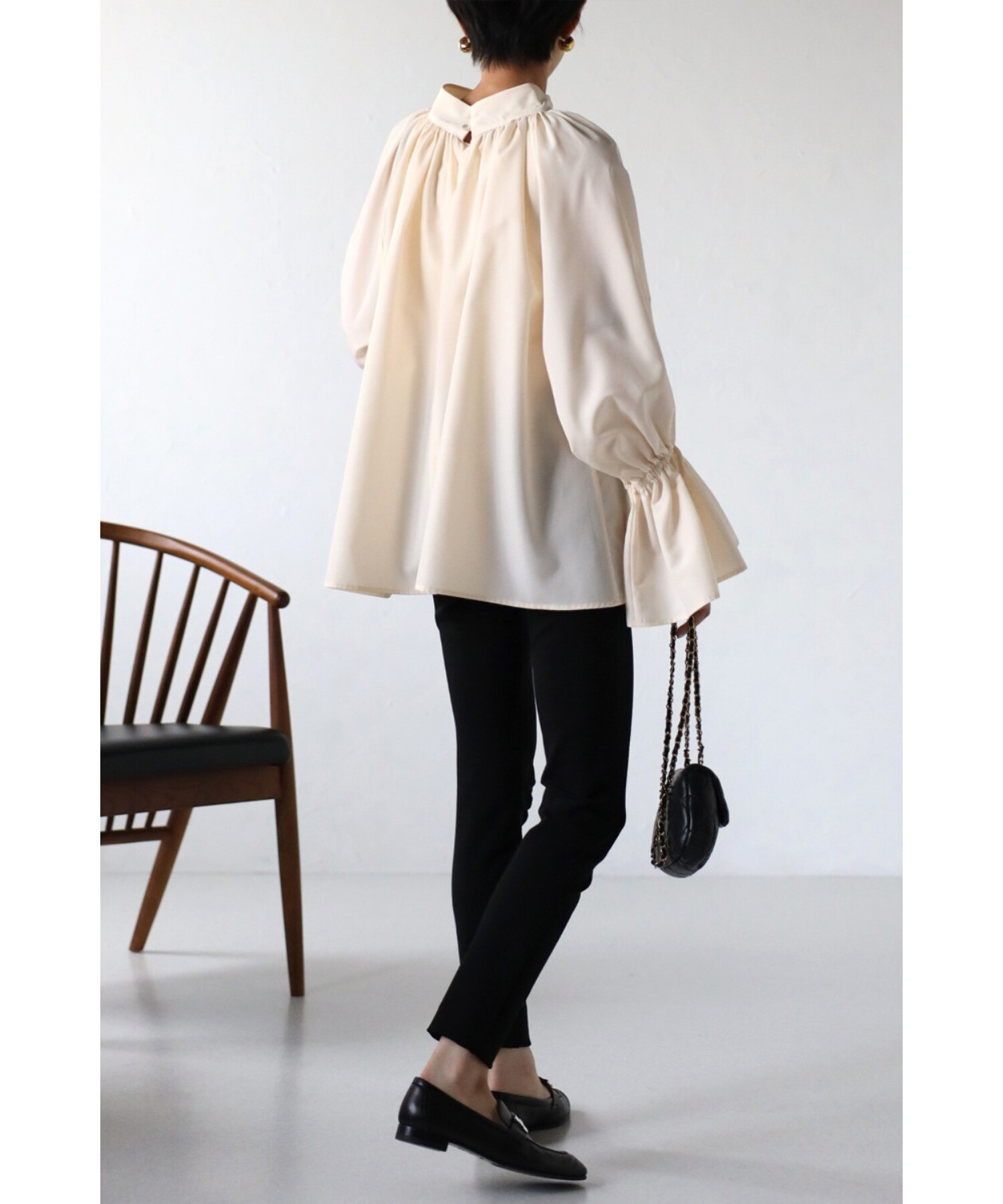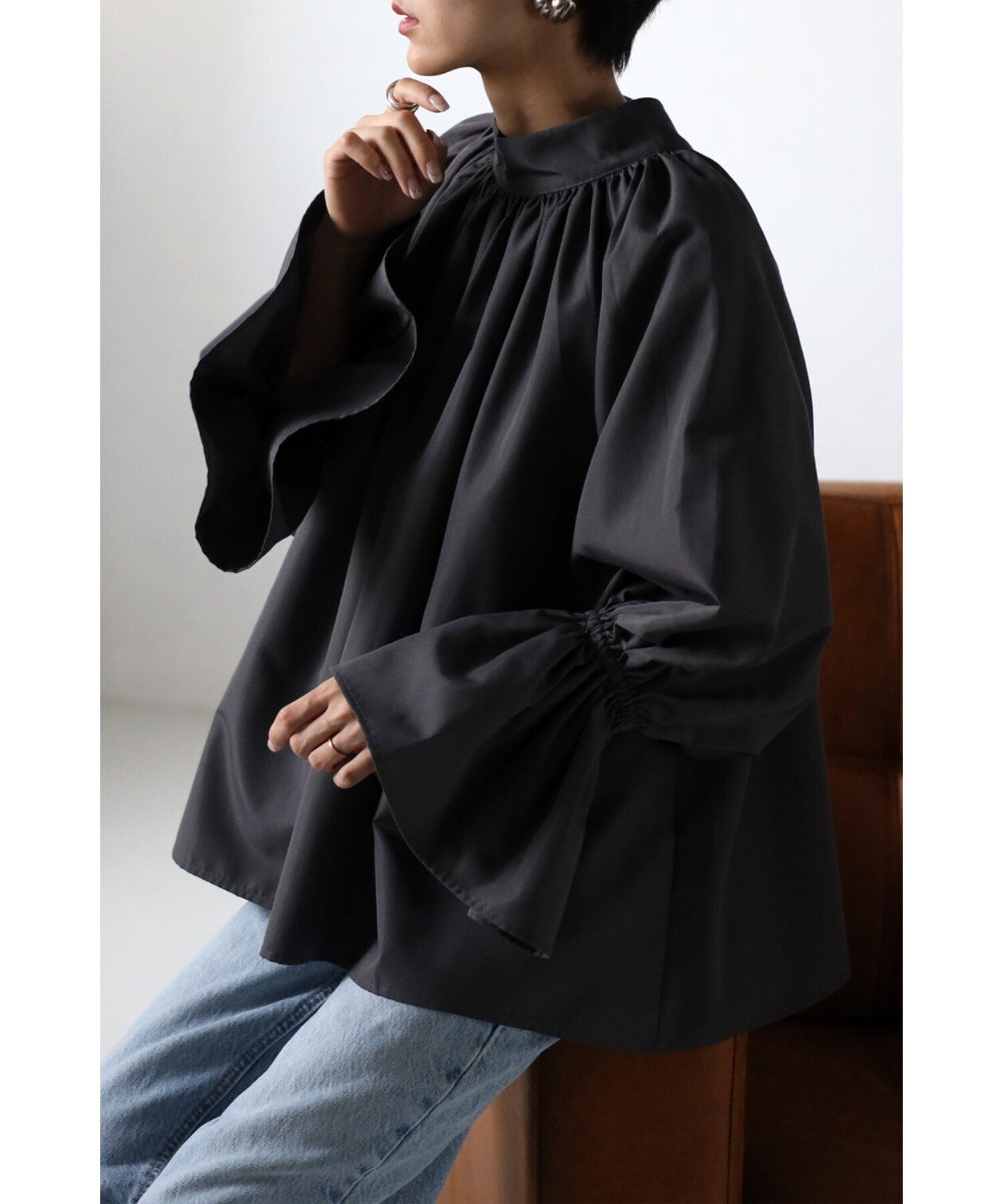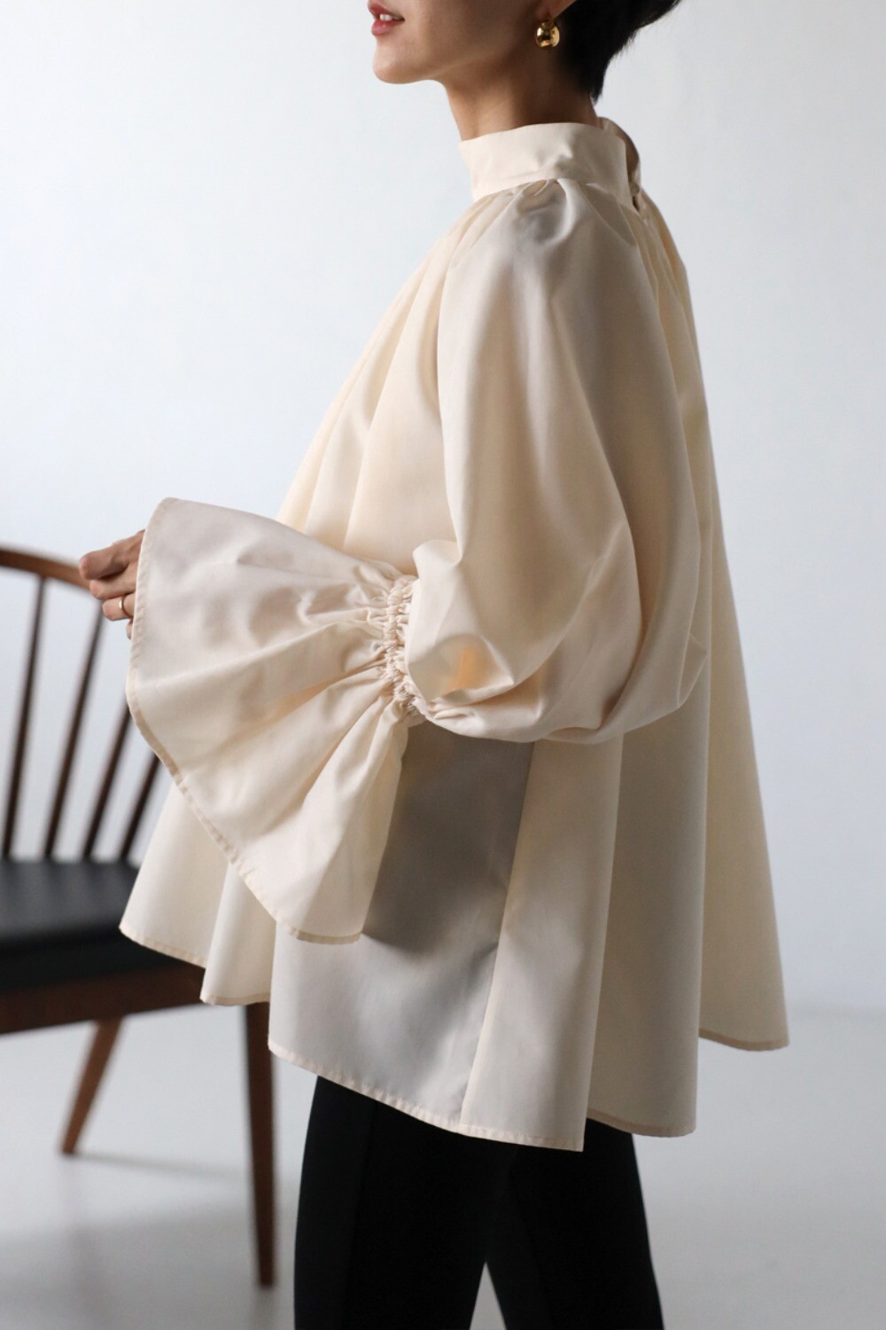 たっぷりのギャザーが大人フェミニン。キャンディースリーブが魅力のブラウス