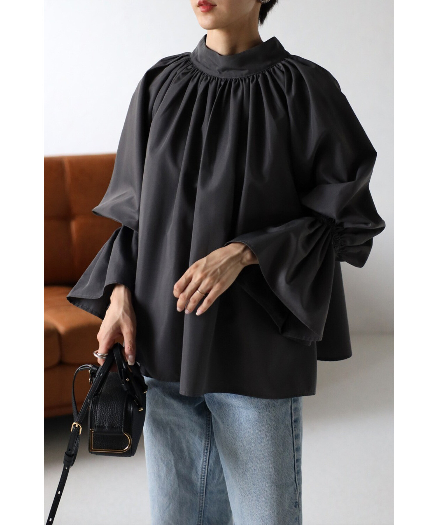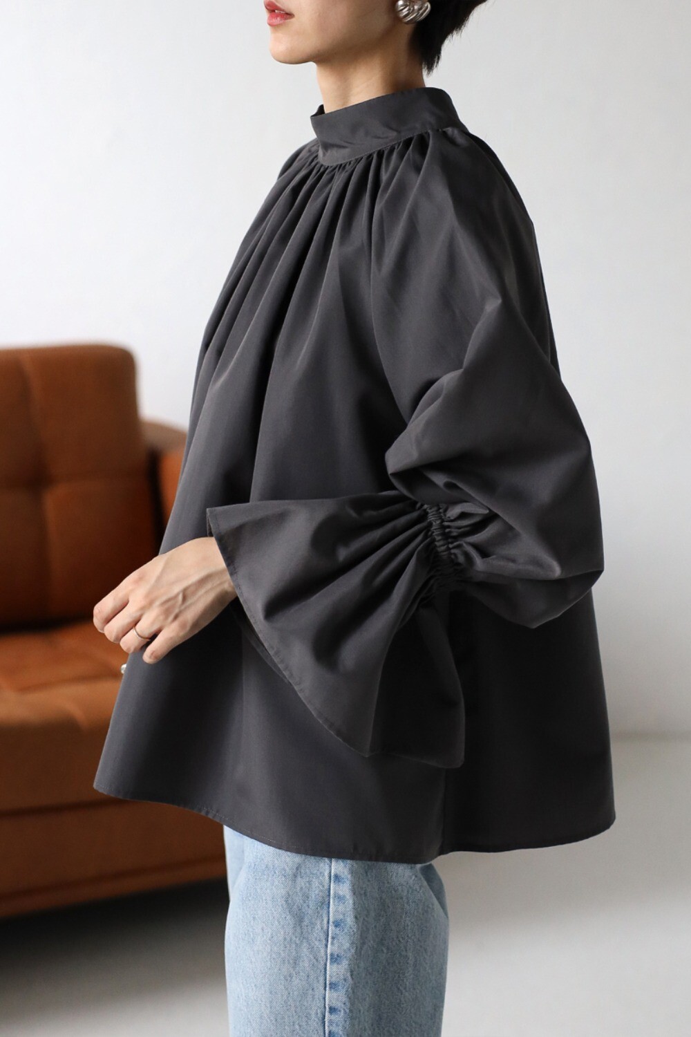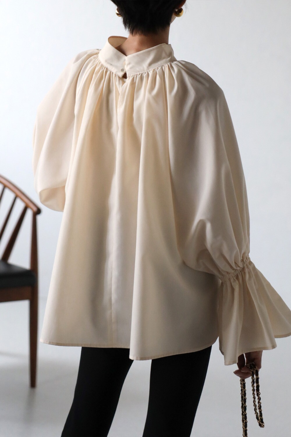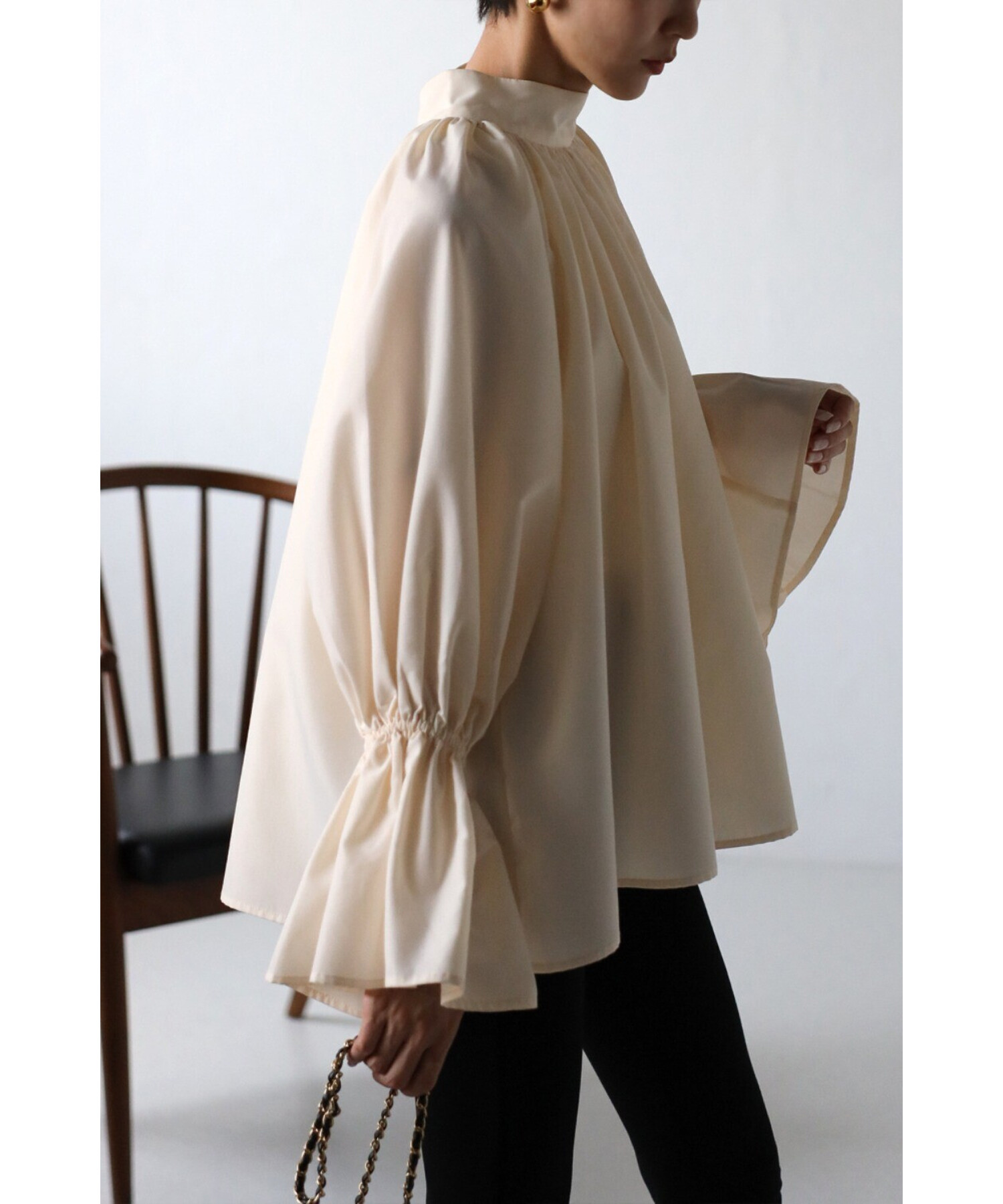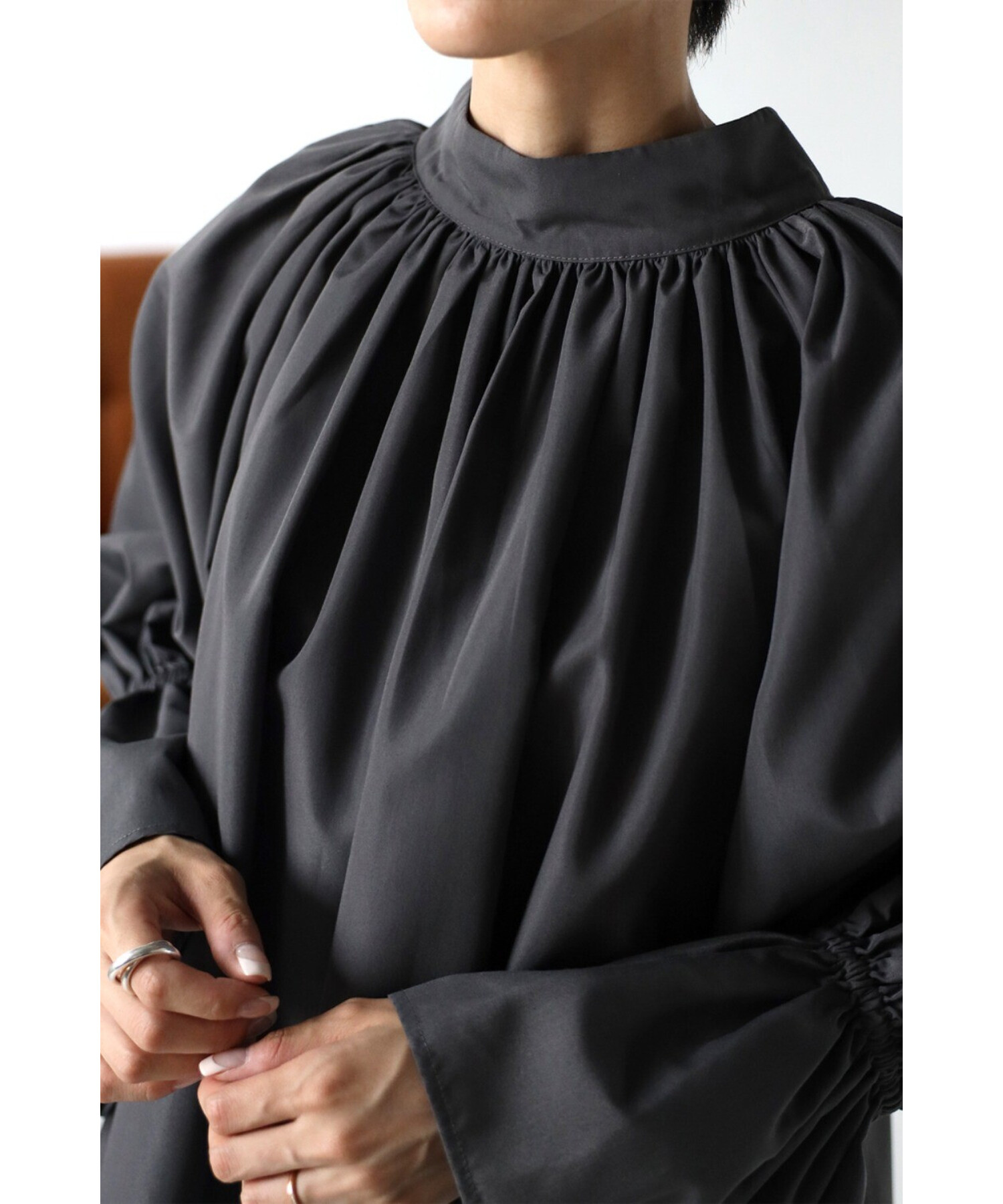 たっぷりのギャザーが大人フェミニン。キャンディースリーブが魅力のブラウス