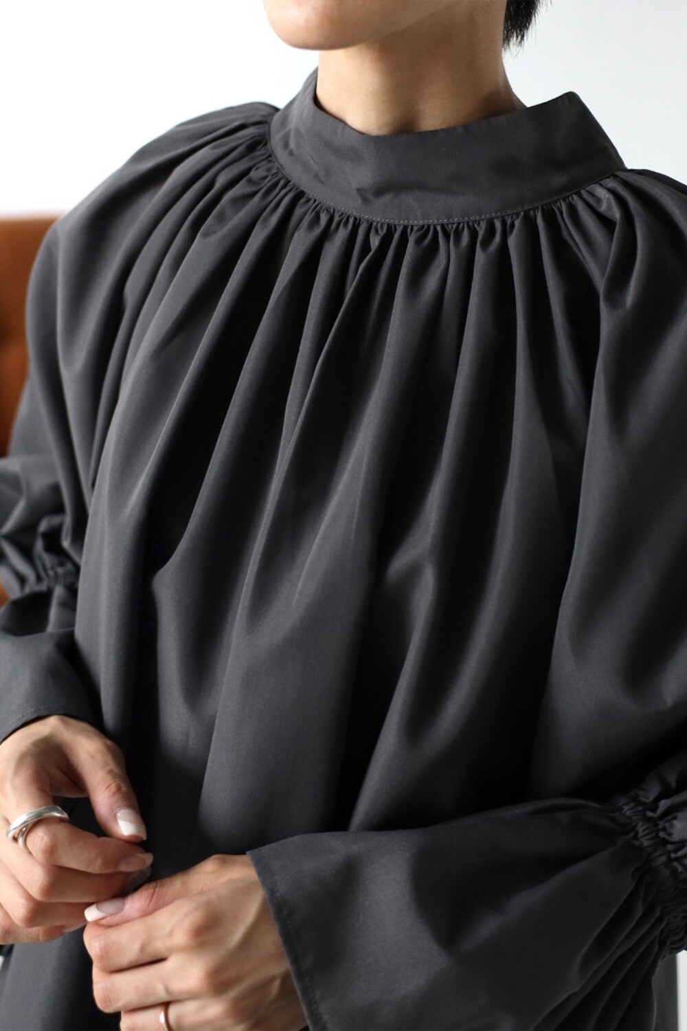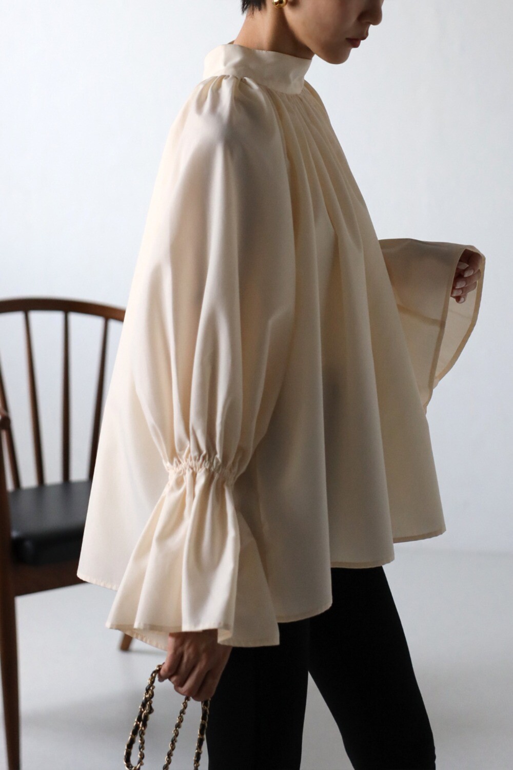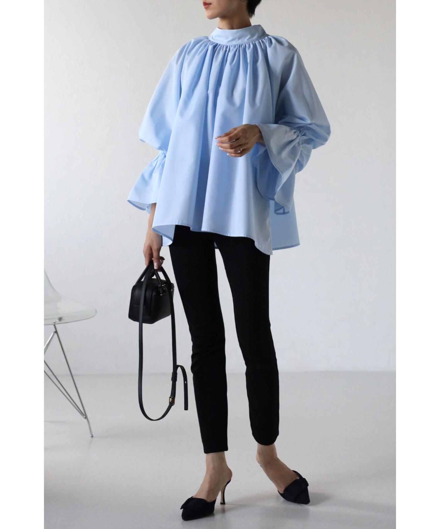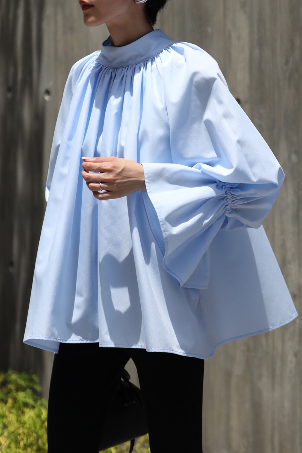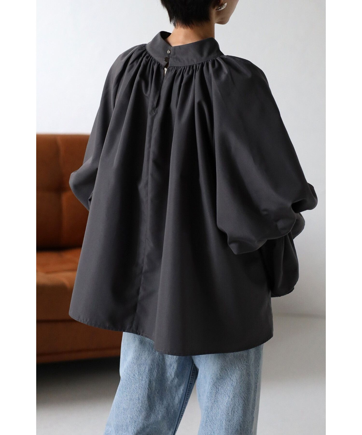 たっぷりのギャザーが大人フェミニン。キャンディースリーブが魅力のブラウス