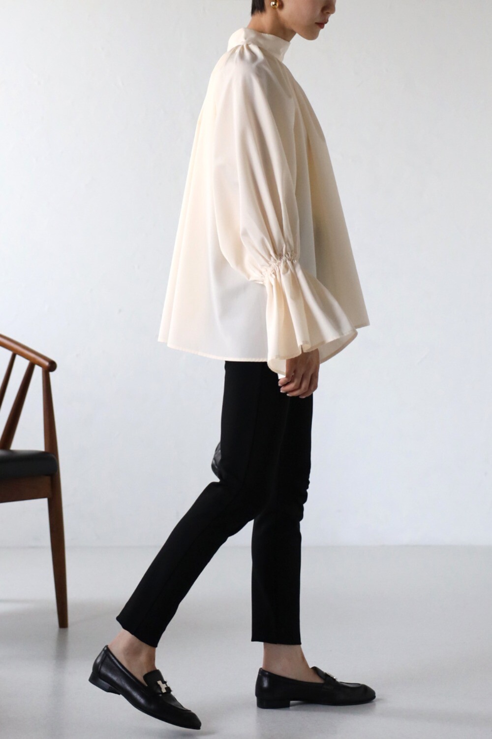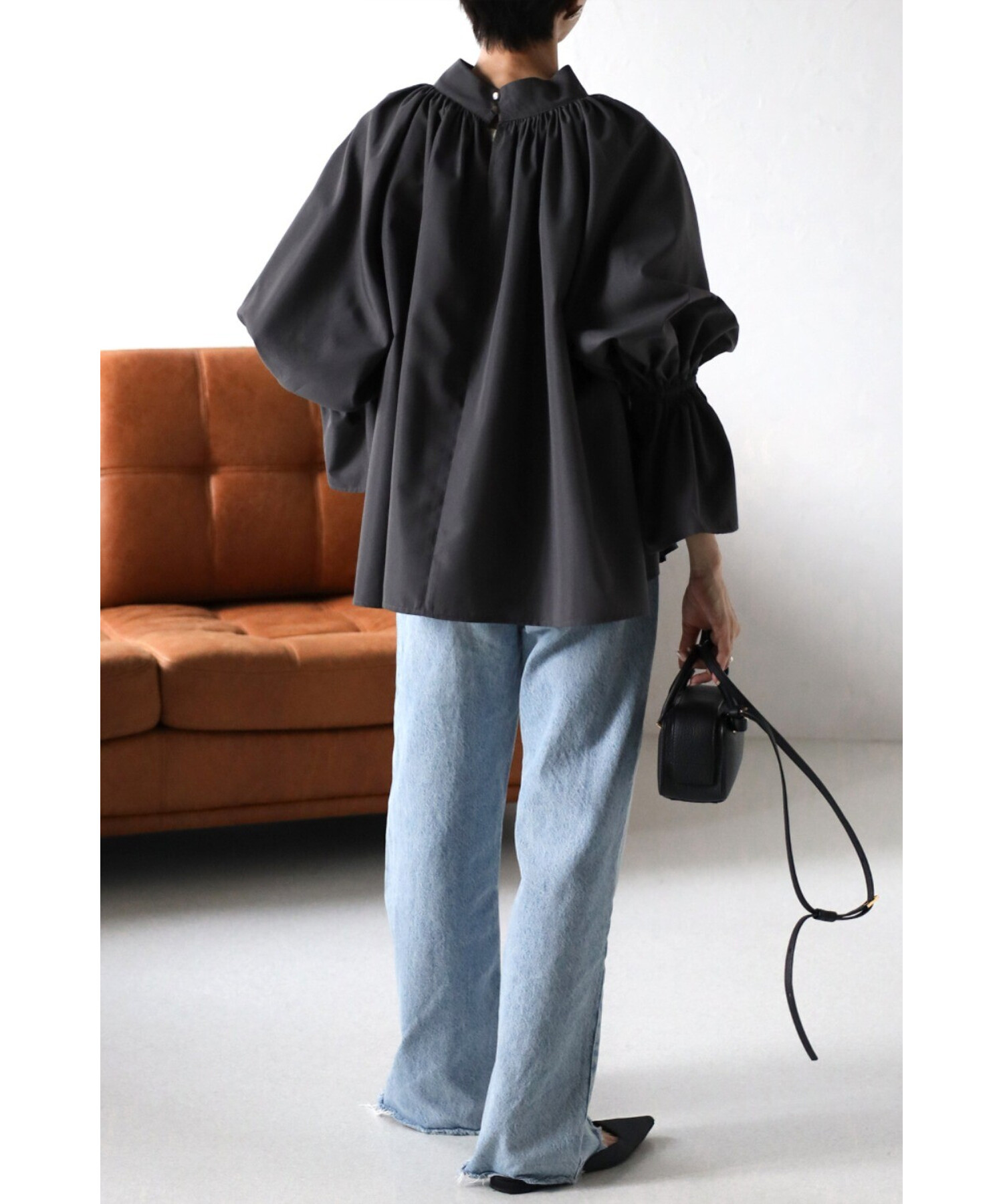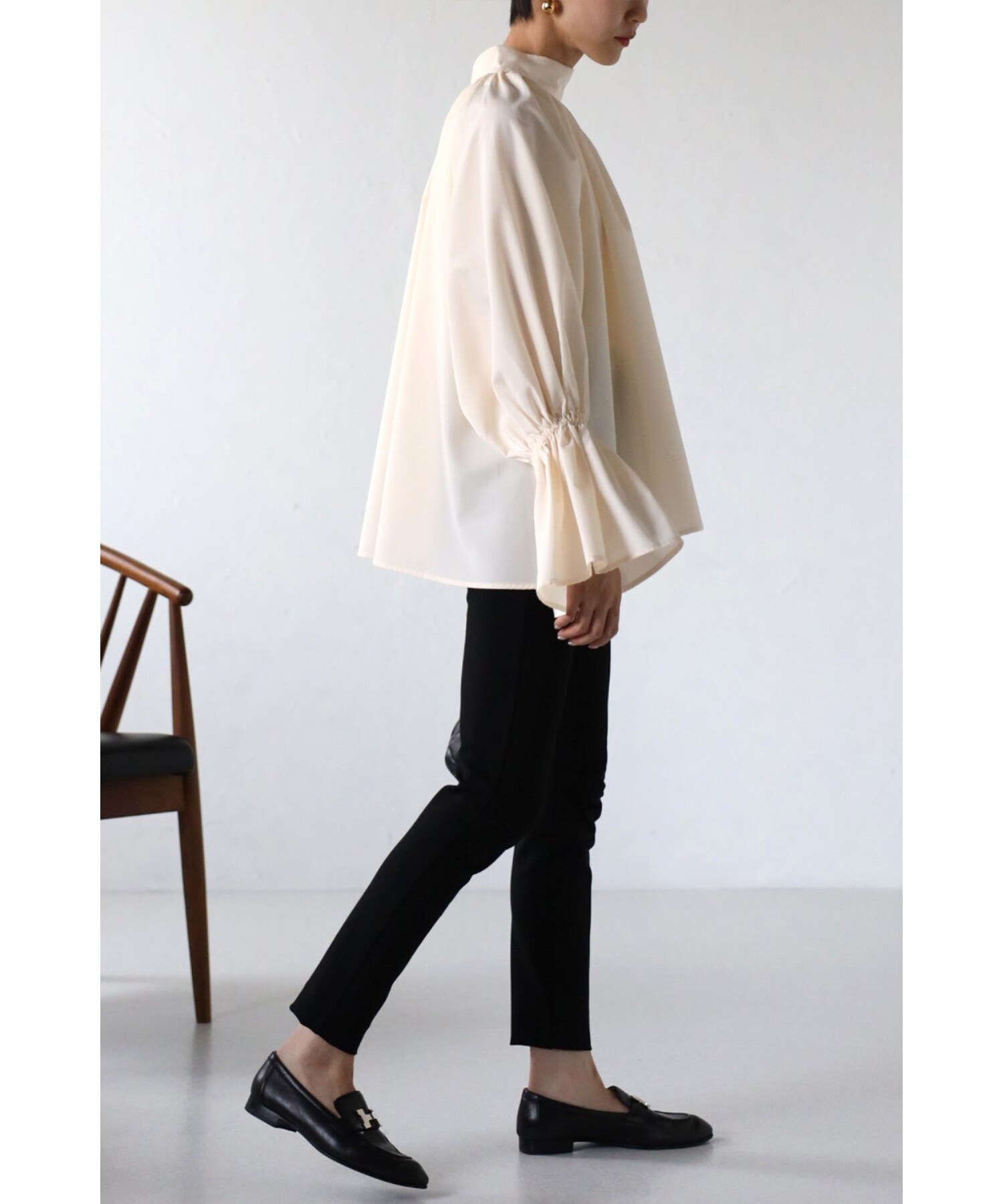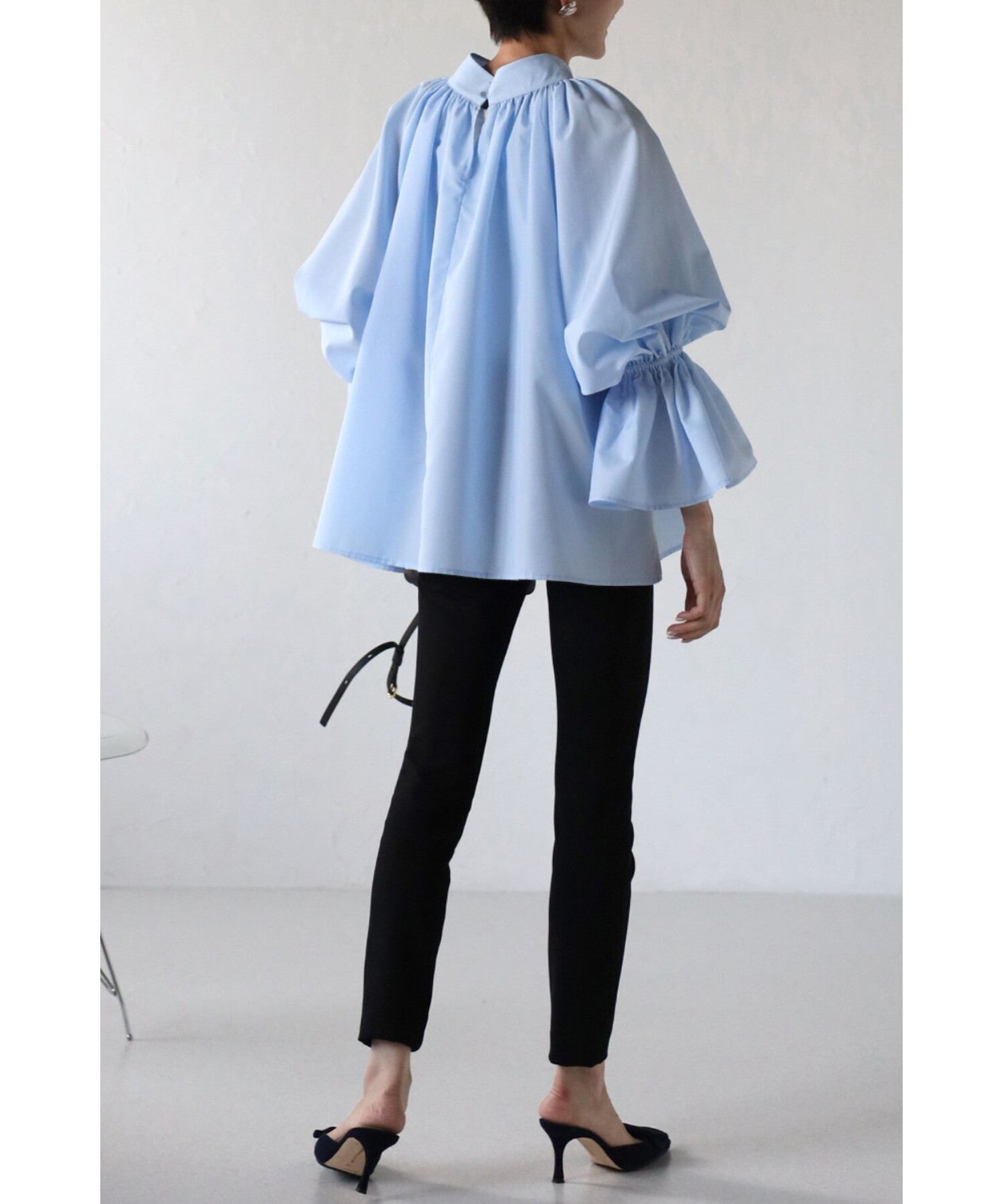 たっぷりのギャザーが大人フェミニン。キャンディースリーブが魅力のブラウス