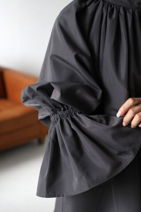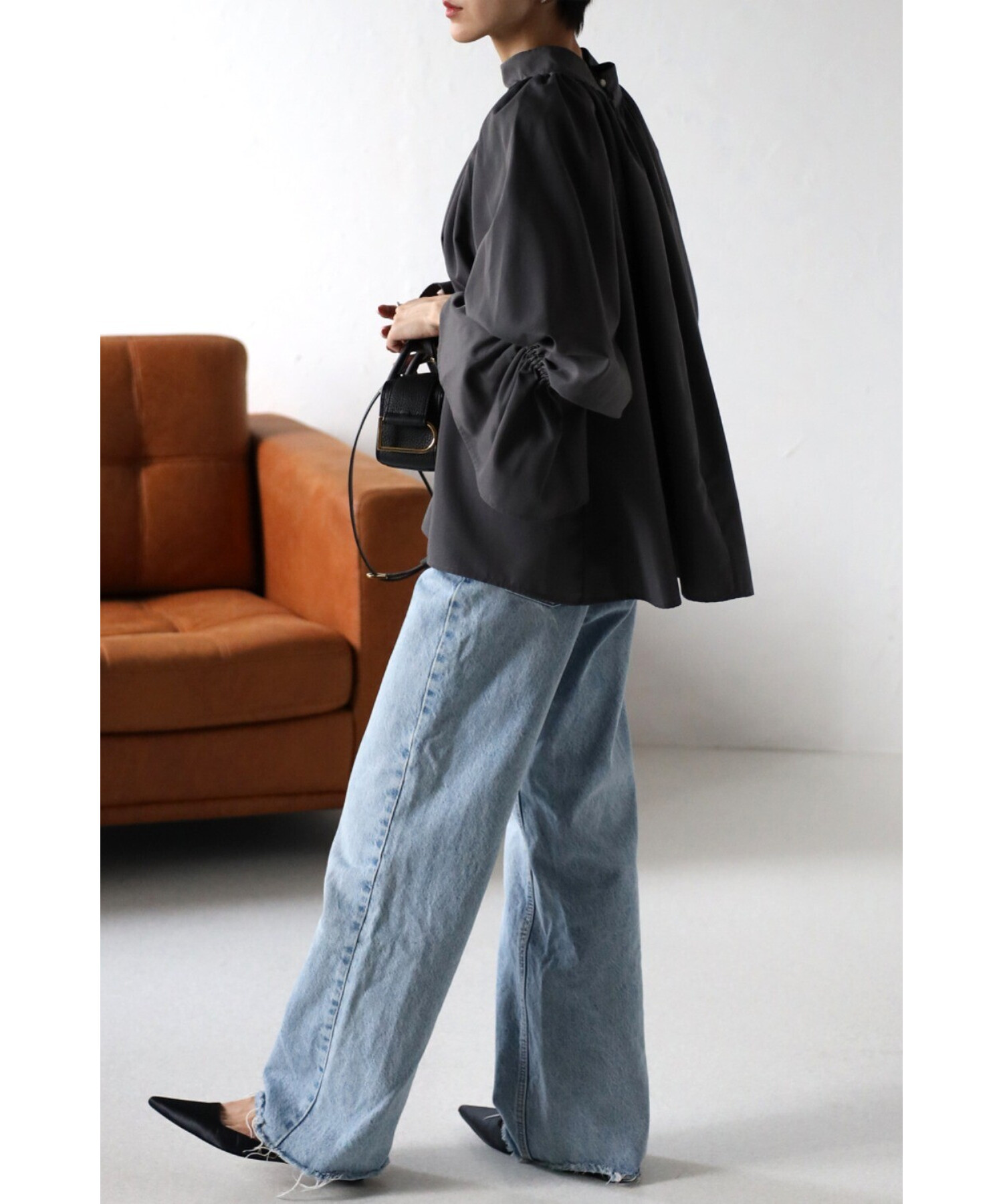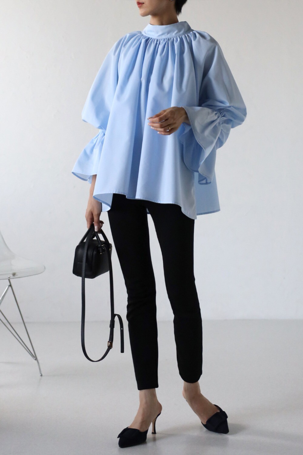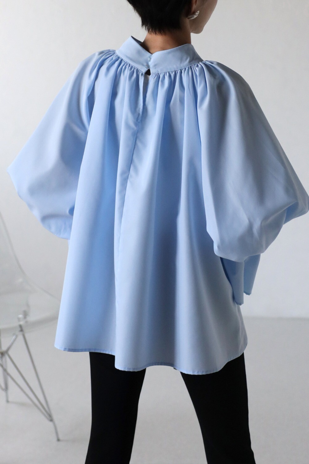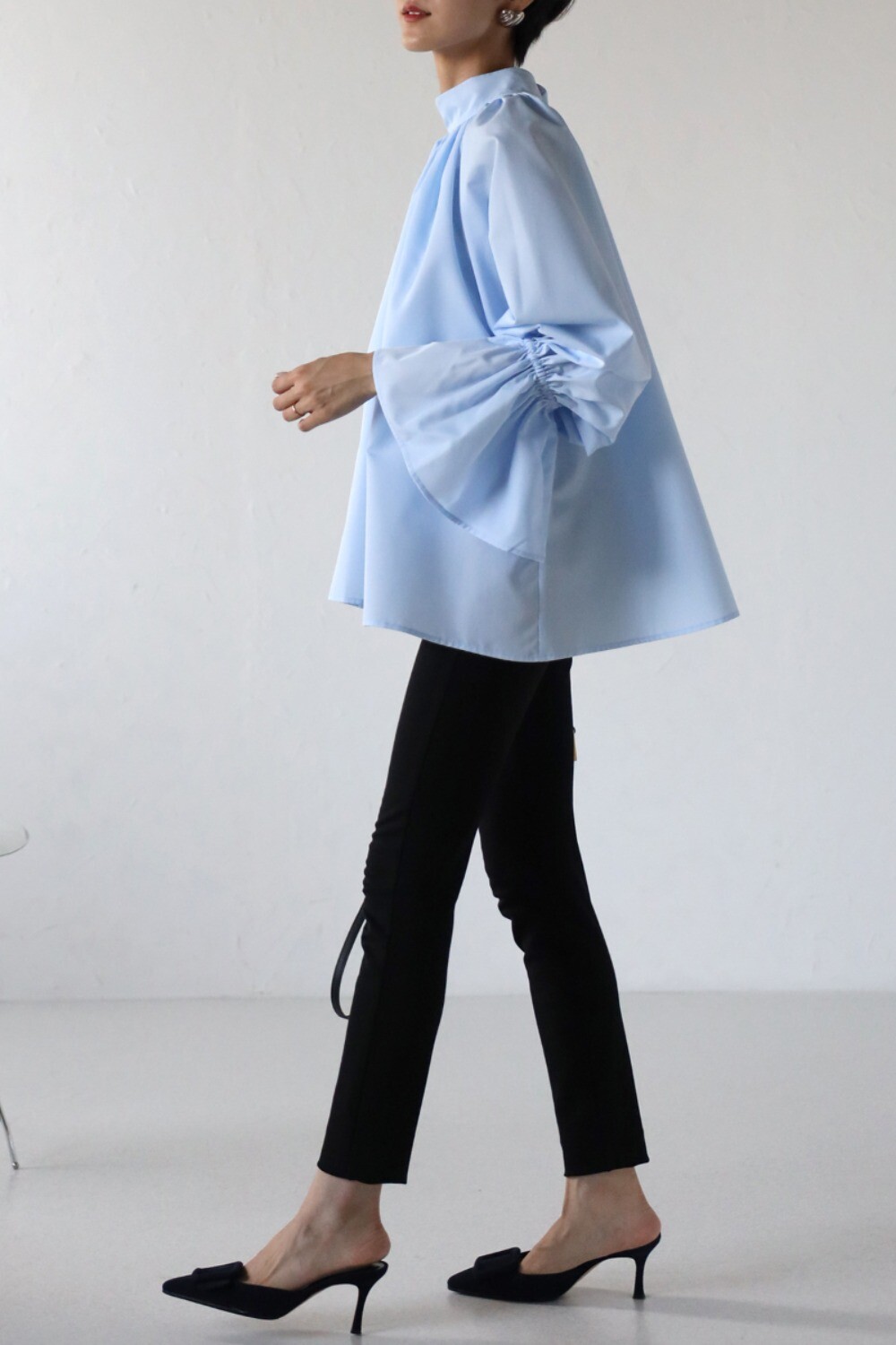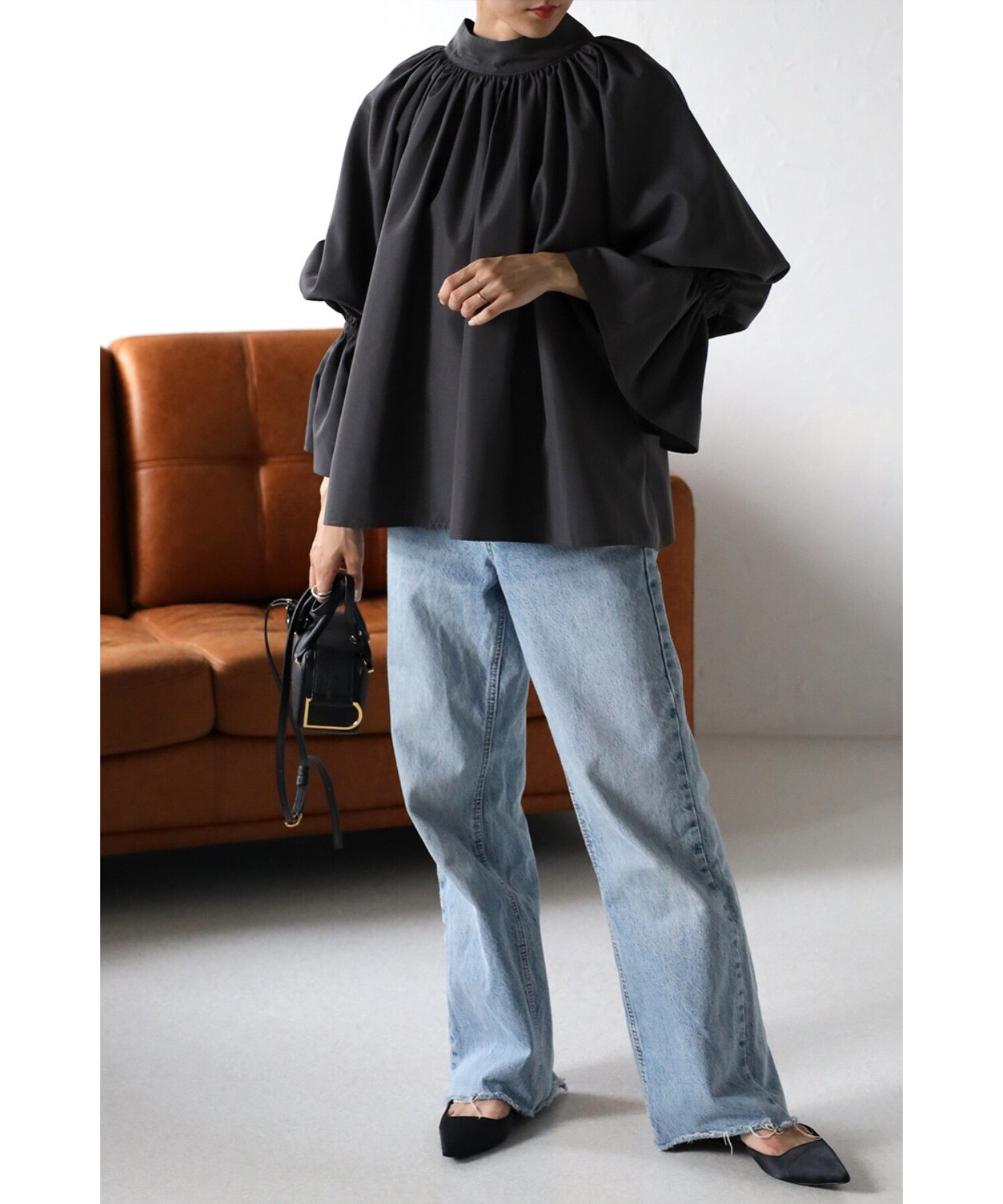 たっぷりのギャザーが大人フェミニン。キャンディースリーブが魅力のブラウス