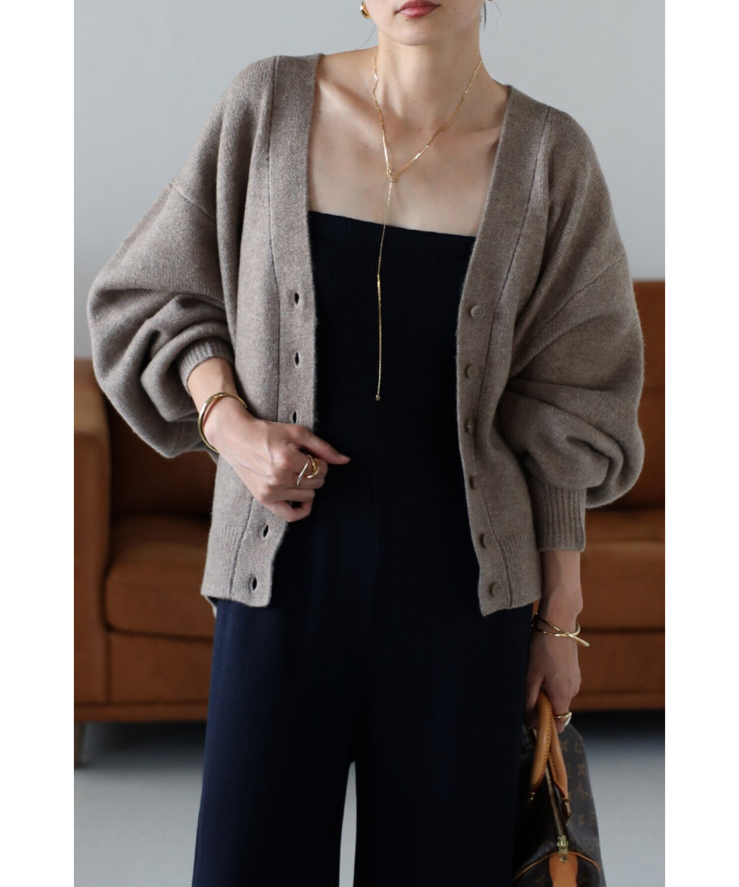 包まれるようなコクーンシルエットが魅力的なニットカーディガン。