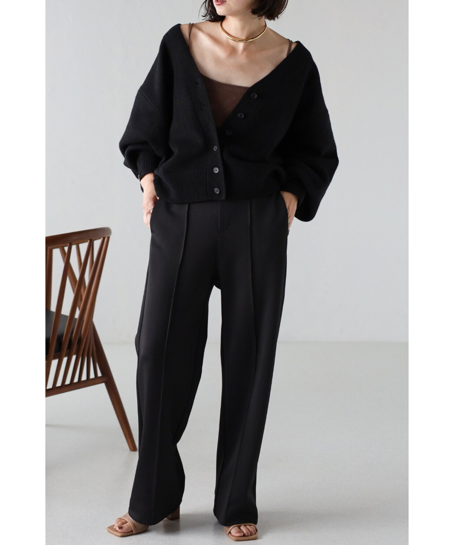 トレンドのVネックにサイドの切替シルエットが、オシャレで細見えも叶う優秀ディテール。