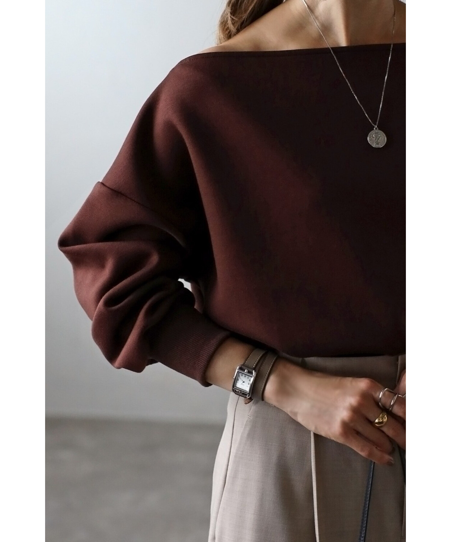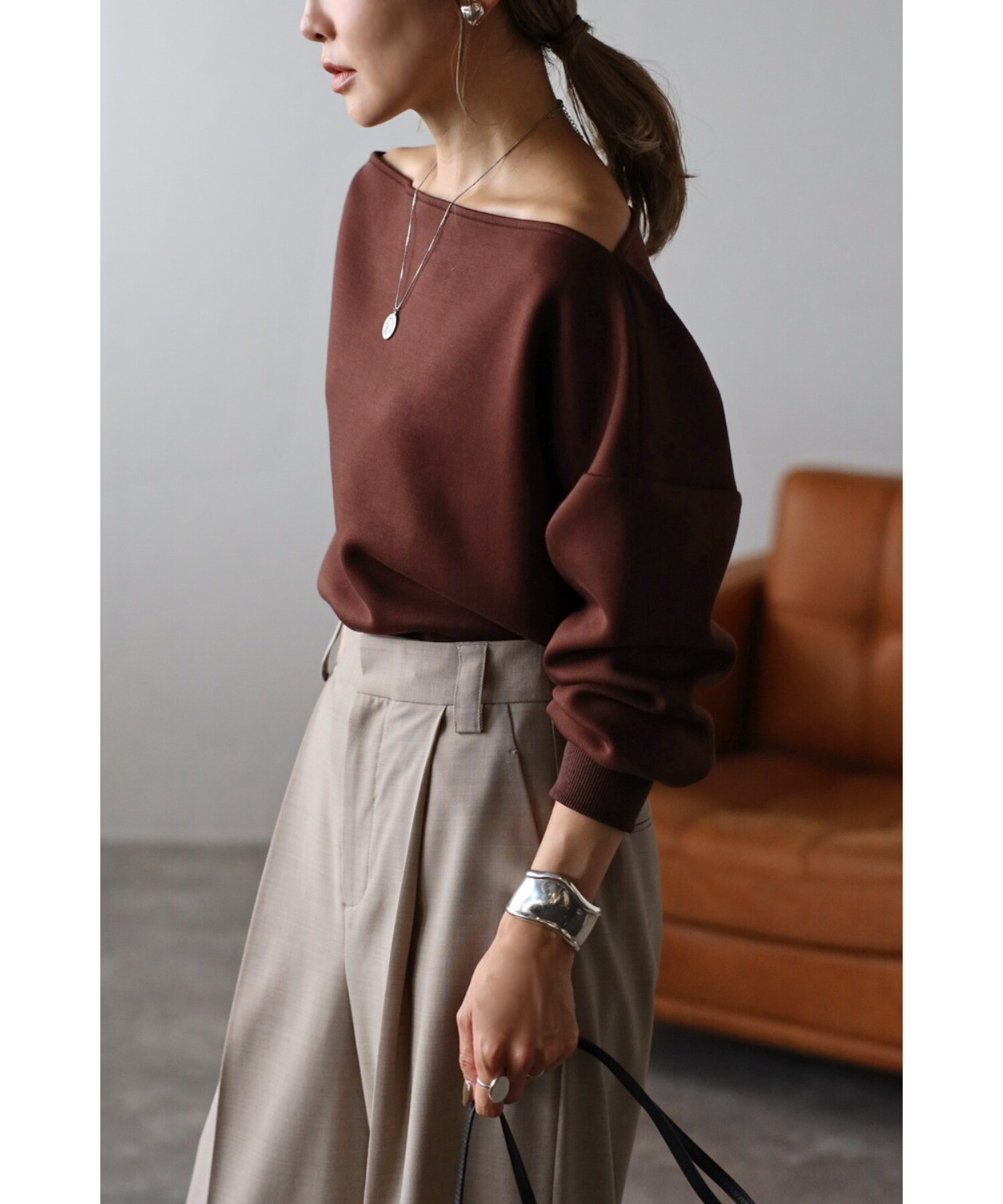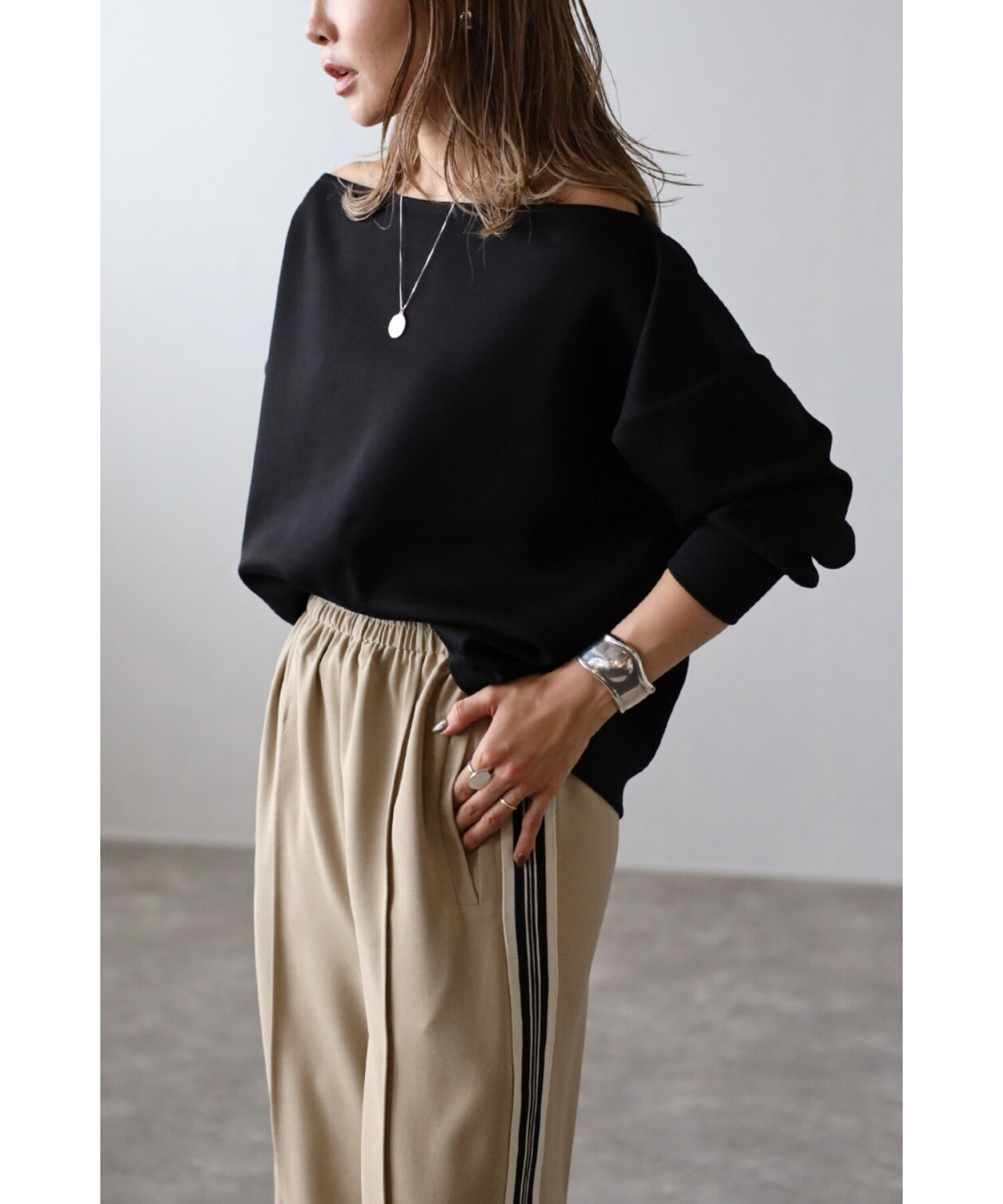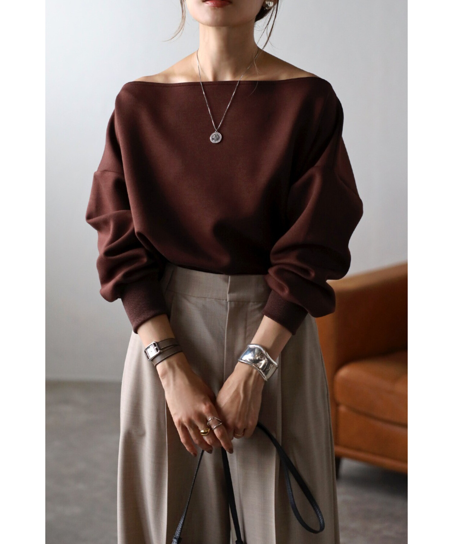 トレンド感のあるオフショルデザインが大人の魅力を引き立てるセンシュアルなプルオーバー。